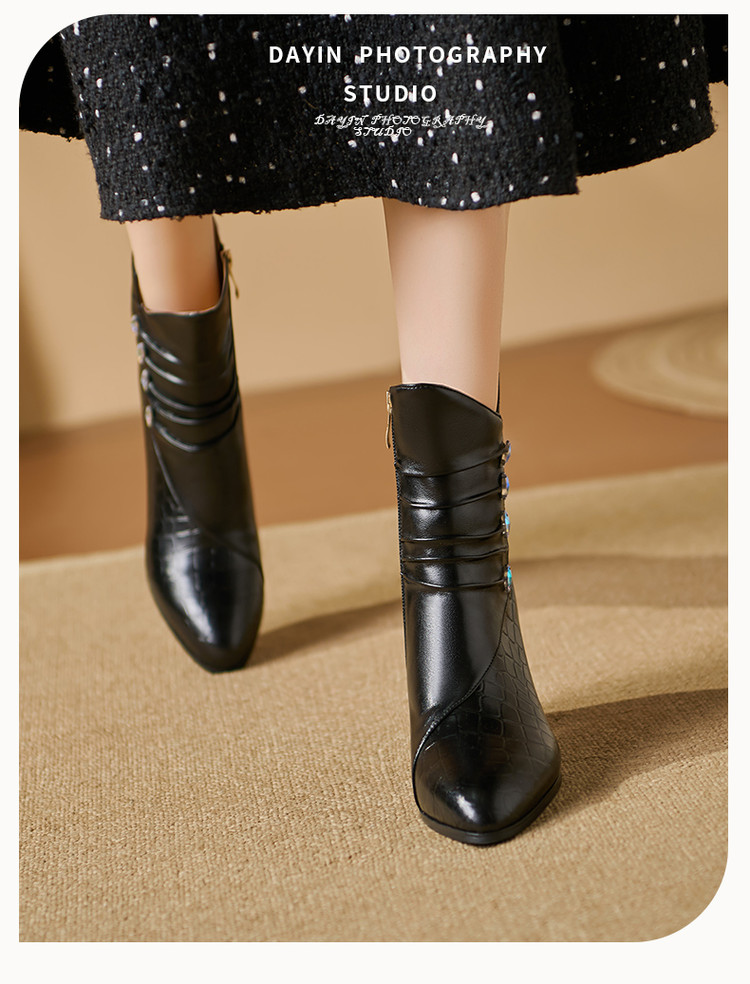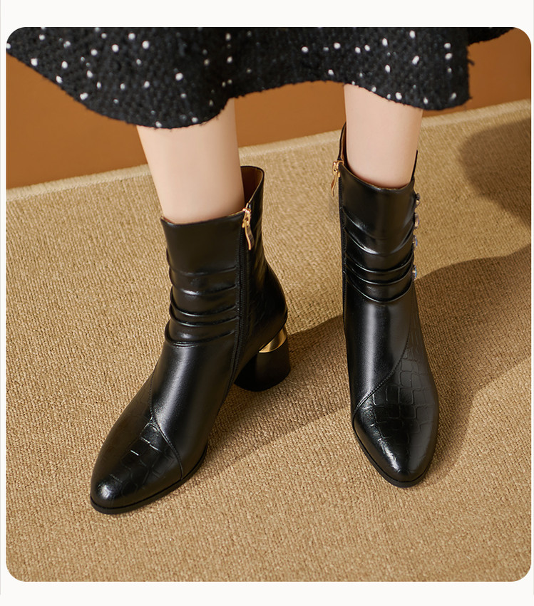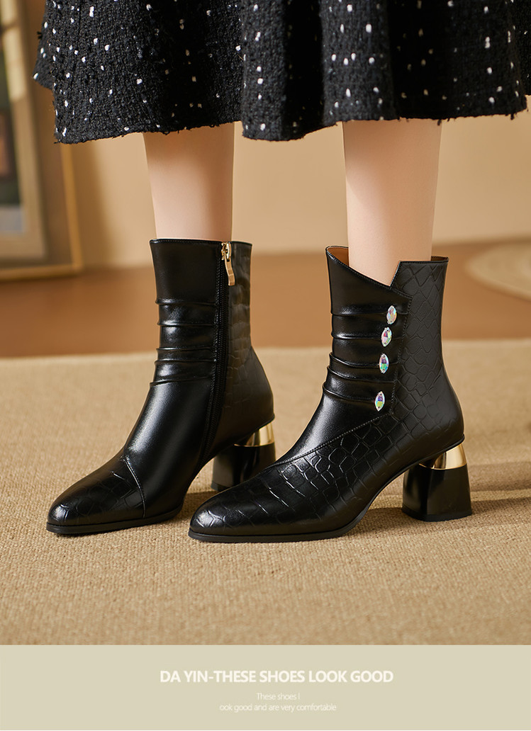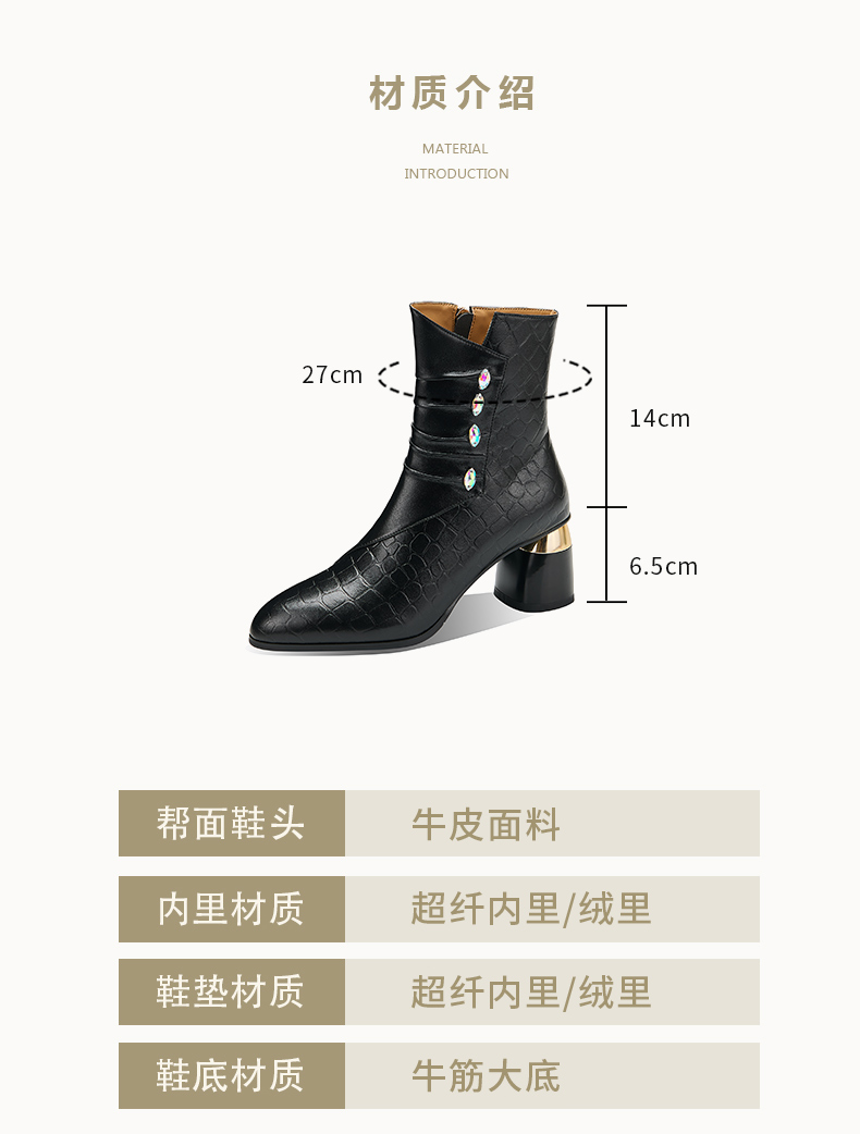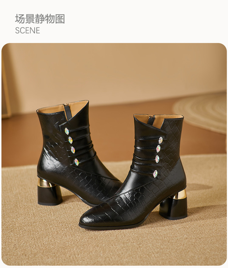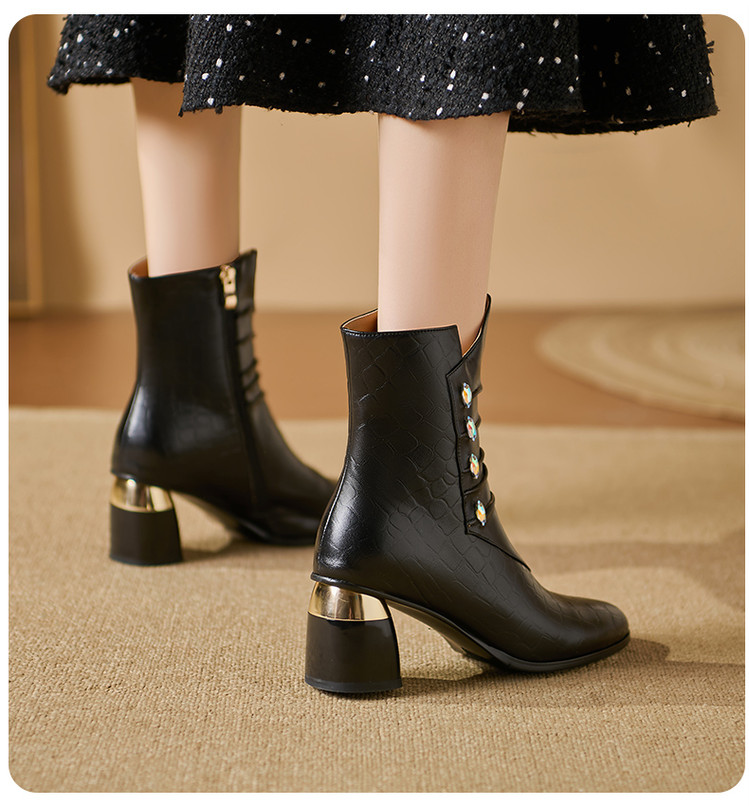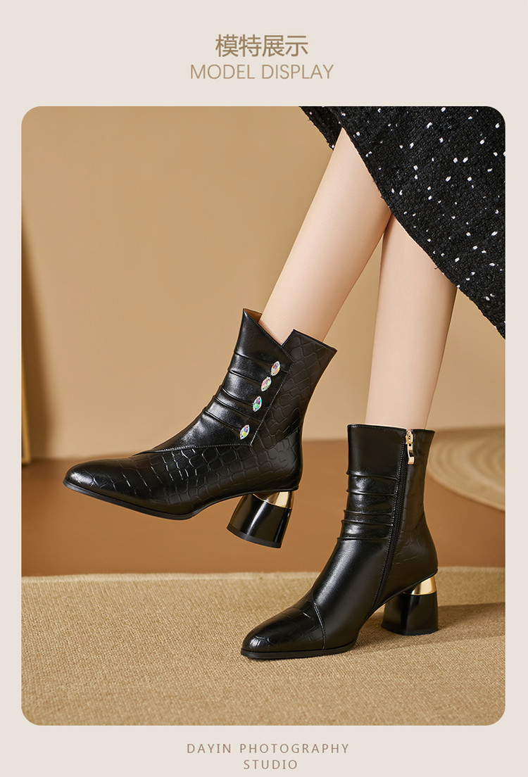 【预售5天】法式粗跟短靴,时尚方头单靴加绒显瘦百搭高跟马丁靴SY&613