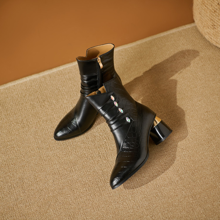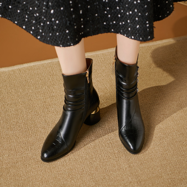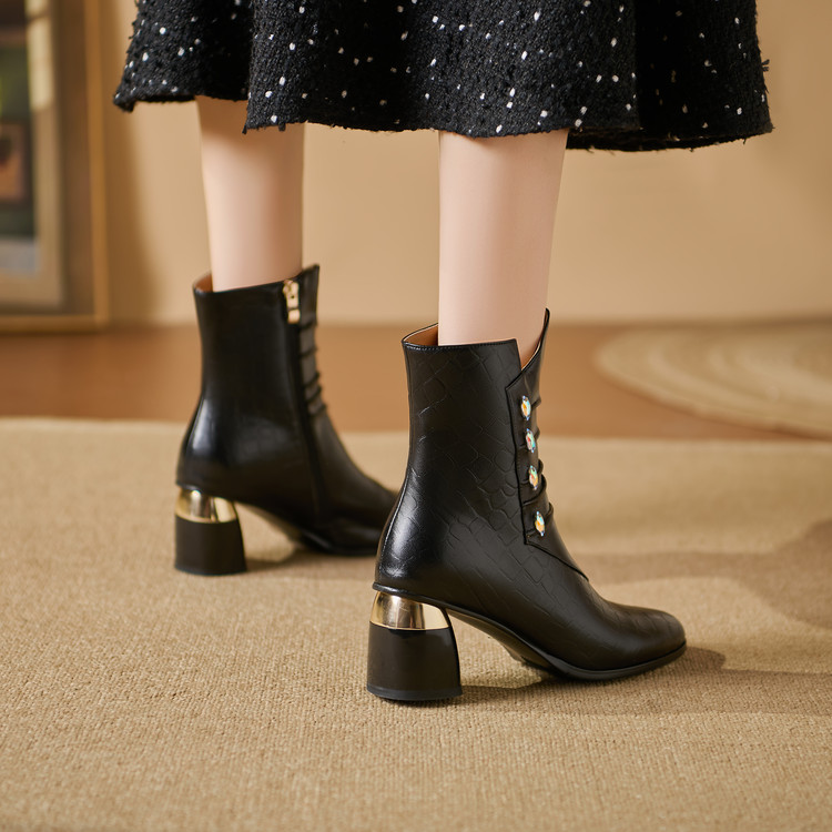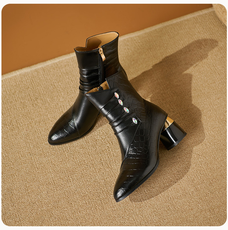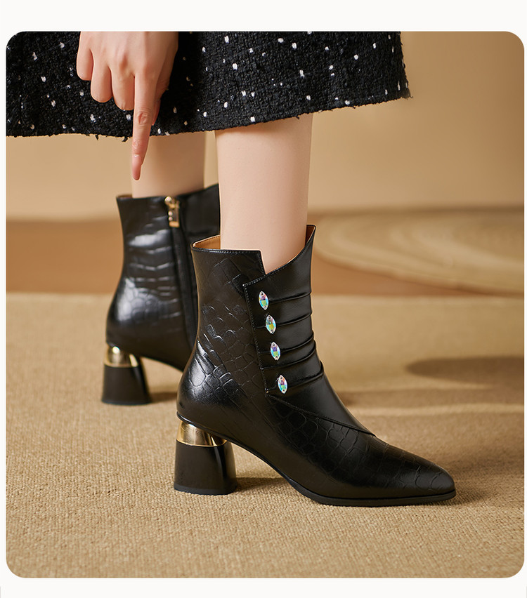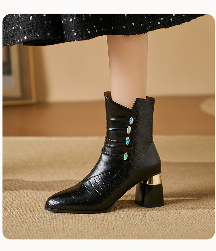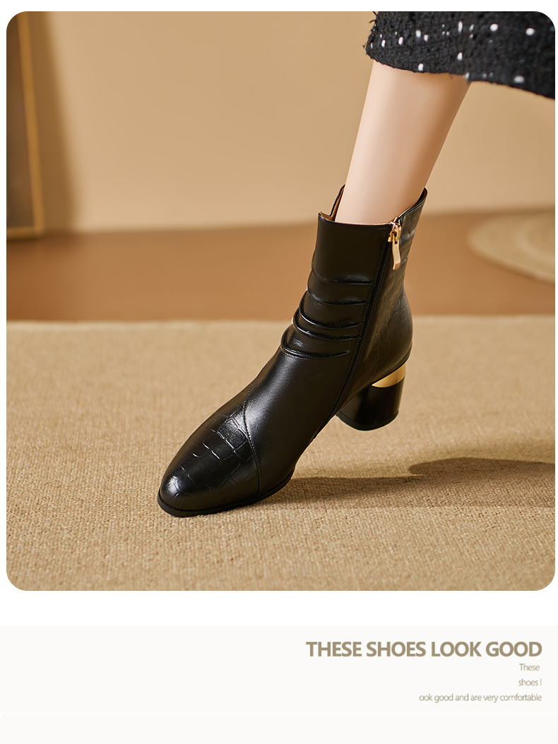 【预售5天】法式粗跟短靴,时尚方头单靴加绒显瘦百搭高跟马丁靴SY&613