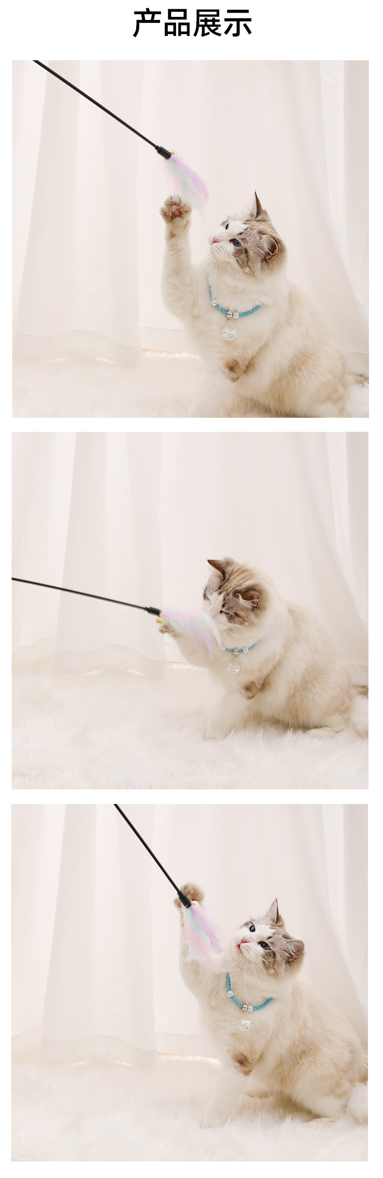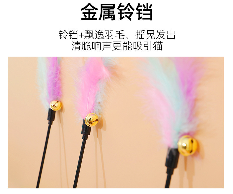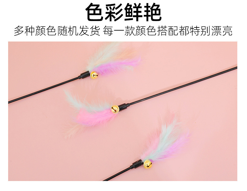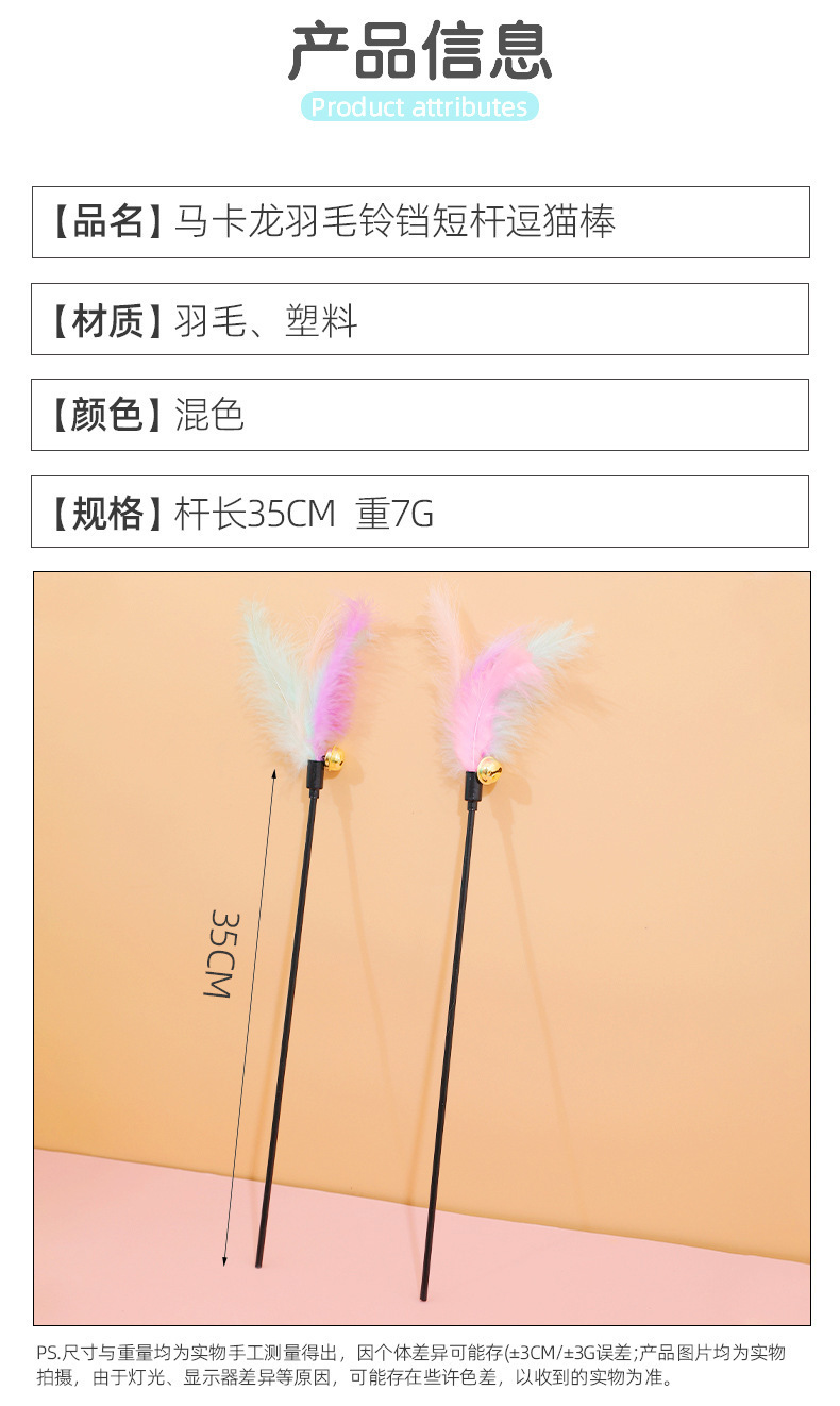 马卡龙羽毛短杆逗猫棒 带铃铛 基础款逗猫玩具批发