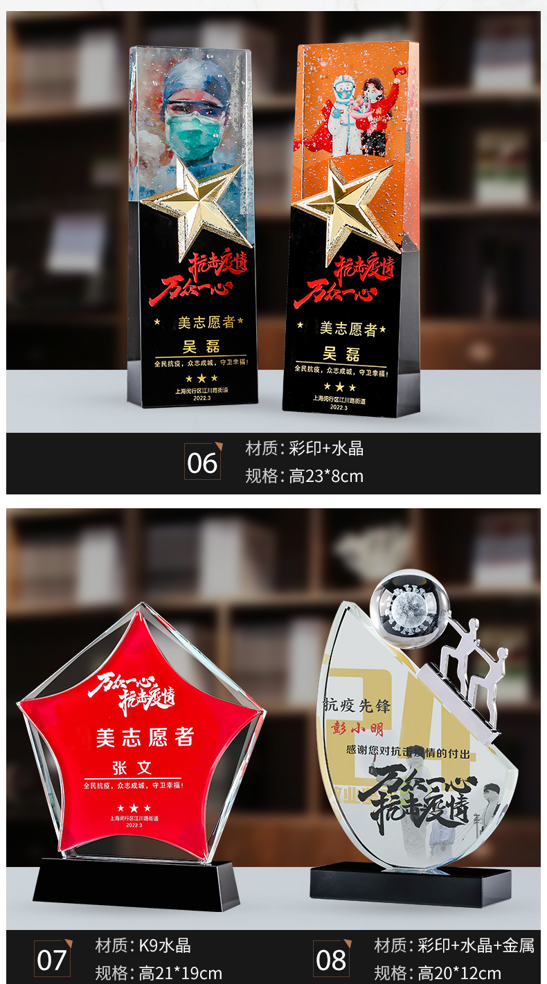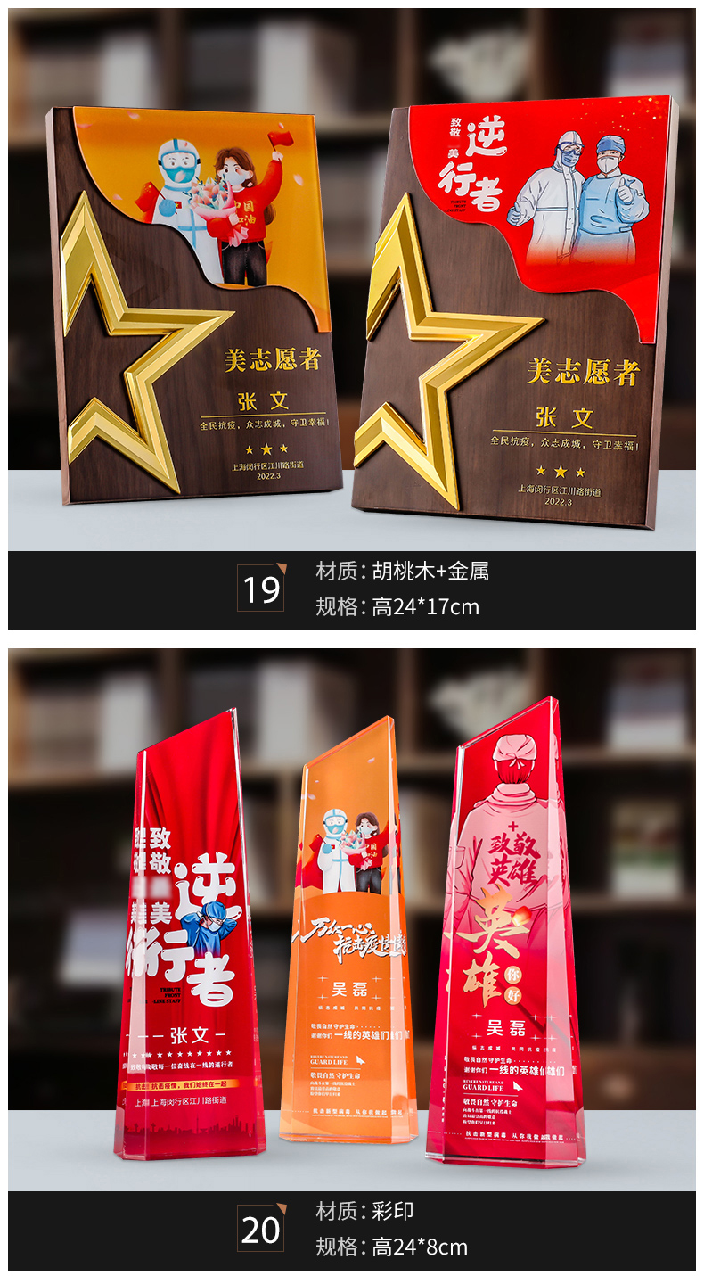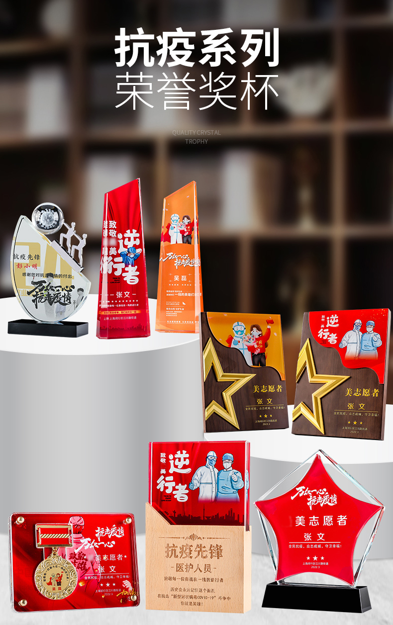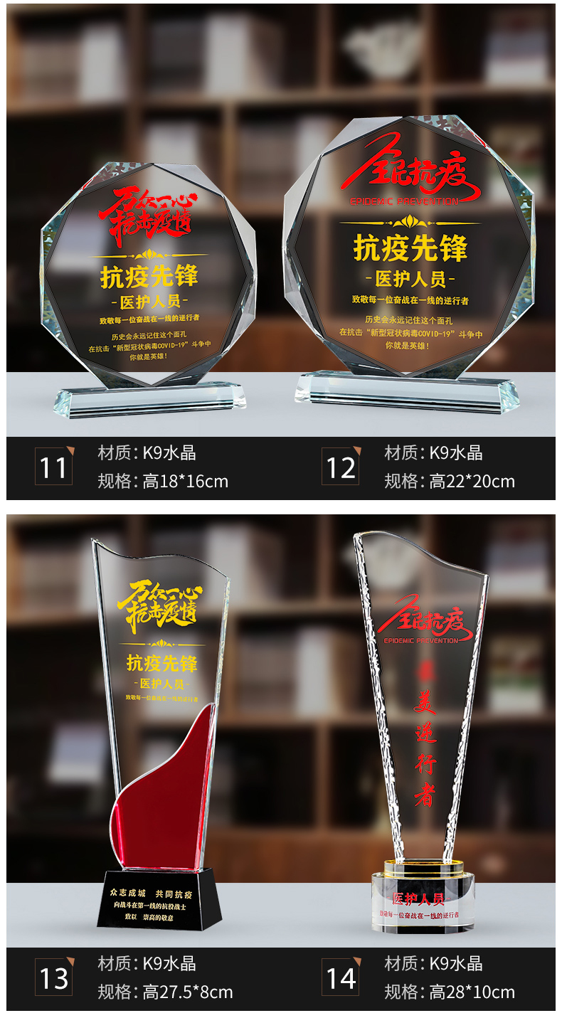 抗疫纪念品奖牌奖章表彰荣誉水晶奖杯逆行者定做疫情志愿者抗爱心