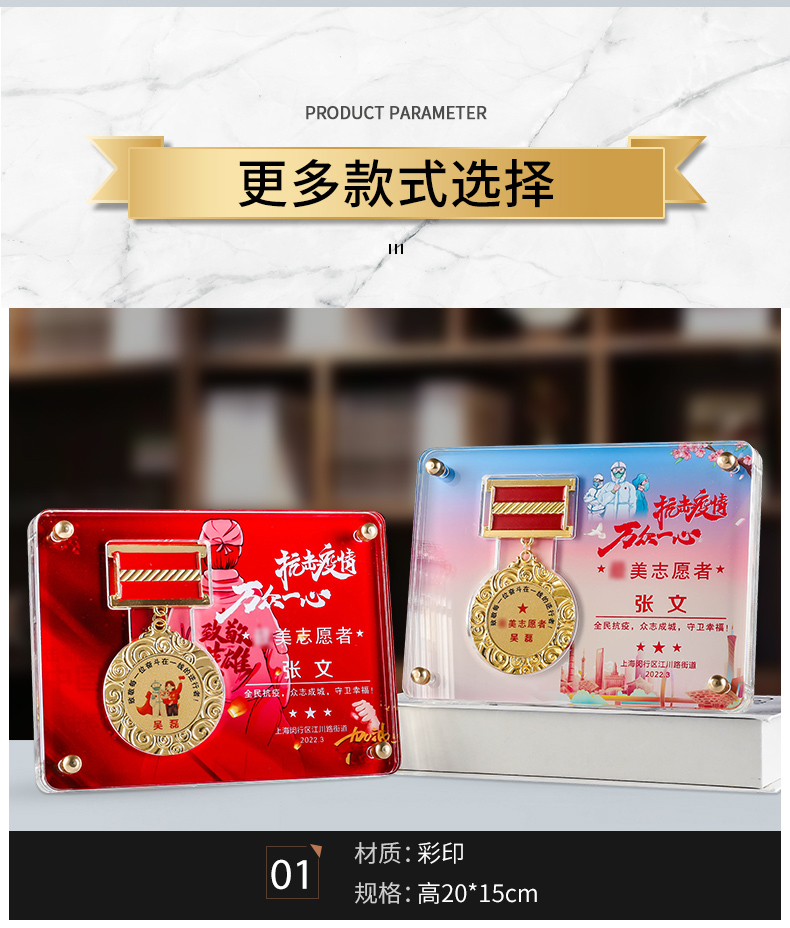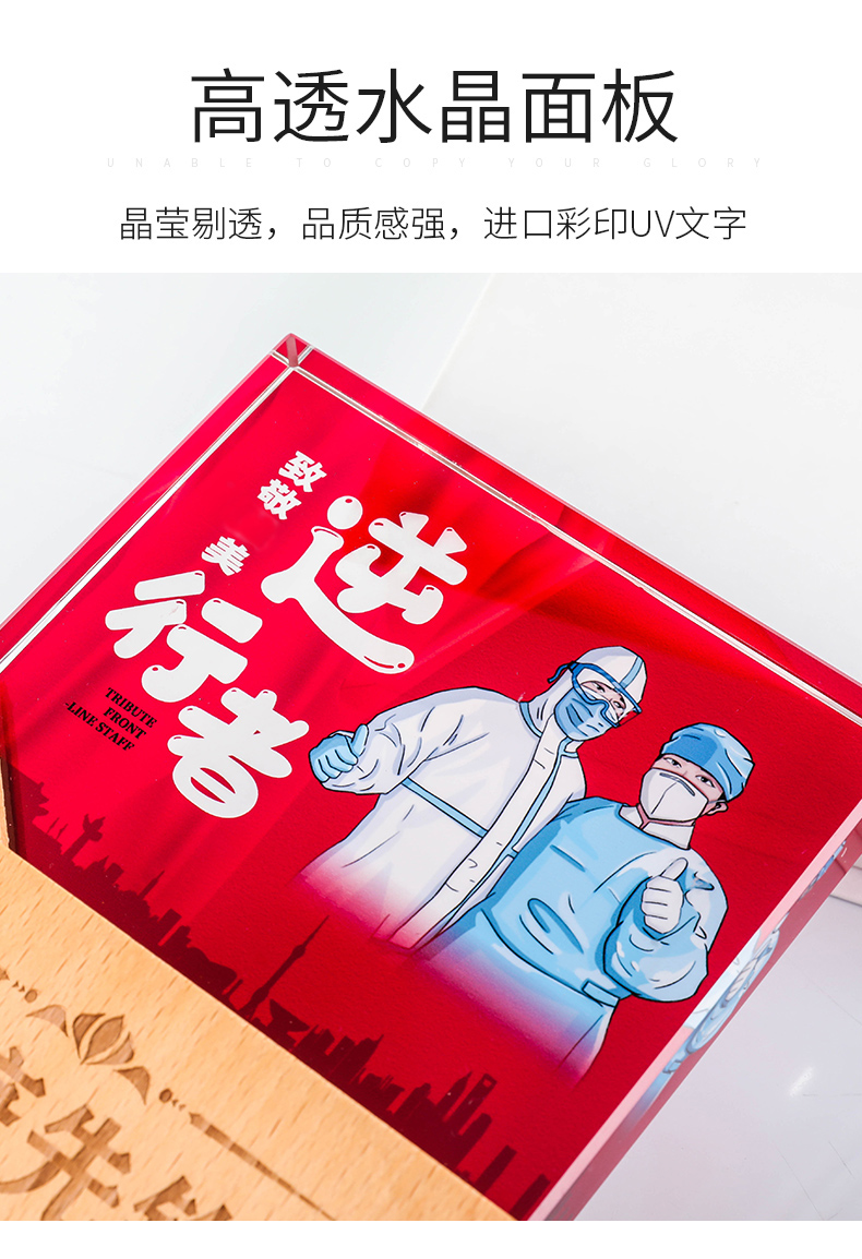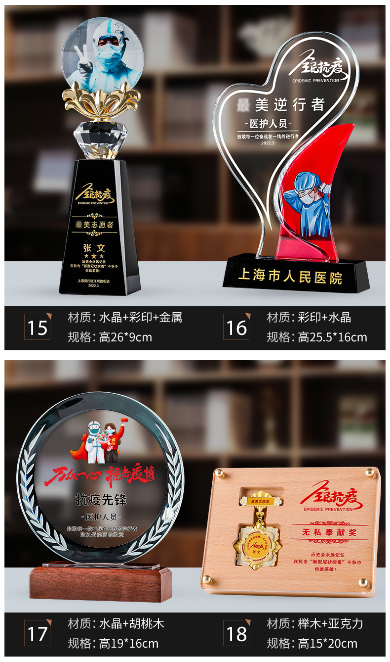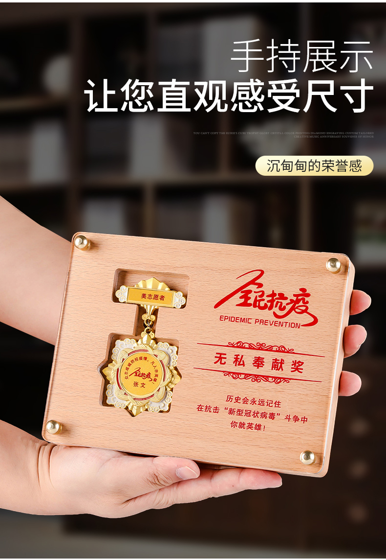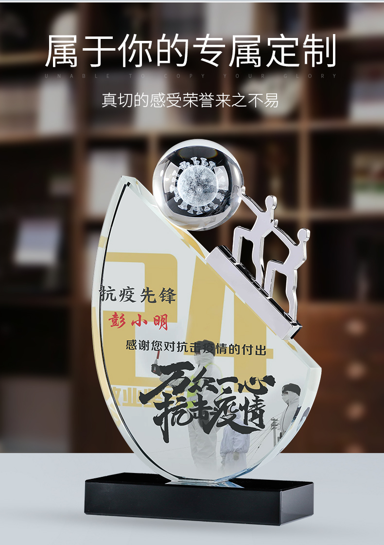 抗疫纪念品奖牌奖章表彰荣誉水晶奖杯逆行者定做疫情志愿者抗爱心