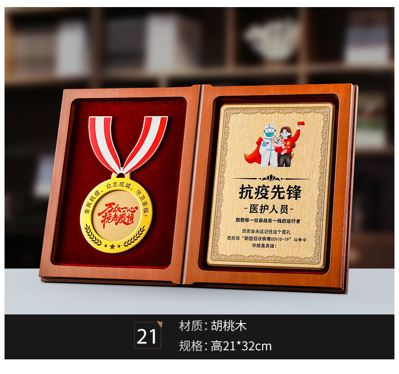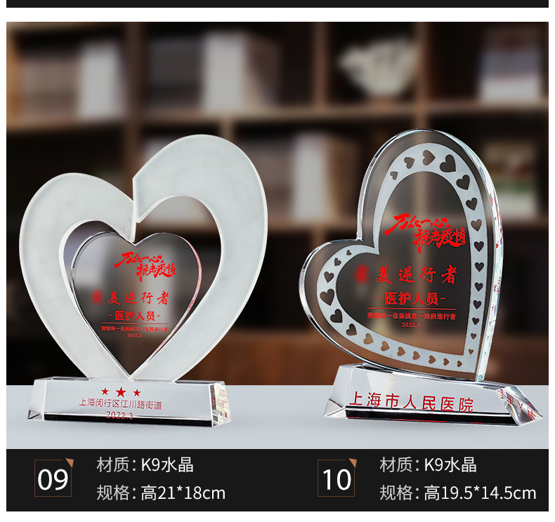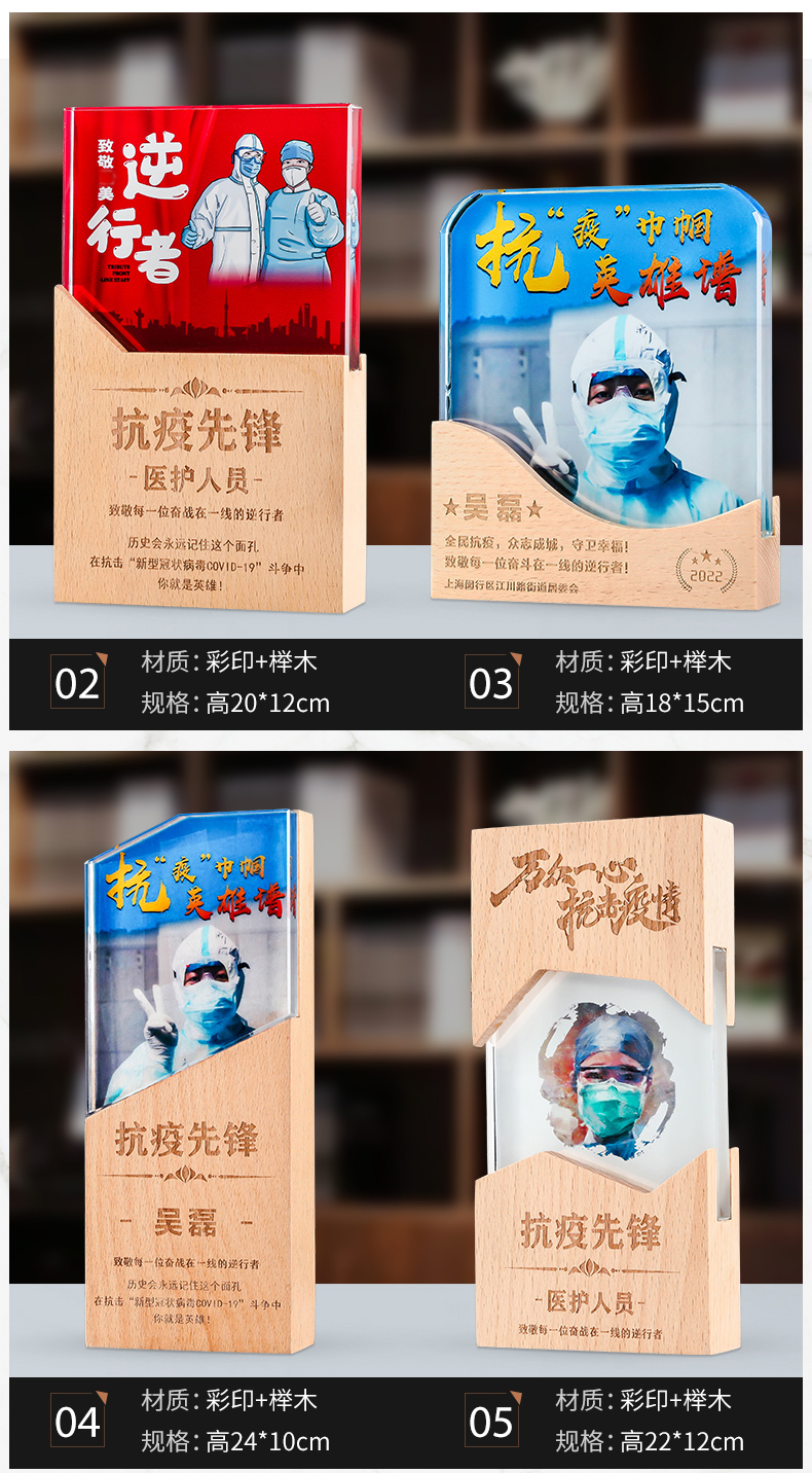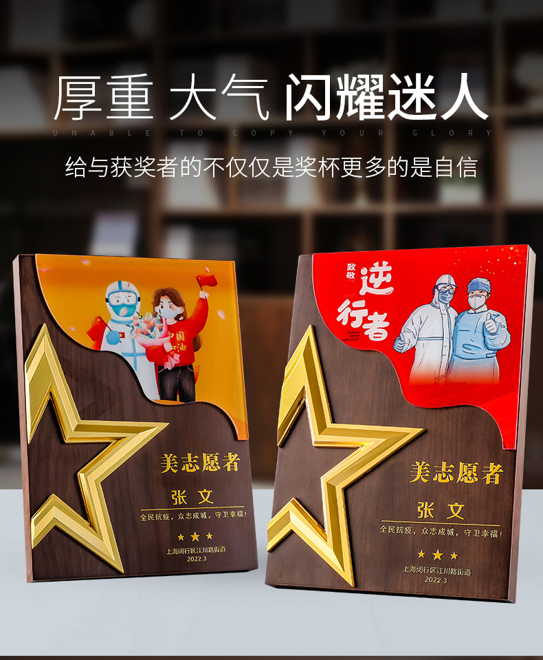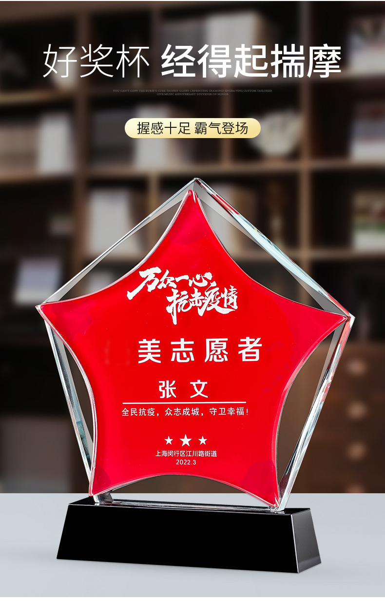 抗疫纪念品奖牌奖章表彰荣誉水晶奖杯逆行者定做疫情志愿者抗爱心