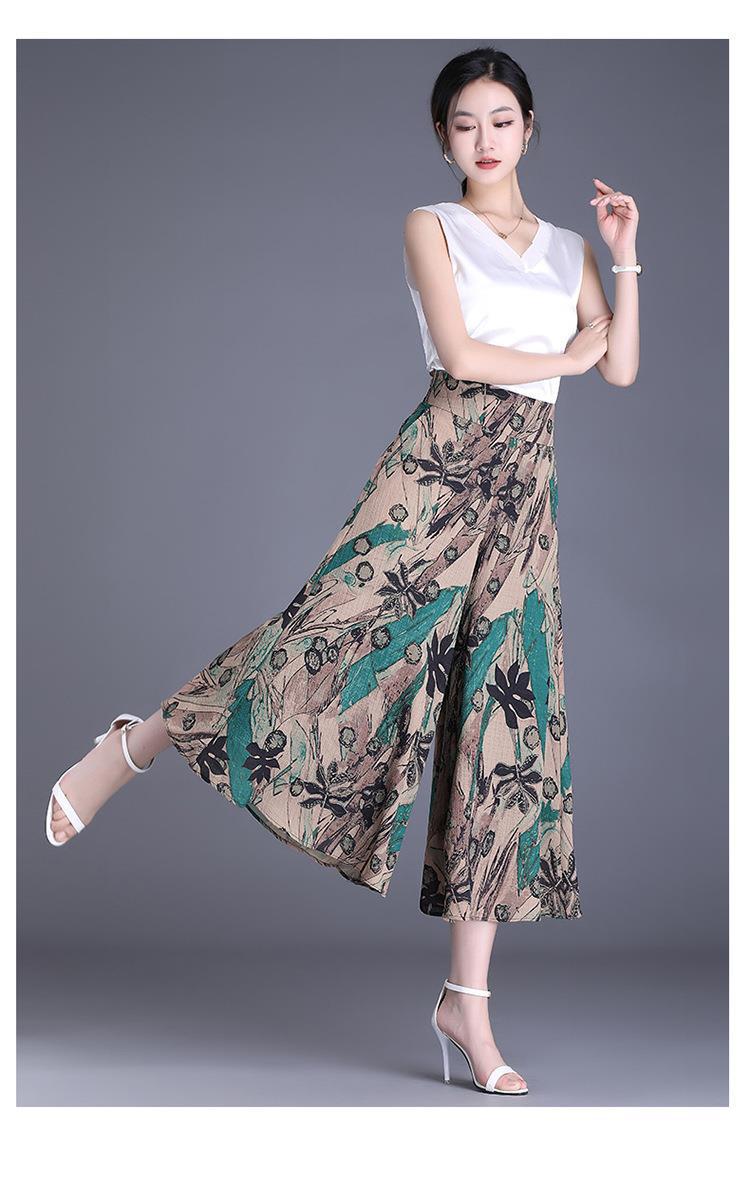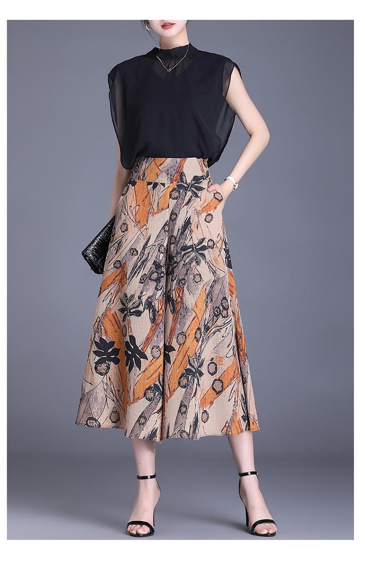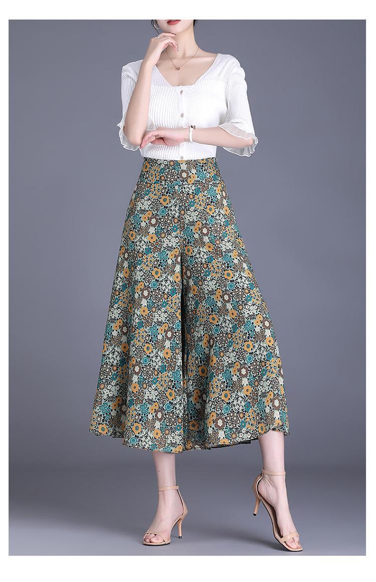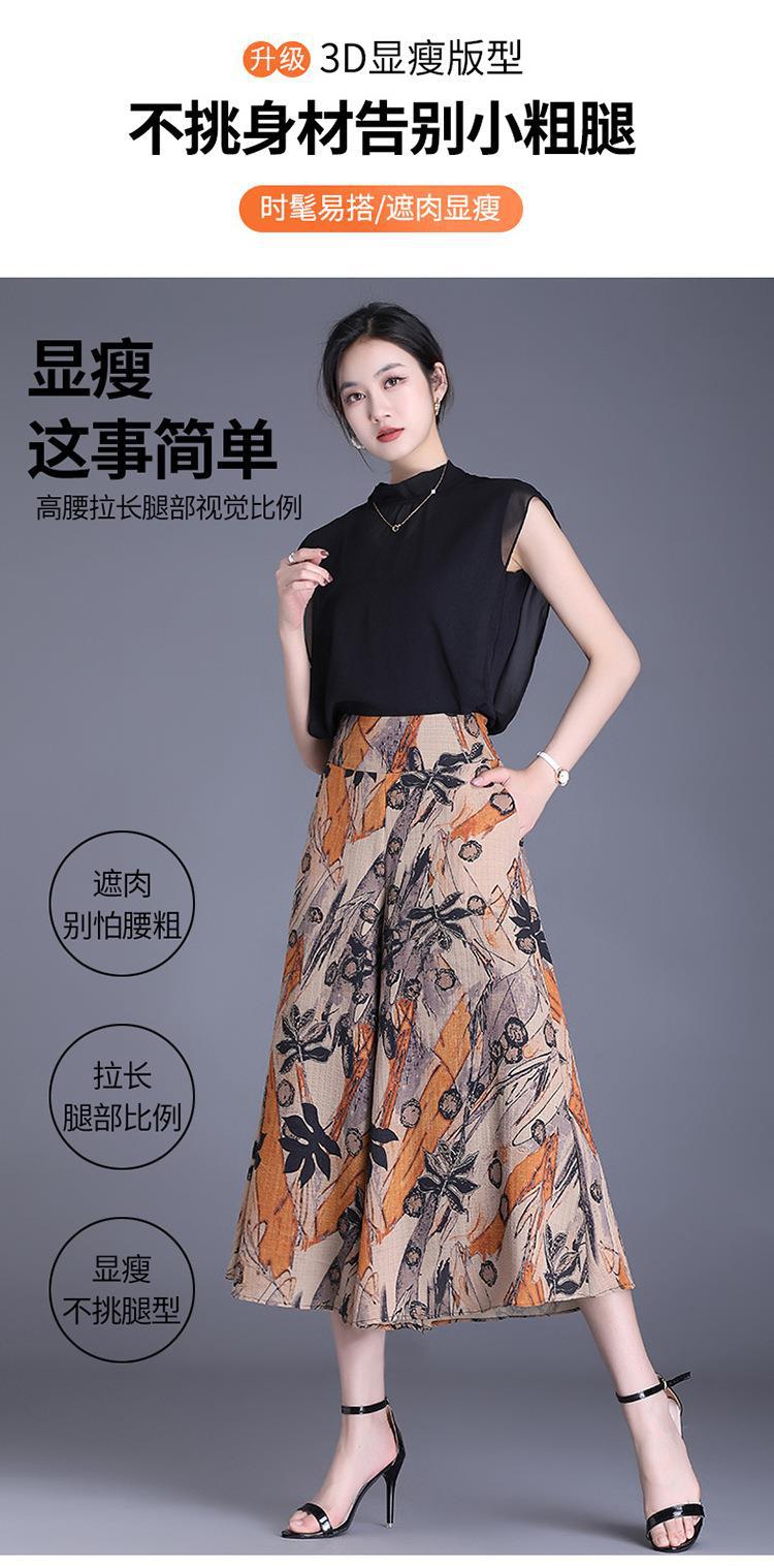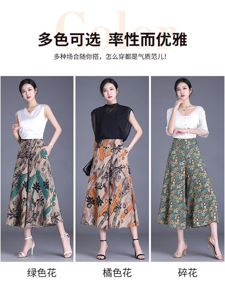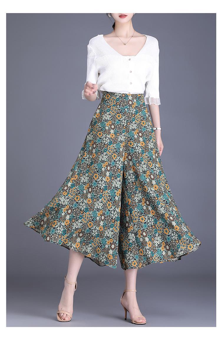 夏季薄款,女士阔腿裤宽松垂感透气高腰显瘦雪纺九分裤裙花裤子MYX-2216