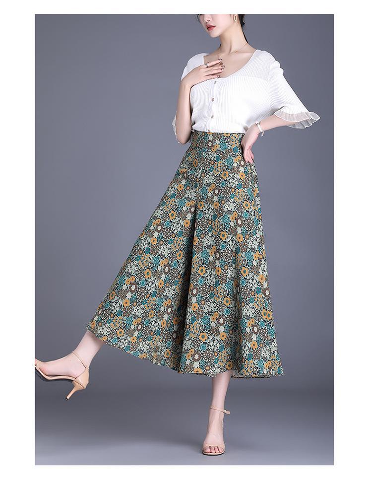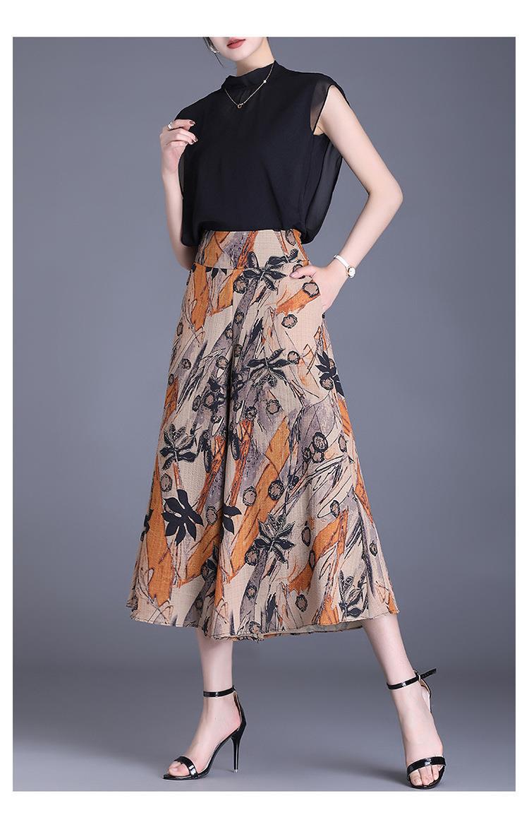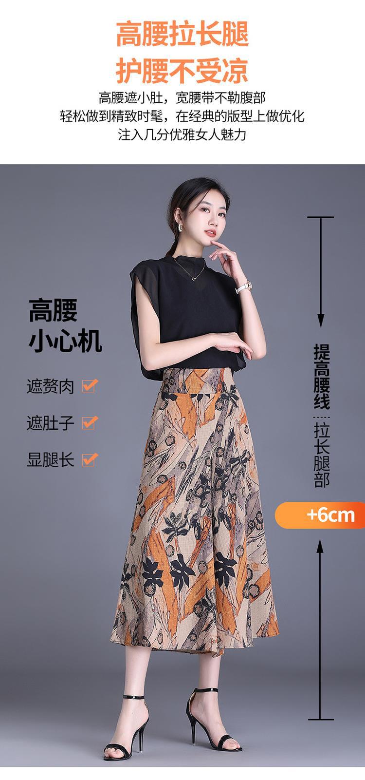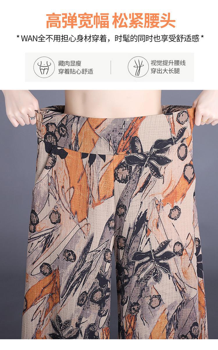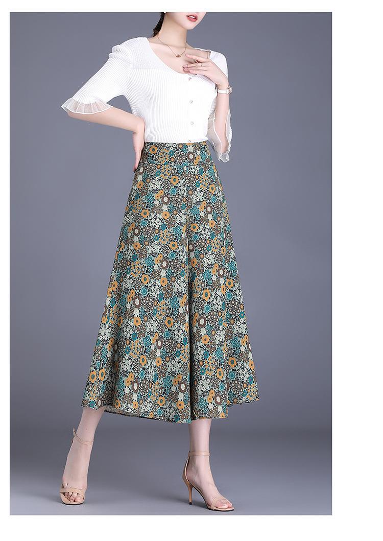 夏季薄款,女士阔腿裤宽松垂感透气高腰显瘦雪纺九分裤裙花裤子MYX-2216