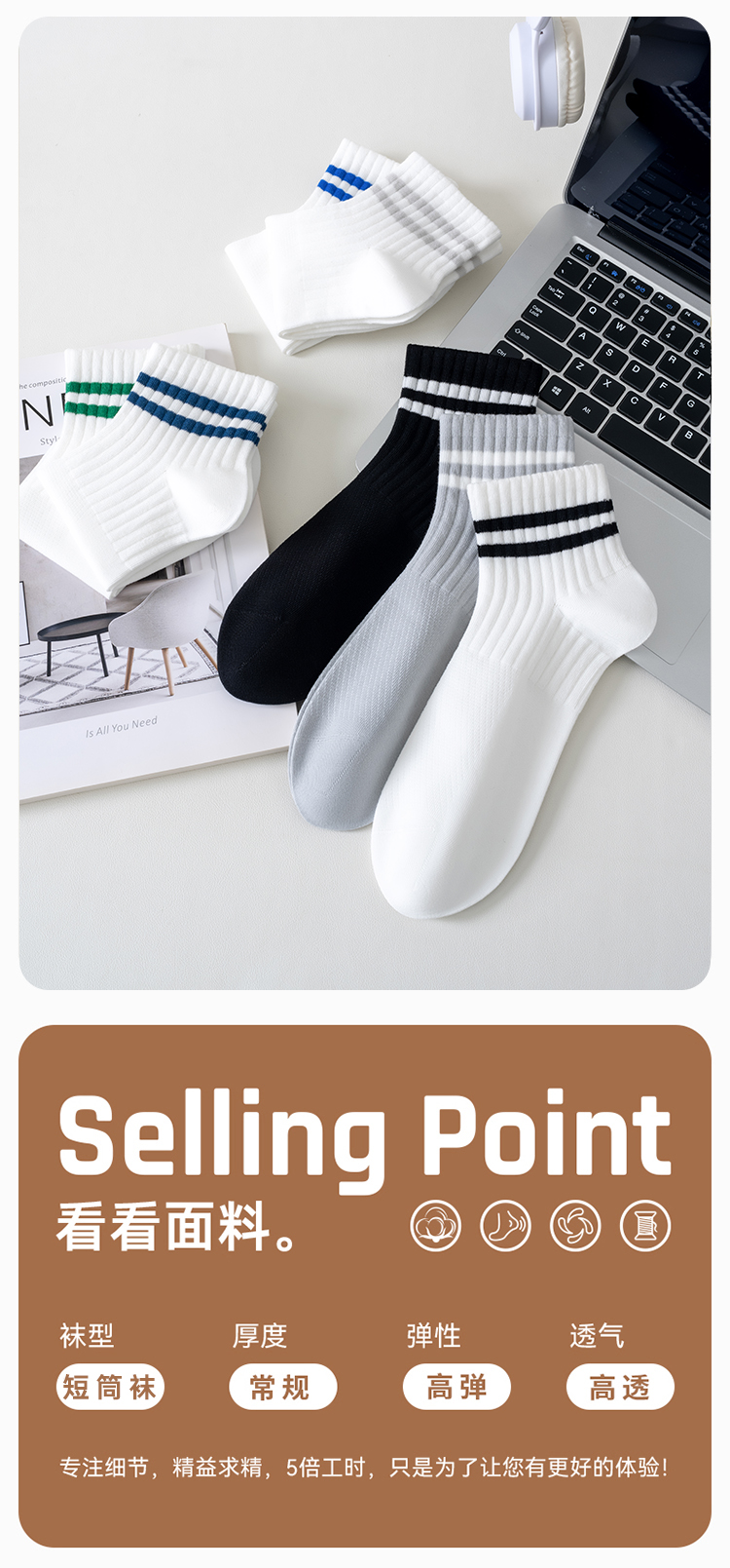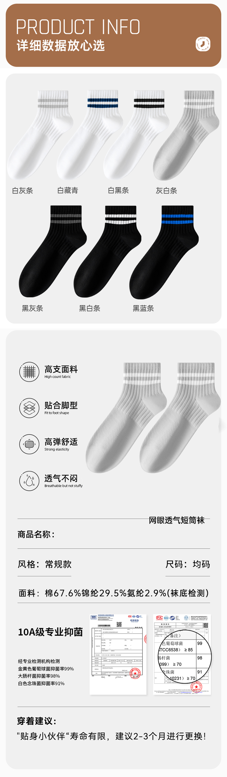 男士网眼透气短筒袜