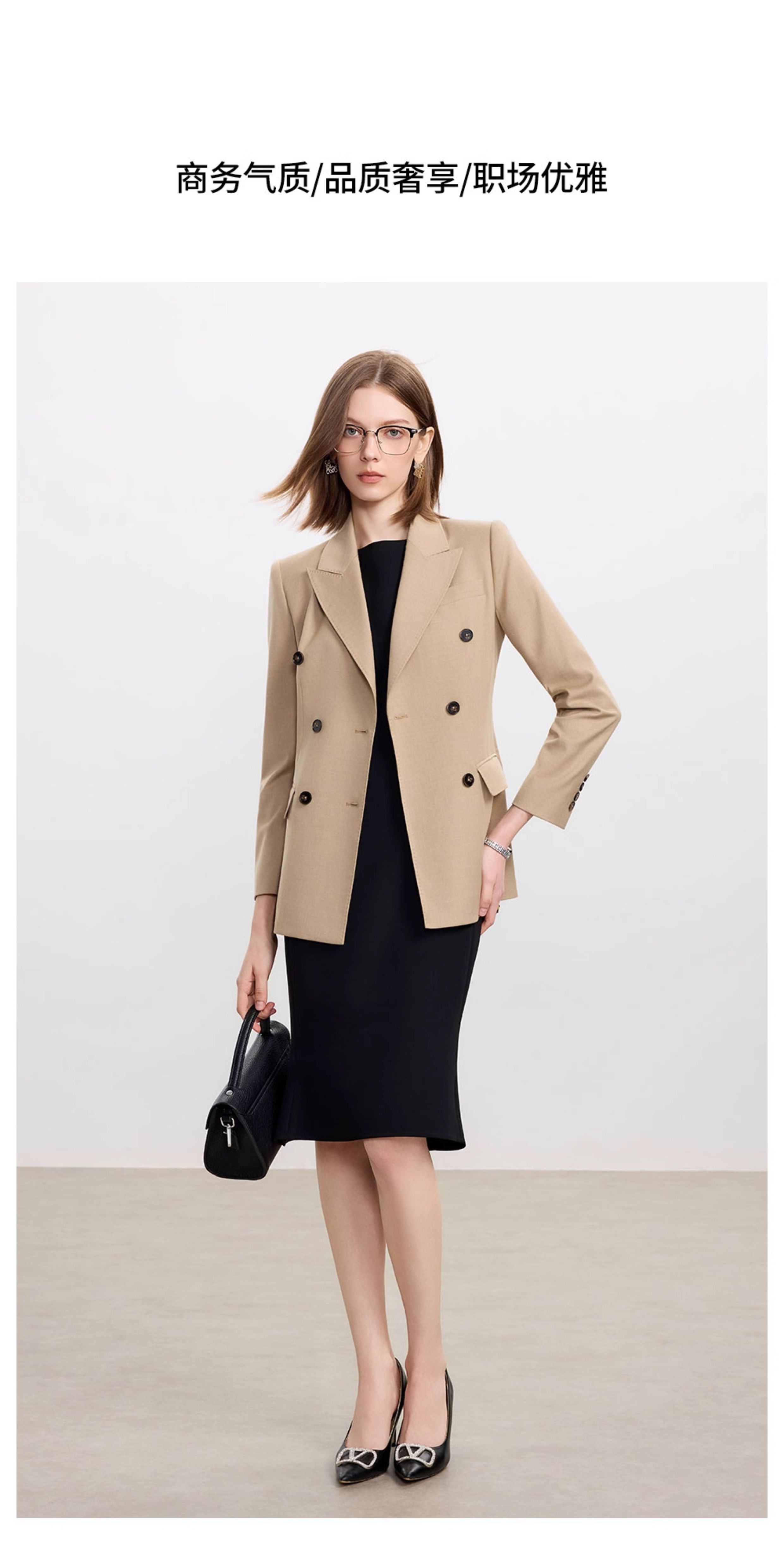 IWY/高级感卡其色天丝羊毛西服套装女气质两件套职业西装连衣裙C2352+Q1422
