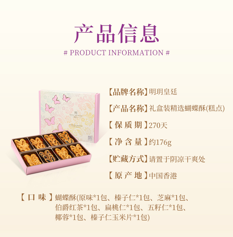 明玥皇廷礼盒装精选蝴蝶酥176g/051088 酥香松脆甜而不腻