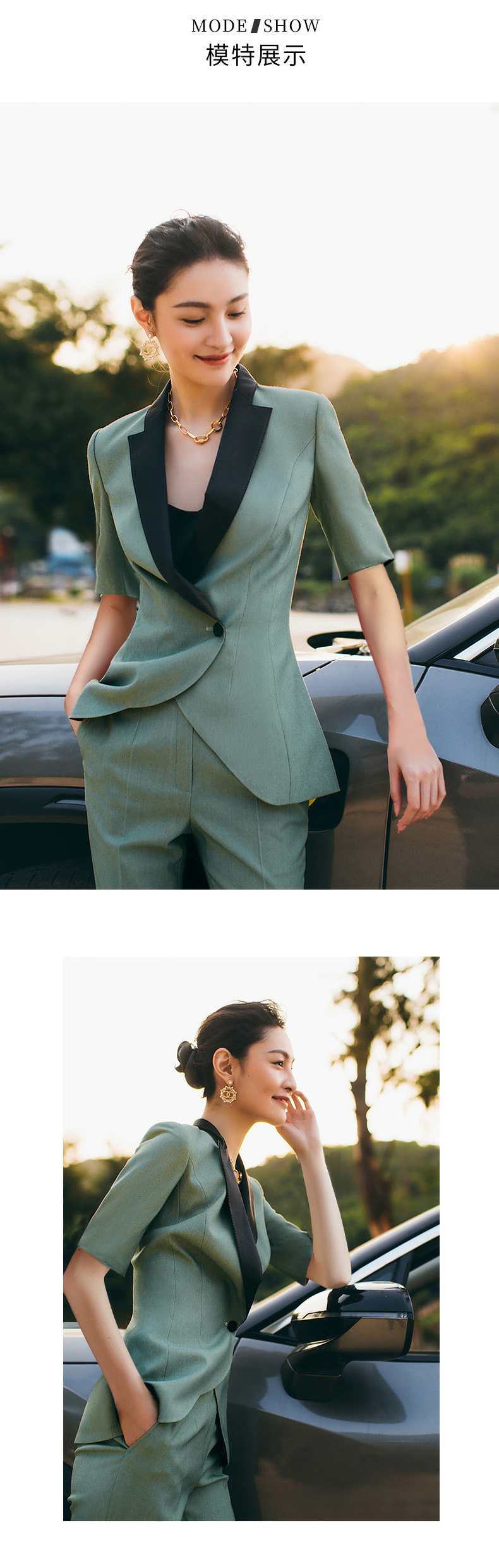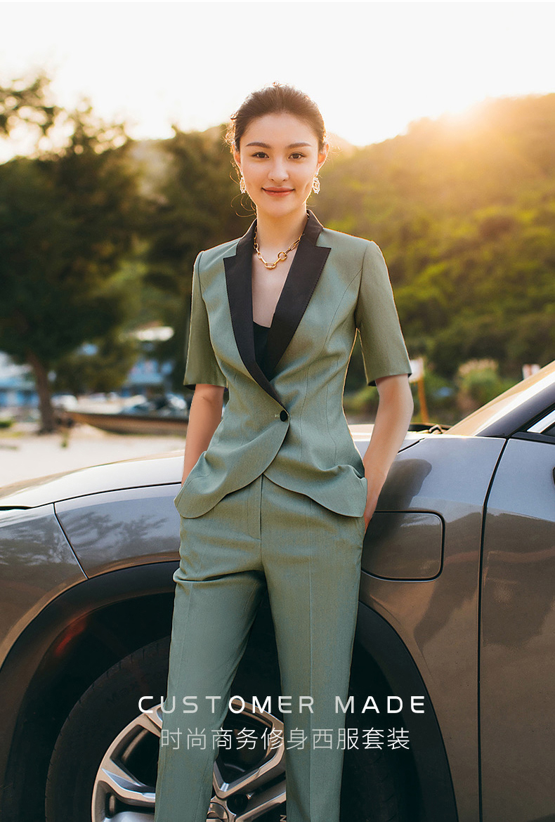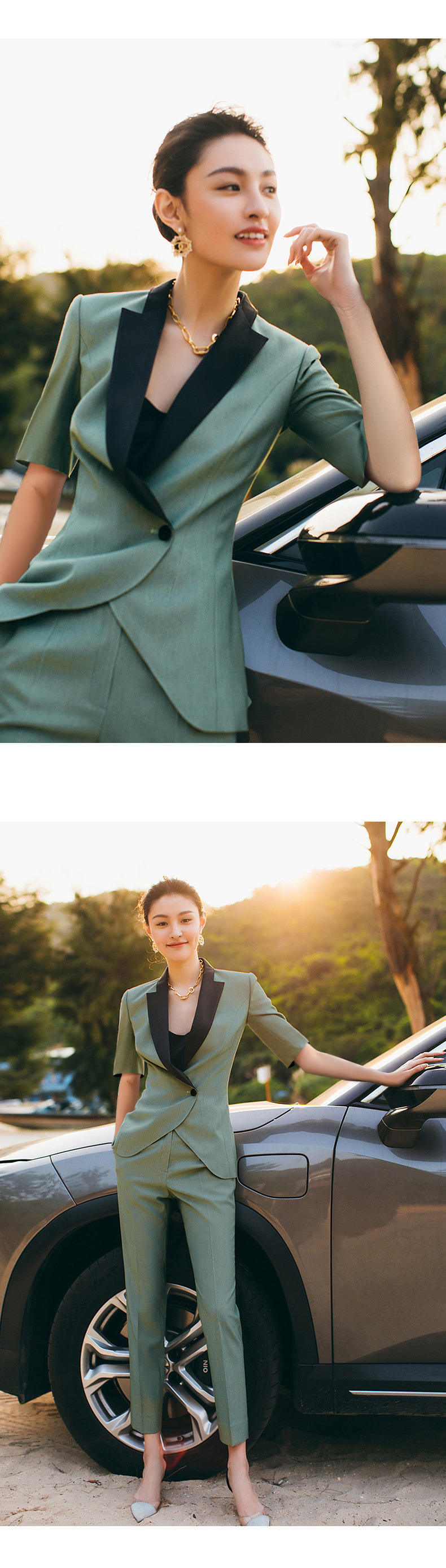 IWY/墨绿色职业西装套装时尚四分袖薄款气质上班休闲高端名媛CP1305
