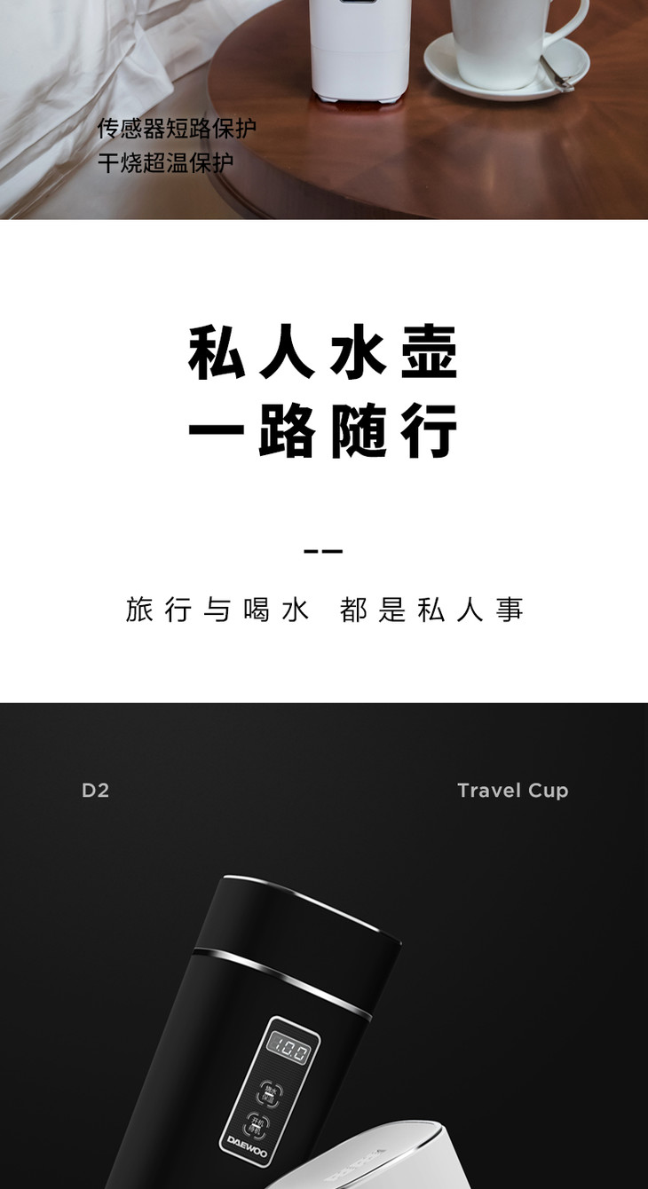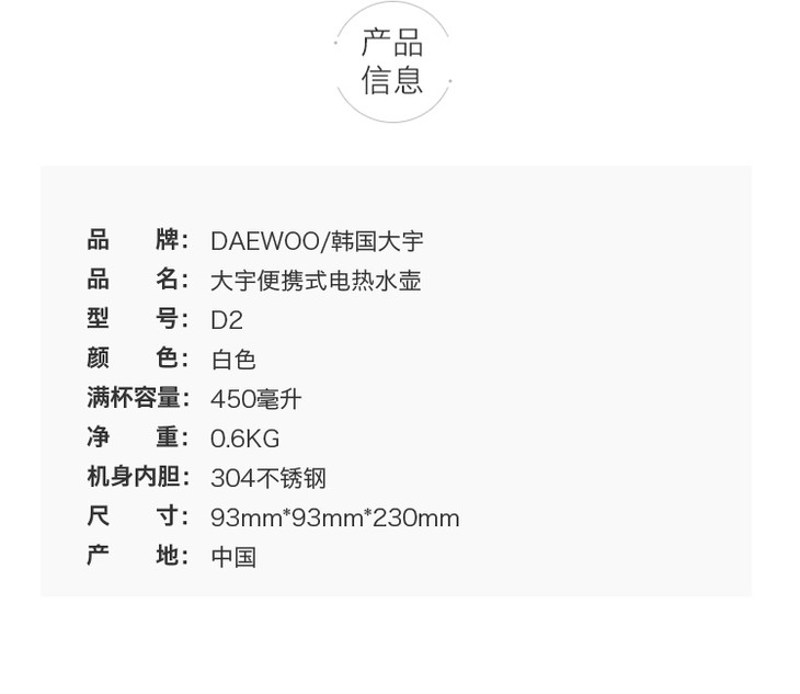 DAEWOO韩国大宇便携式旅行电热水壶烧水壶D2