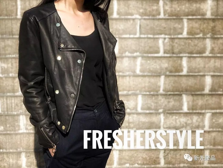 优雅圆领气孔机车夹克(无涂鸦)