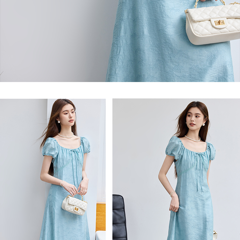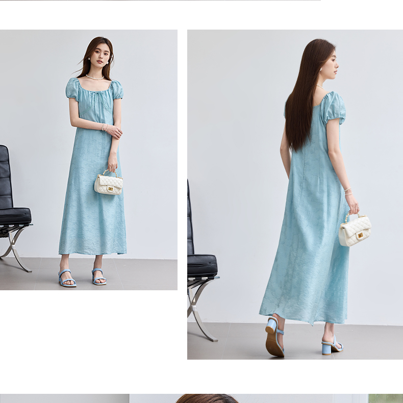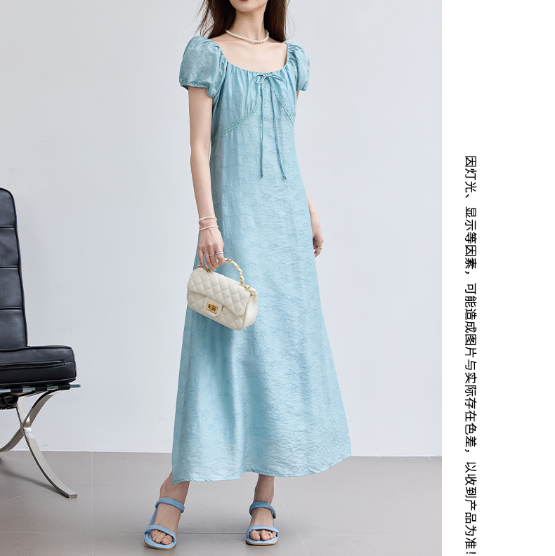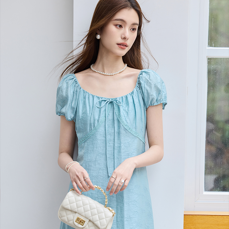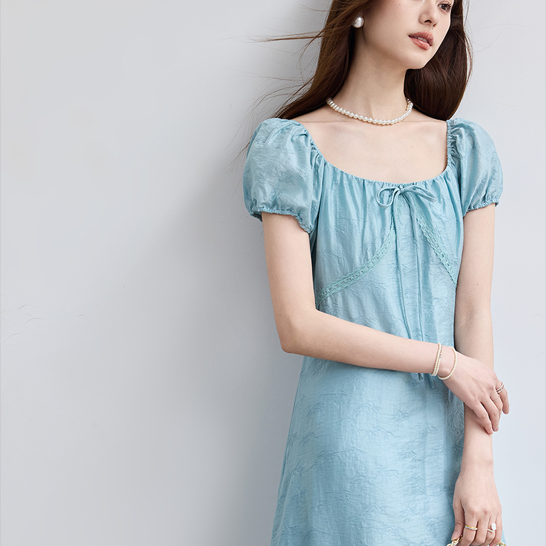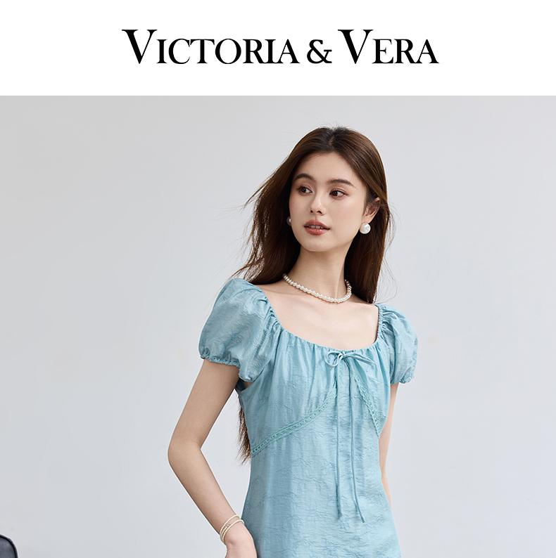 VICTORIA&VERA夏季“云绡胧袖”复古文艺高级感简约大方领肌理感泡泡袖连衣裙