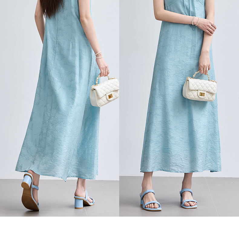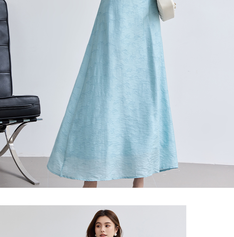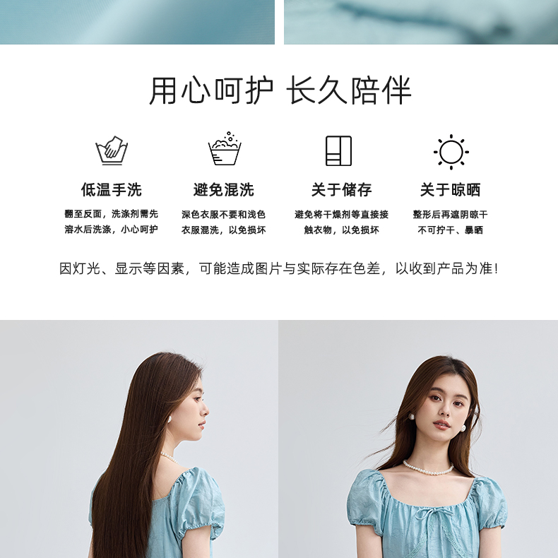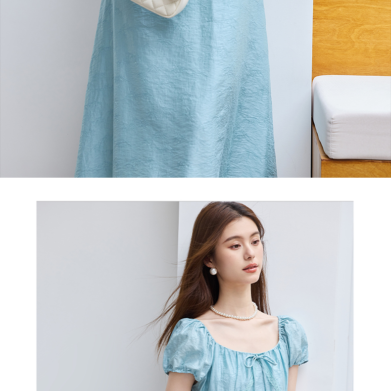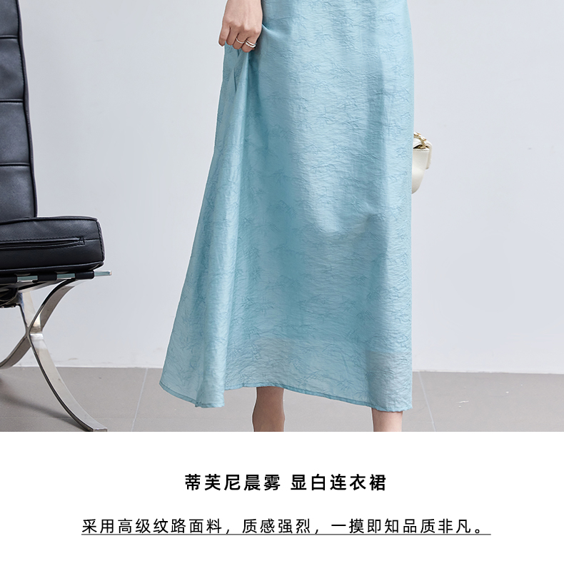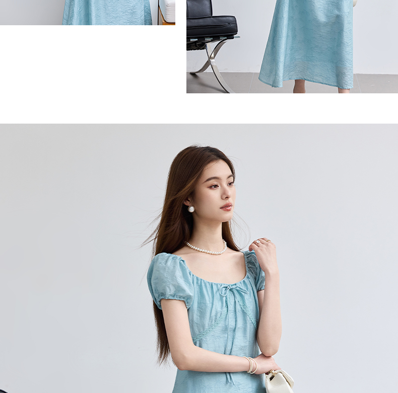 VICTORIA&VERA夏季“云绡胧袖”复古文艺高级感简约大方领肌理感泡泡袖连衣裙