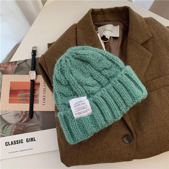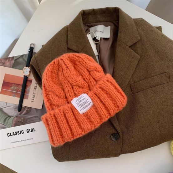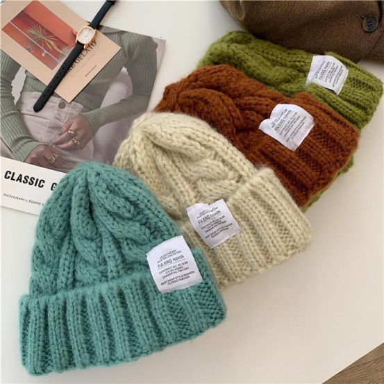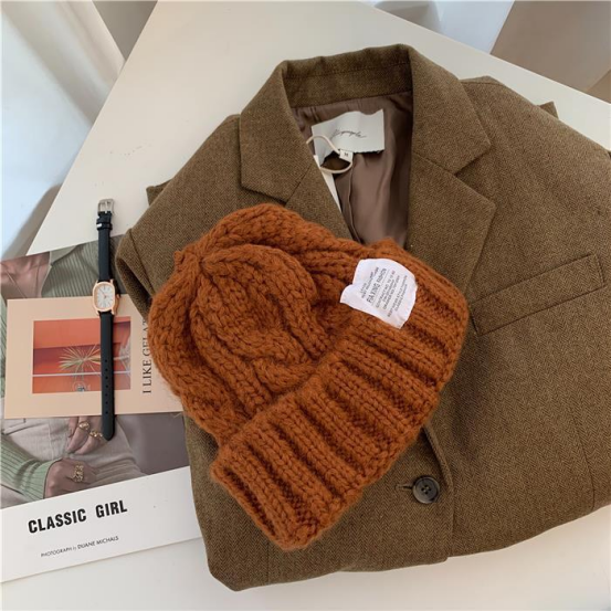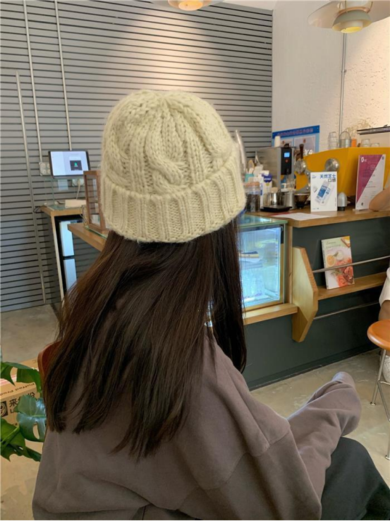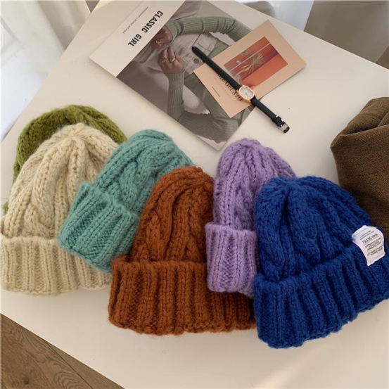 小野日记-麻花毛线帽 ins潮秋冬复古显脸小百搭保暖针织帽糖果色麻花毛线帽