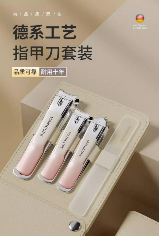 “日常使用套盒” 一款真正的高端的指甲剪 爱美人士的首选 表面深度防锈处理长久防锈 使用几年不变钝! 家中常备套盒装包 包装非常精美送人也不掉面的 闭眼买就行