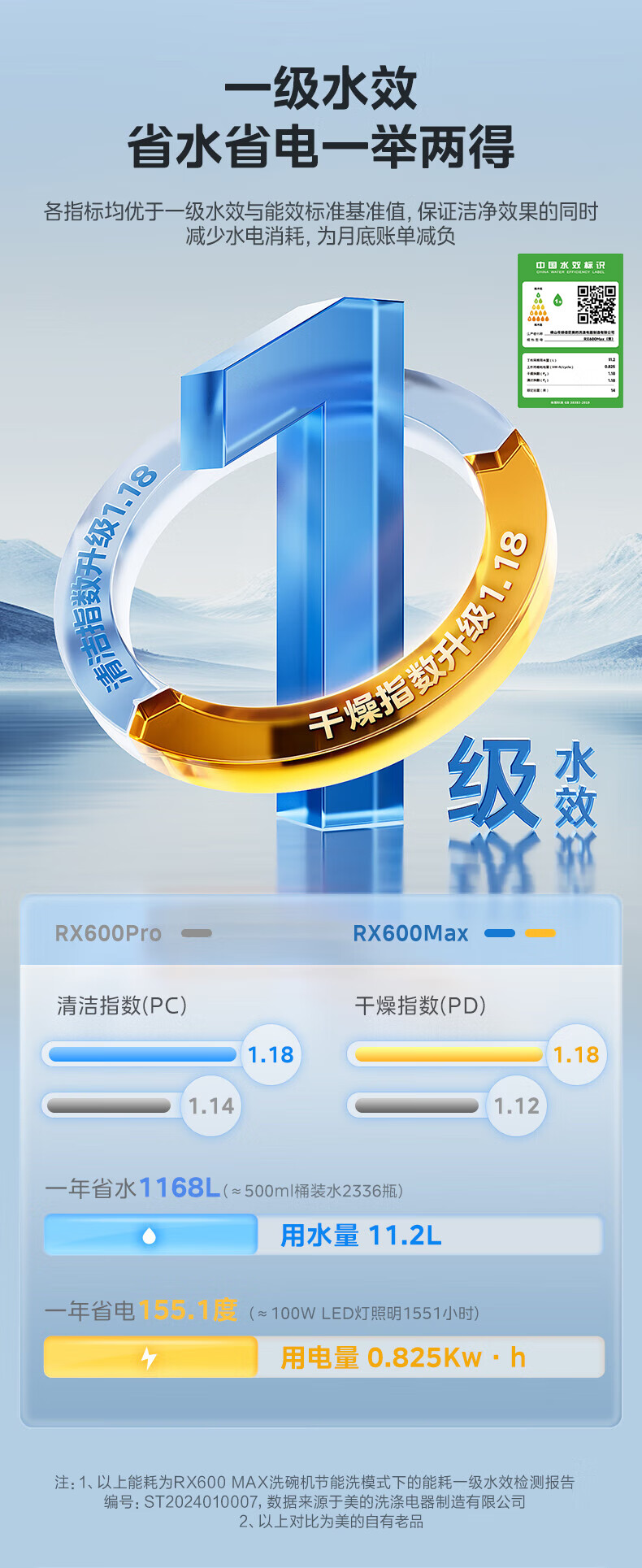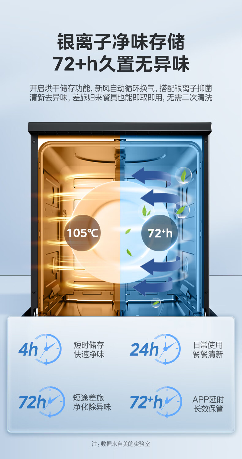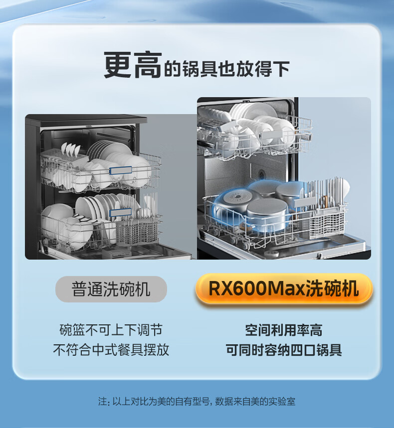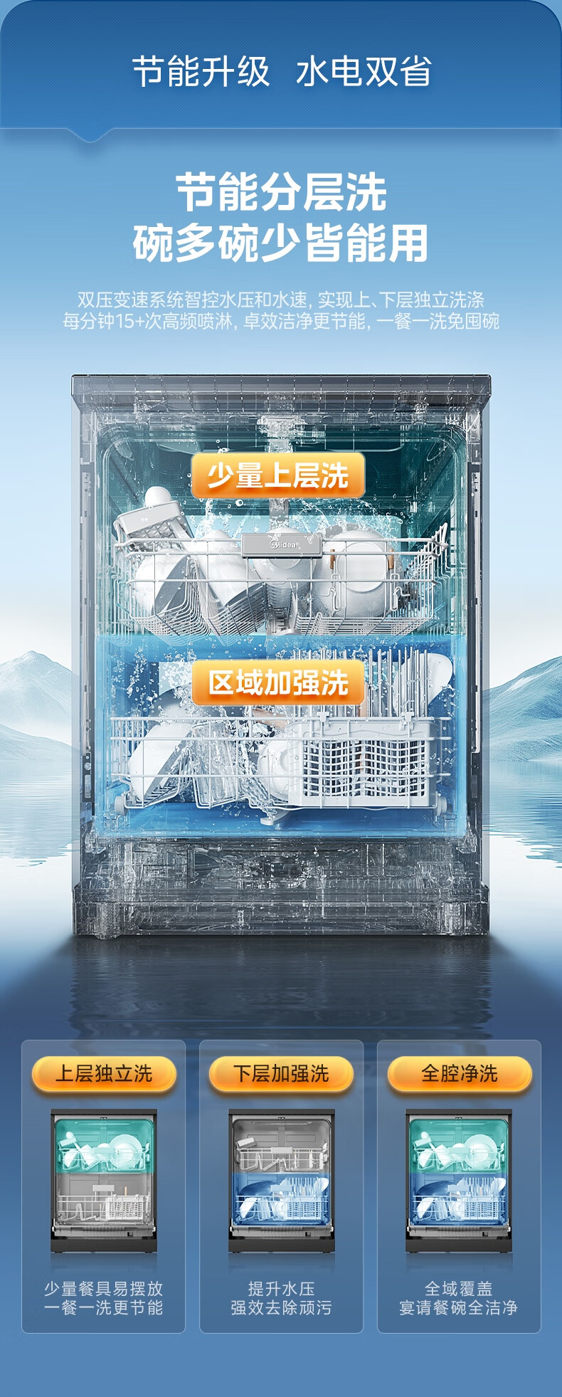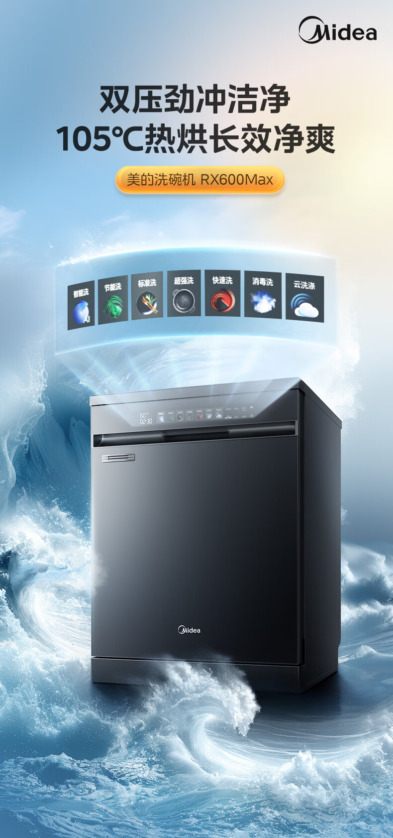 的(Midea)14套嵌入式洗碗机RX600Max 105℃热风烘干+升降碗篮 一级水效 三星消毒分层洗