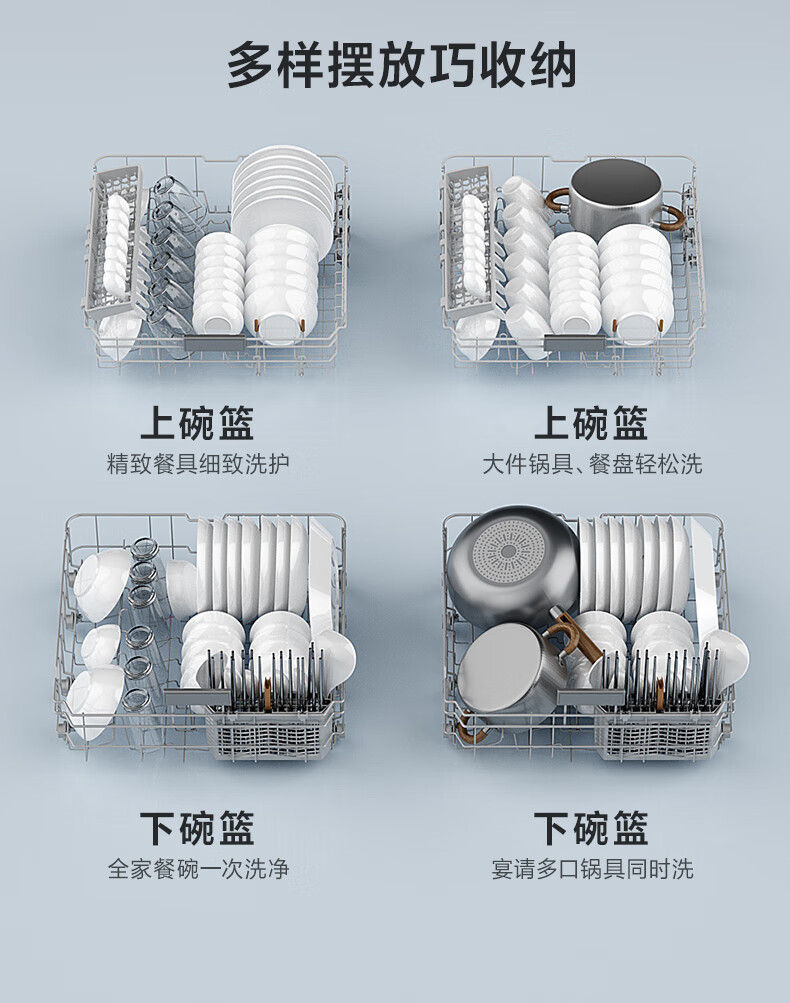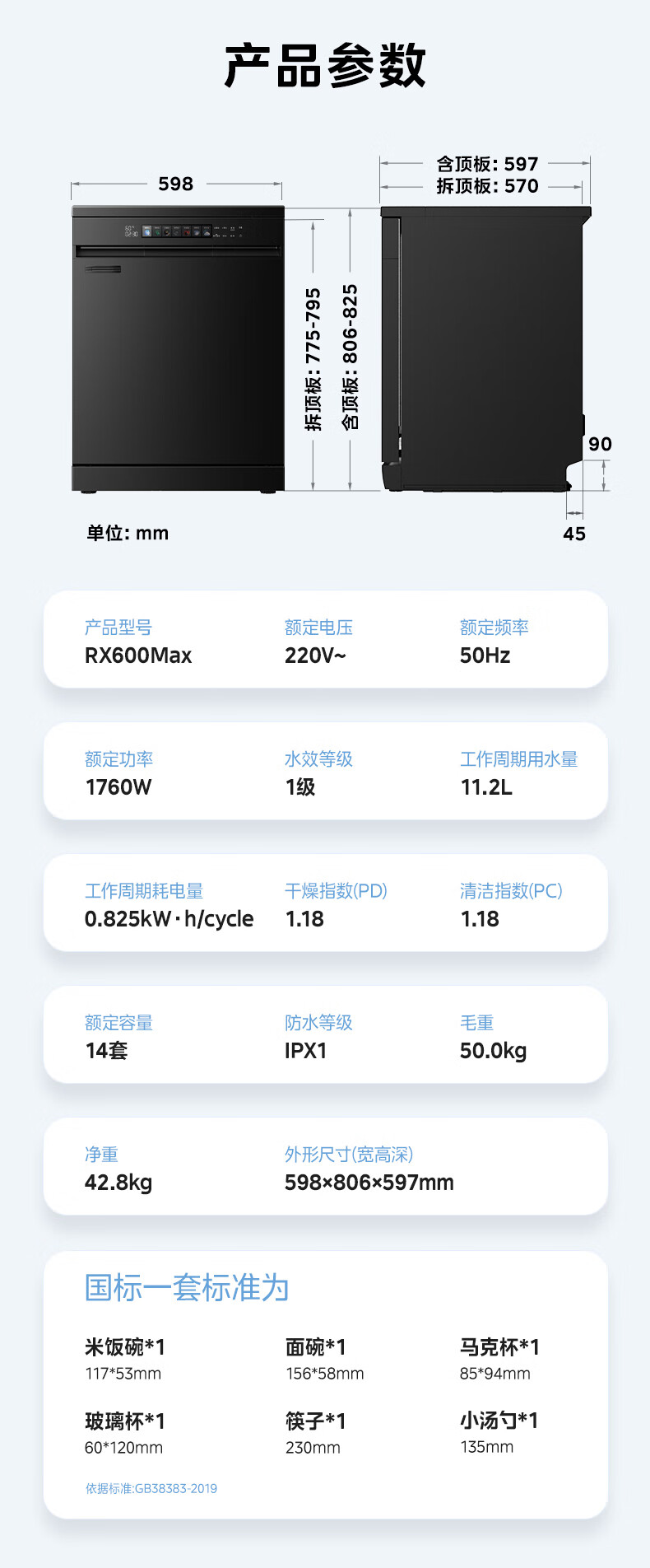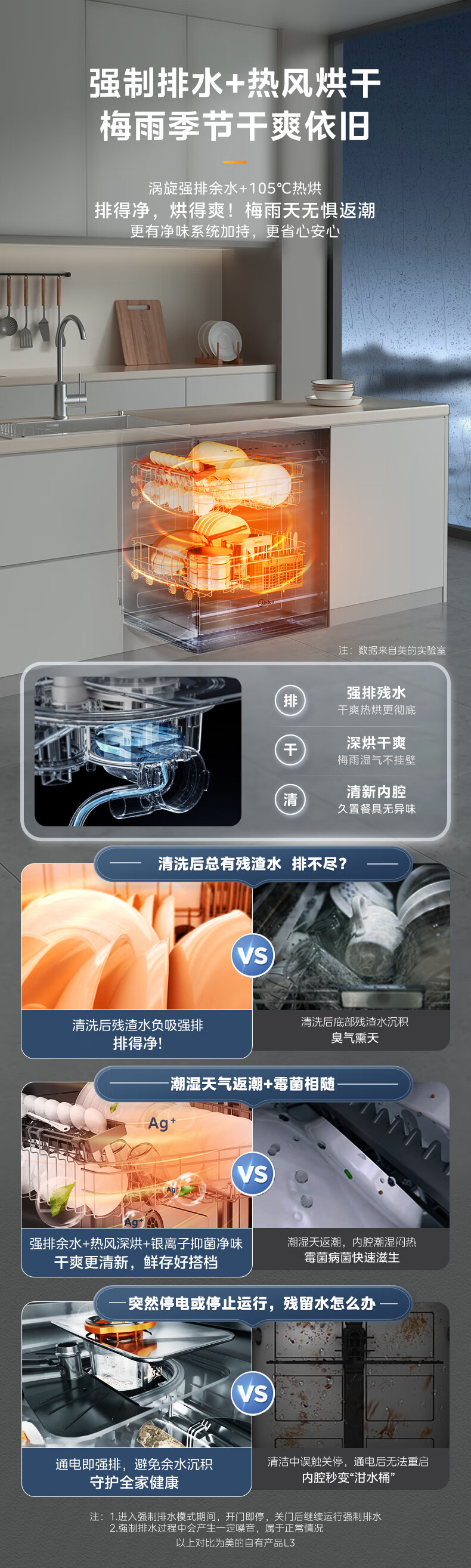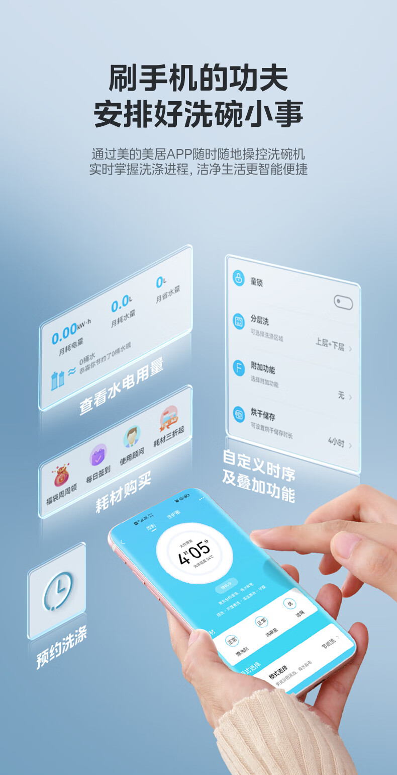 的(Midea)14套嵌入式洗碗机RX600Max 105℃热风烘干+升降碗篮 一级水效 三星消毒分层洗