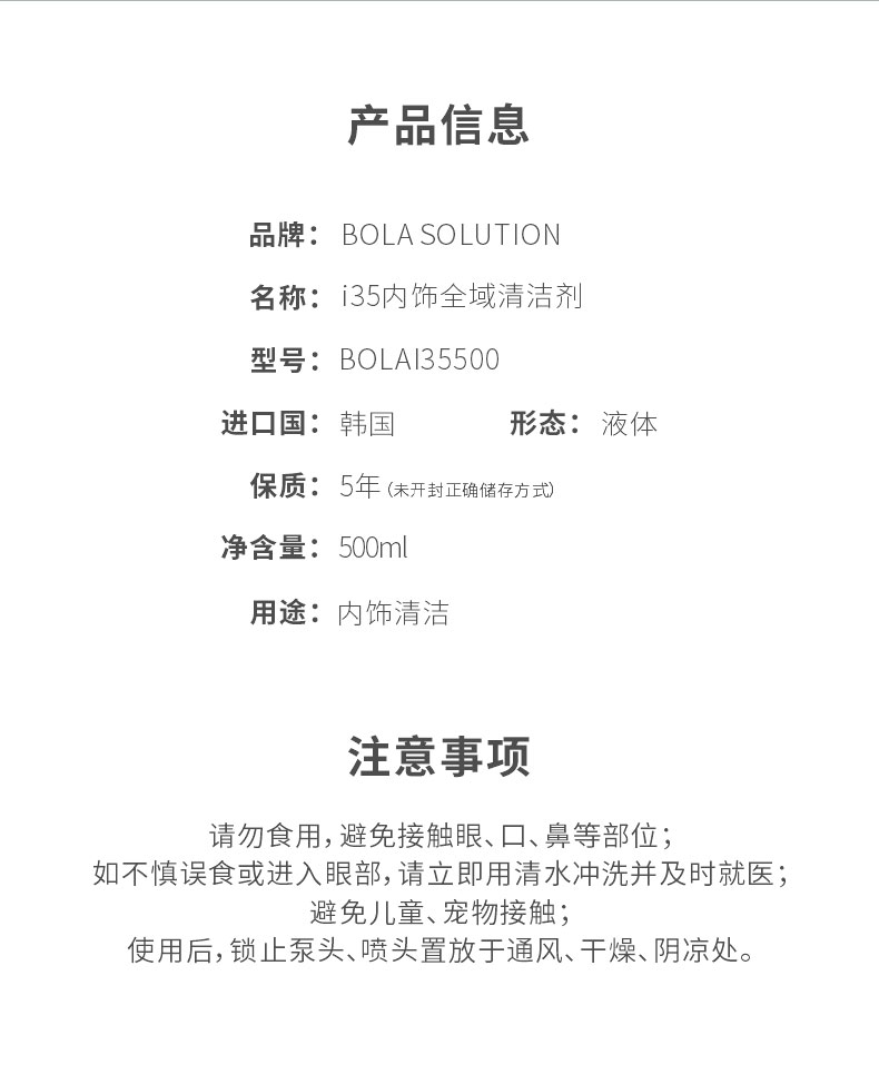 BOLA SOLUTION i35内饰清洁剂500ml