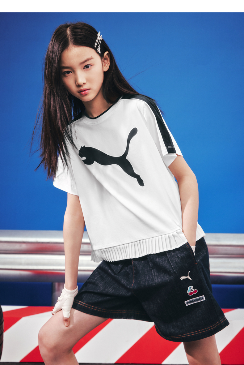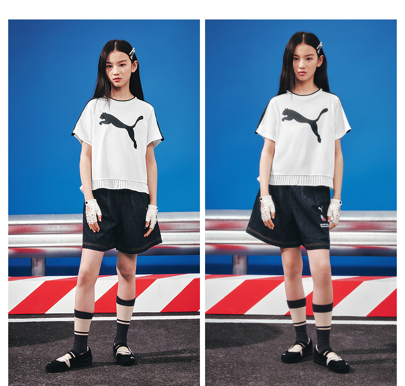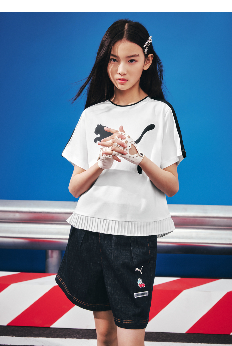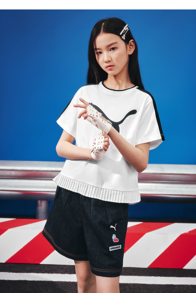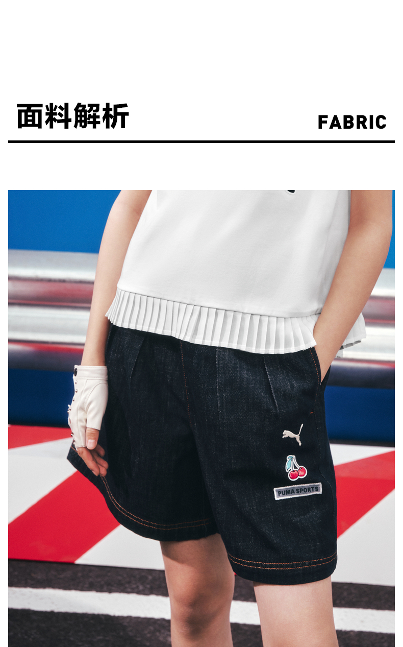 PUMA彪马童装2026夏季新款儿童女童短裤牛仔A摆裙裤复古时髦