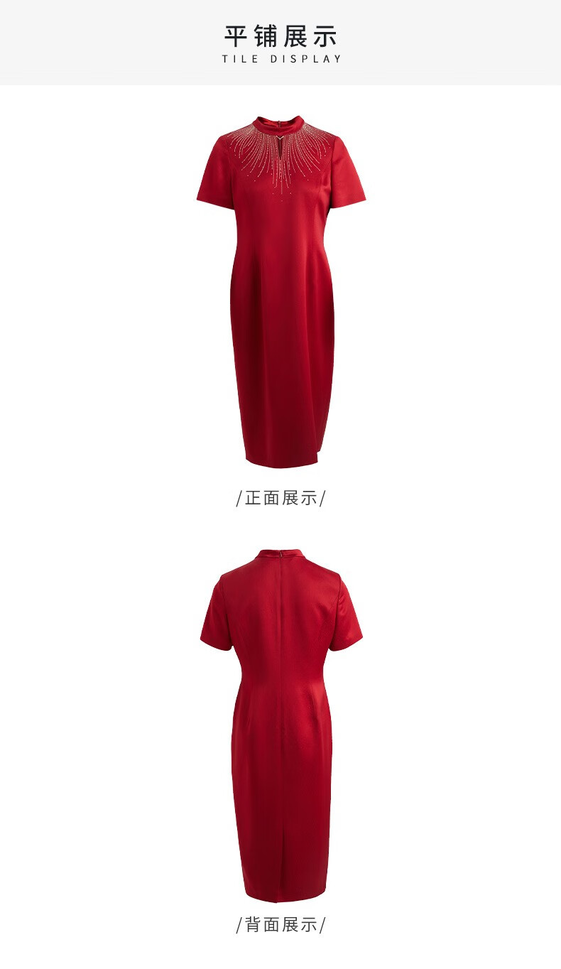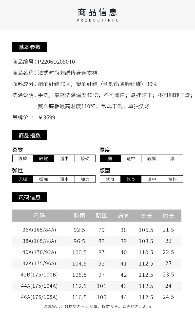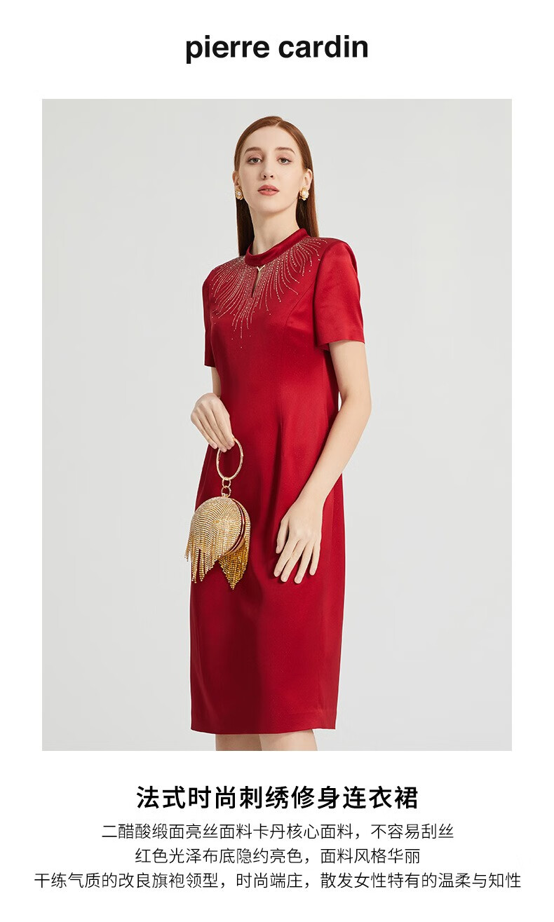 皮尔卡丹女装连衣裙法式时尚刺绣端庄宴会场合礼服裙P2206D2080T0