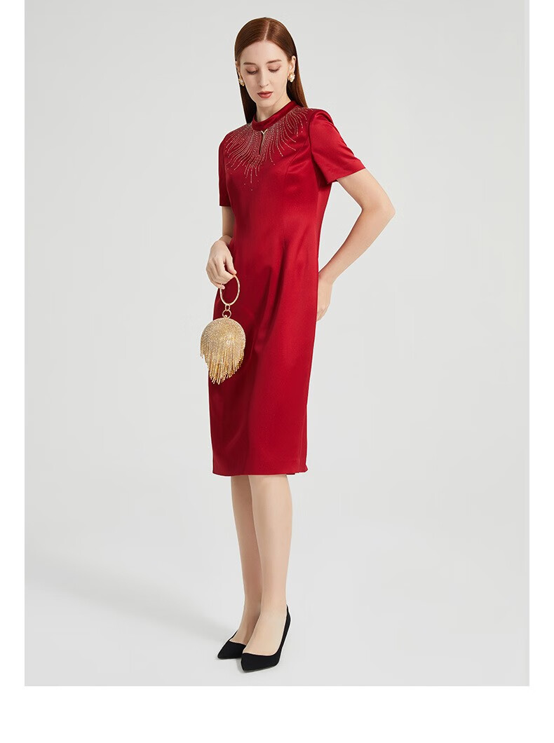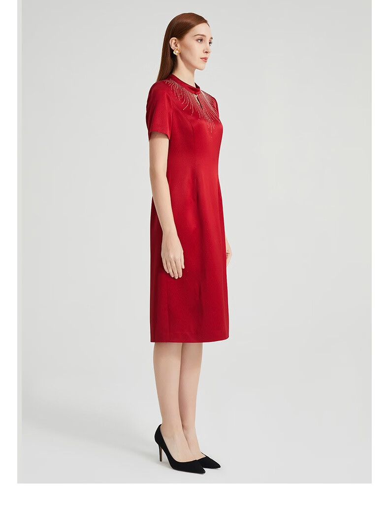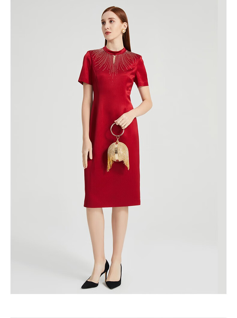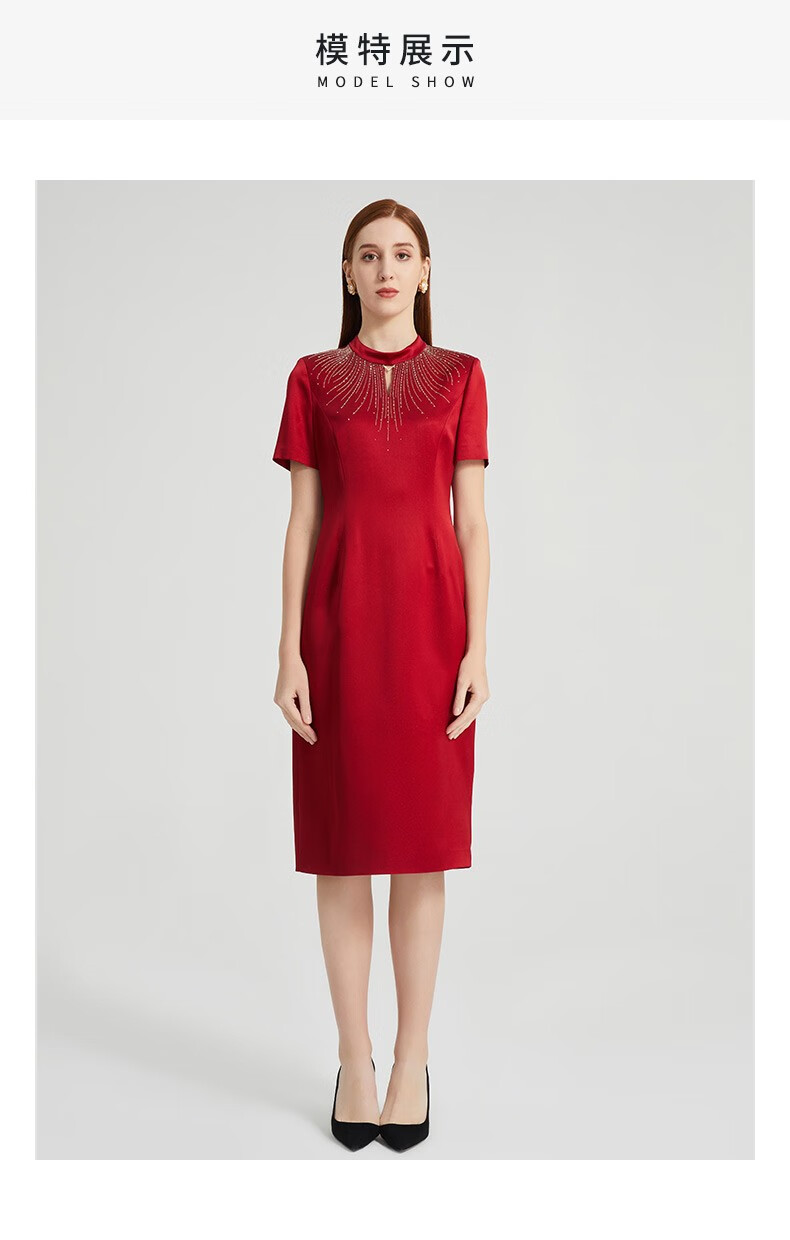 皮尔卡丹女装连衣裙法式时尚刺绣端庄宴会场合礼服裙P2206D2080T0