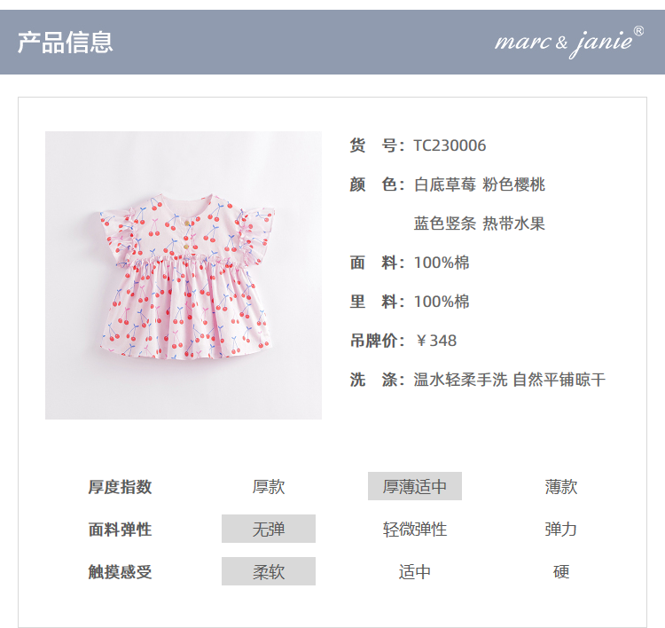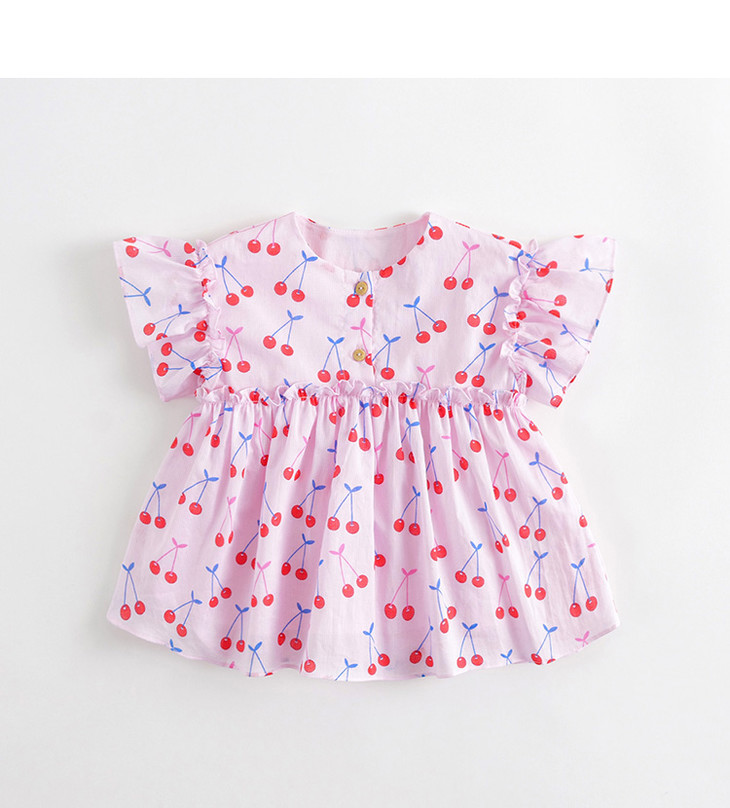 马克珍妮夏装新款 女童满印花边袖纯棉小衫230006