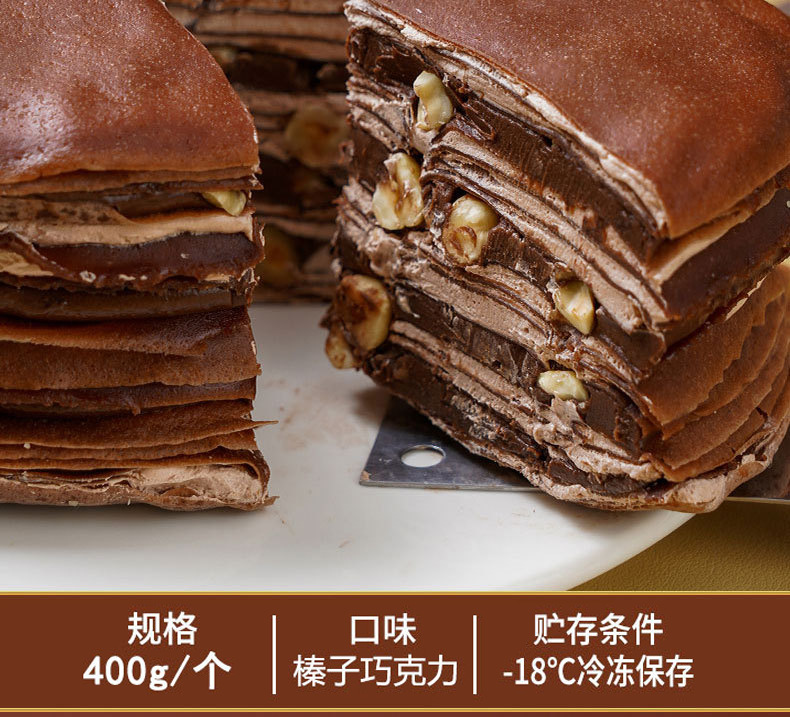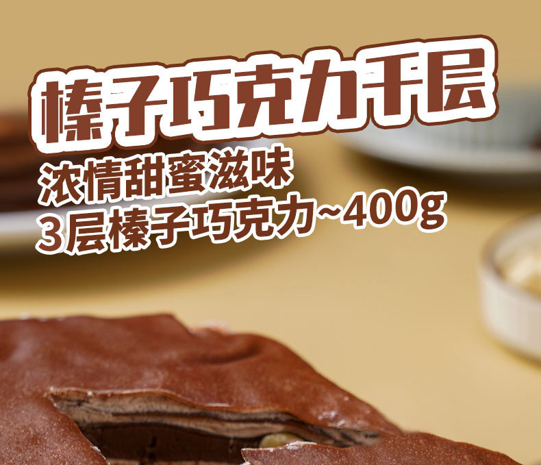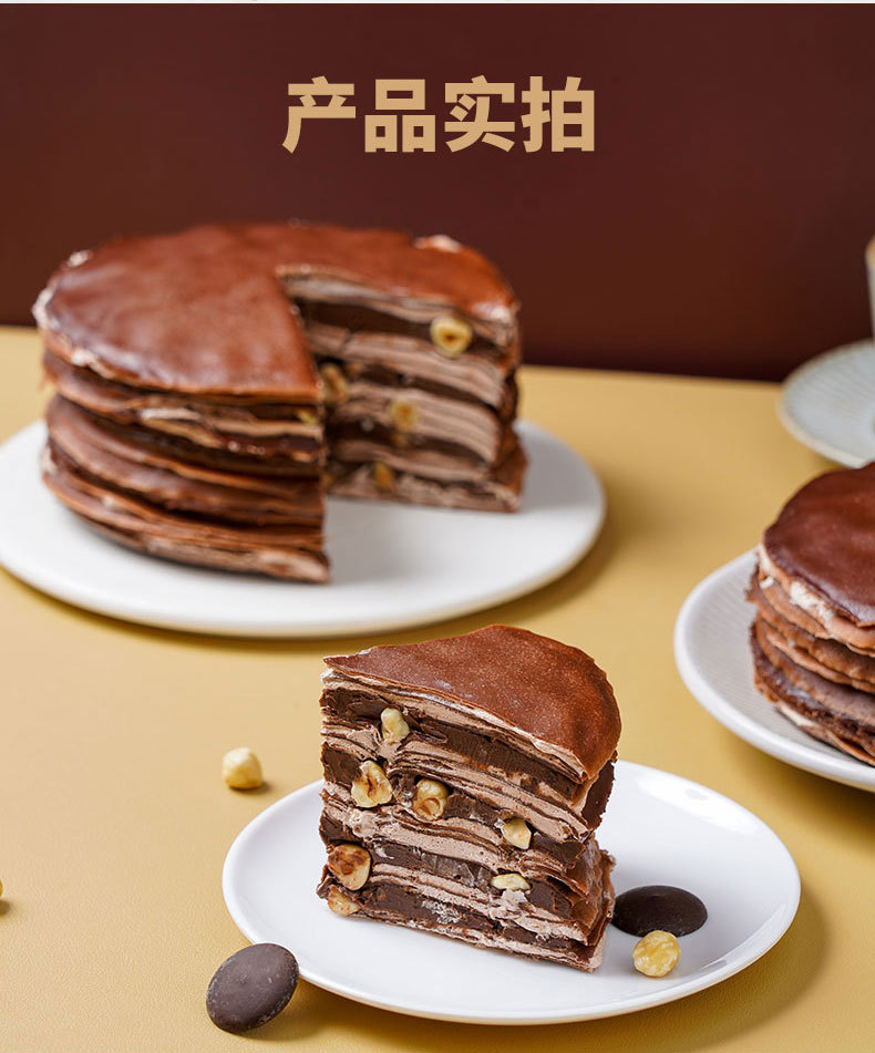 【一口满足❗️榛仁巧克力千层】多层薄脆酥皮与巧克力奶油、榛仁交替叠加,咬开时酥皮碎裂、奶油绵密、榛仁香脆,三重口感层次分明,网红甜品下午茶巧克力爆浆千层蛋糕QQ