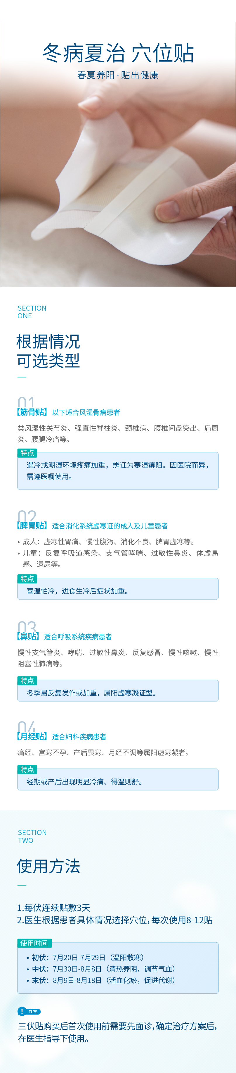 三伏贴购买后首次使用前需要先面诊,确定治疗方案后,在医生指导下使用。