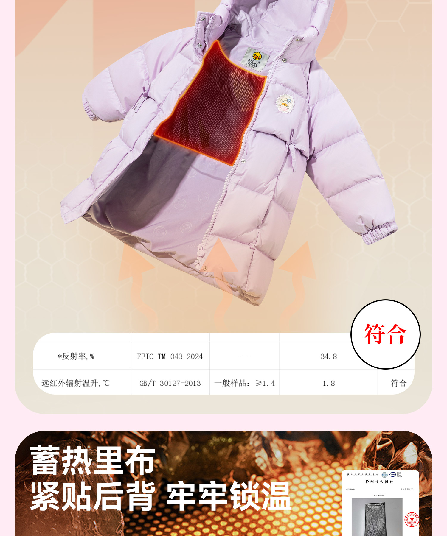 【三防蓄热】B.Duck小黄鸭童装冬季中长款羽绒105-150 FF5616036