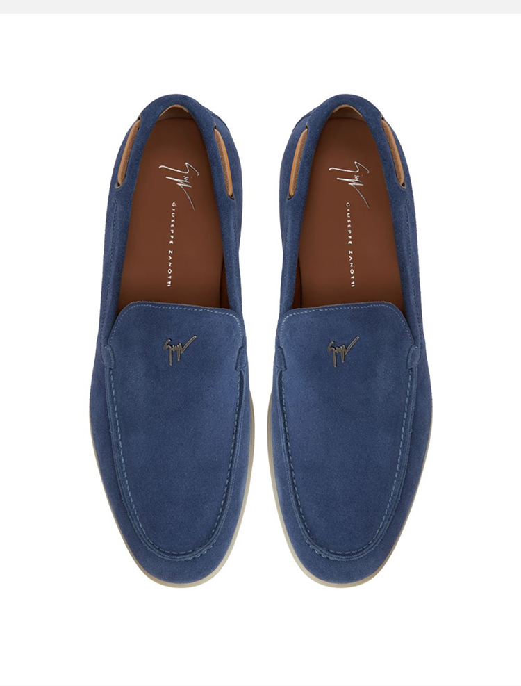 Giuseppe Zanotti 男士金属签名徽标平底鞋 蓝色 EU40021004