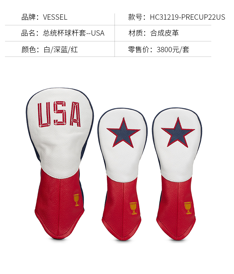 「特价」VESSEL高尔夫球包总统杯公开赛纪念版支架包球杆套帽把护套