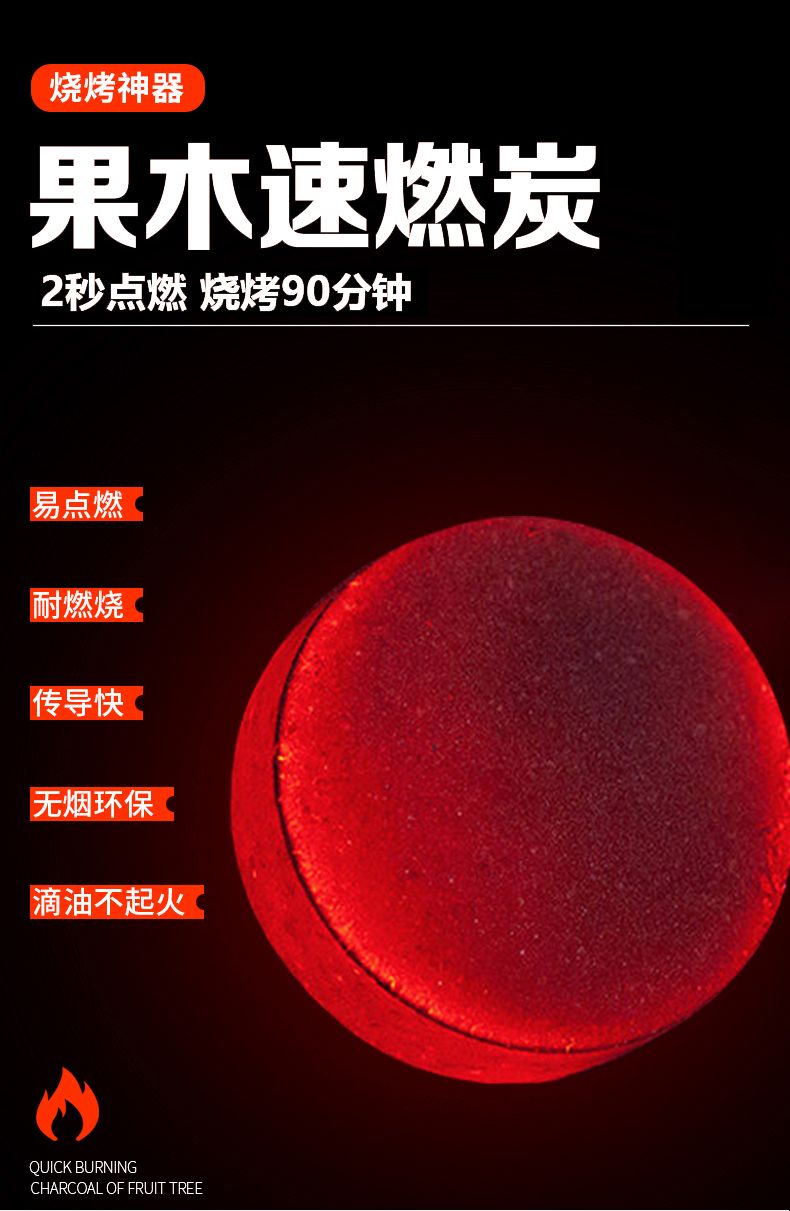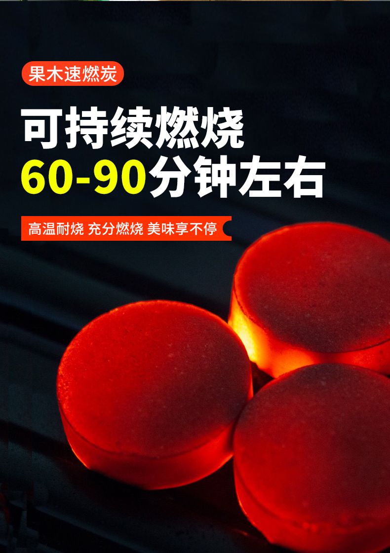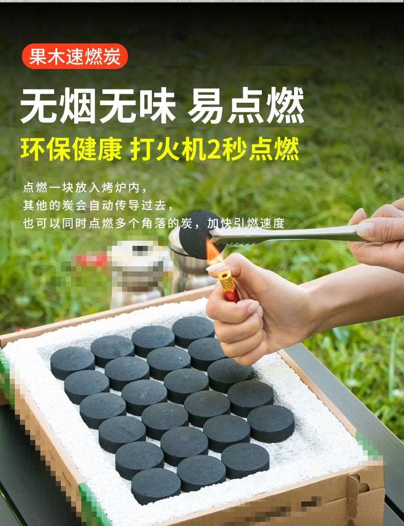 速燃炭烧烤碳烧烤木炭引燃果木炭无烟碳煮茶炭烧烤