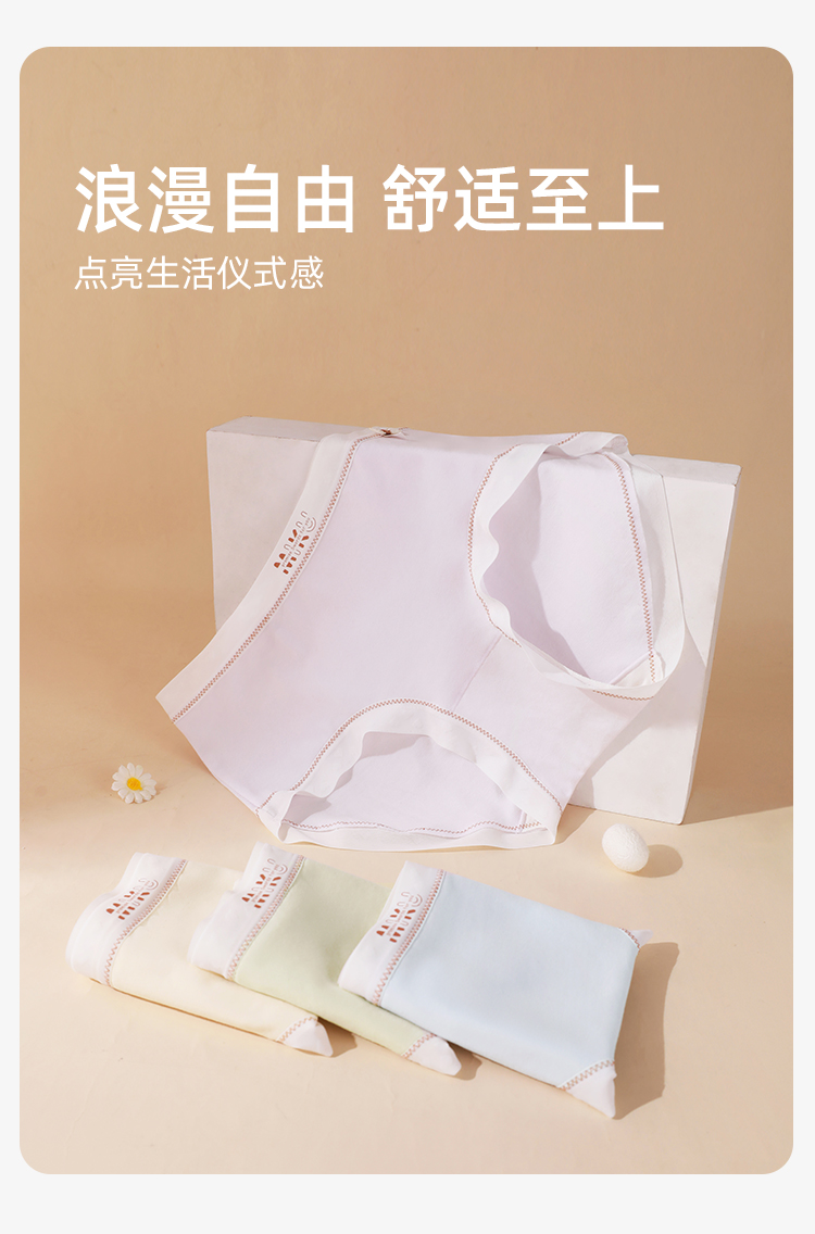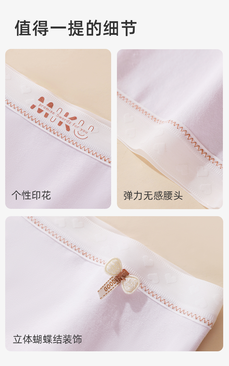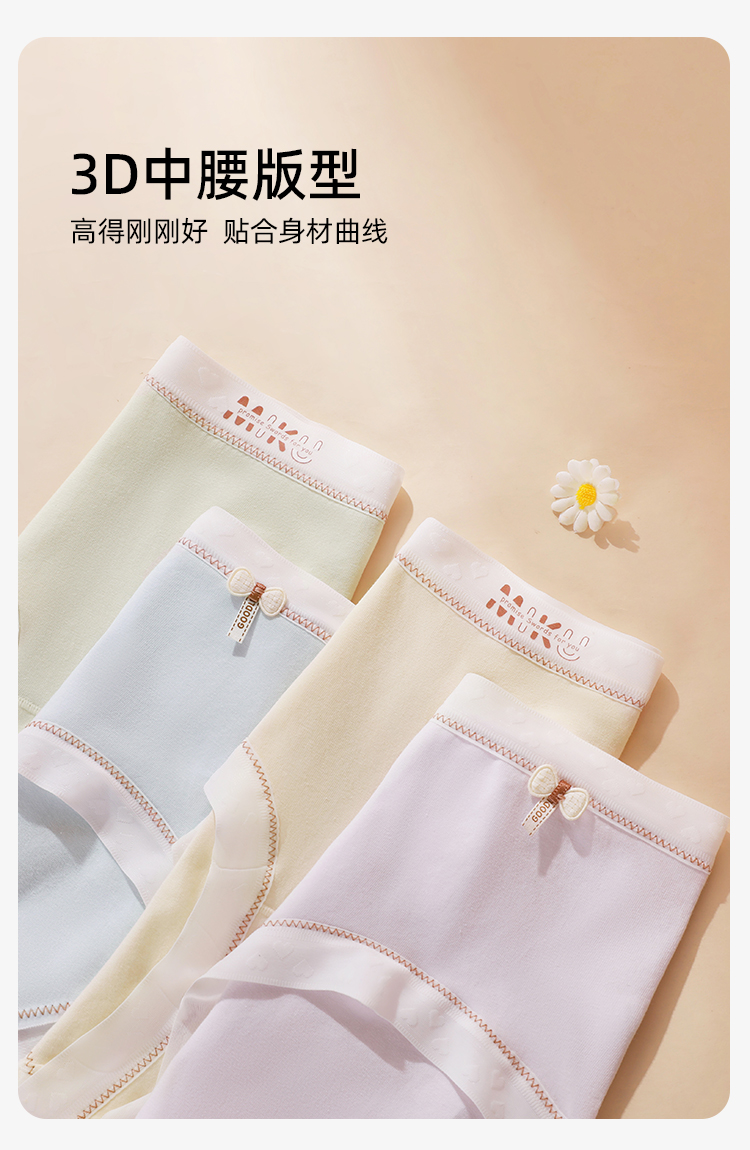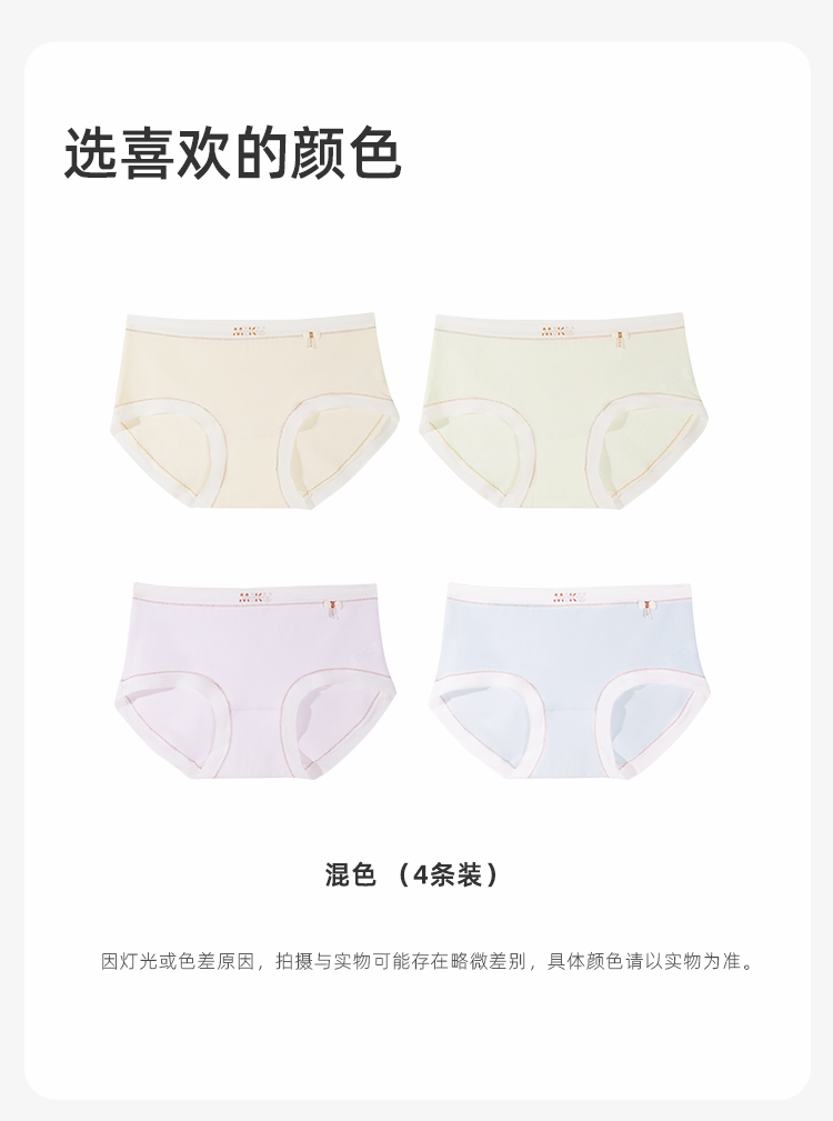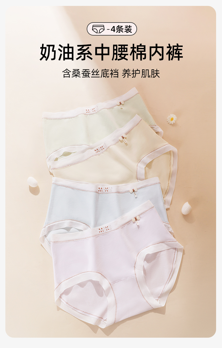 【4条装】熳洁儿 中腰纯棉女士内裤含蚕丝底档奶油系可爱24762115