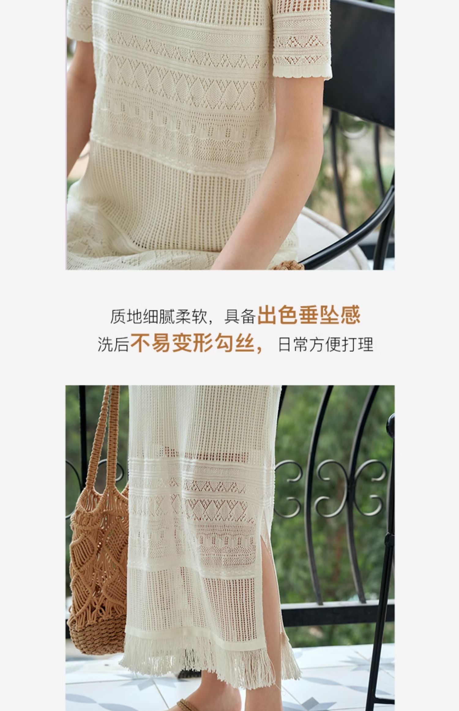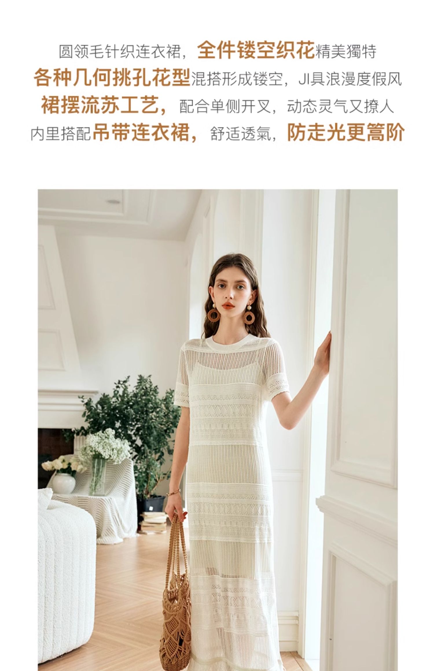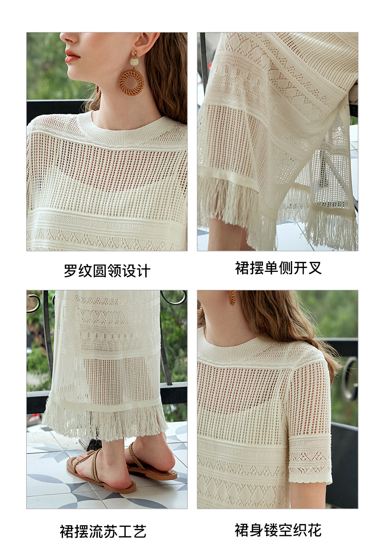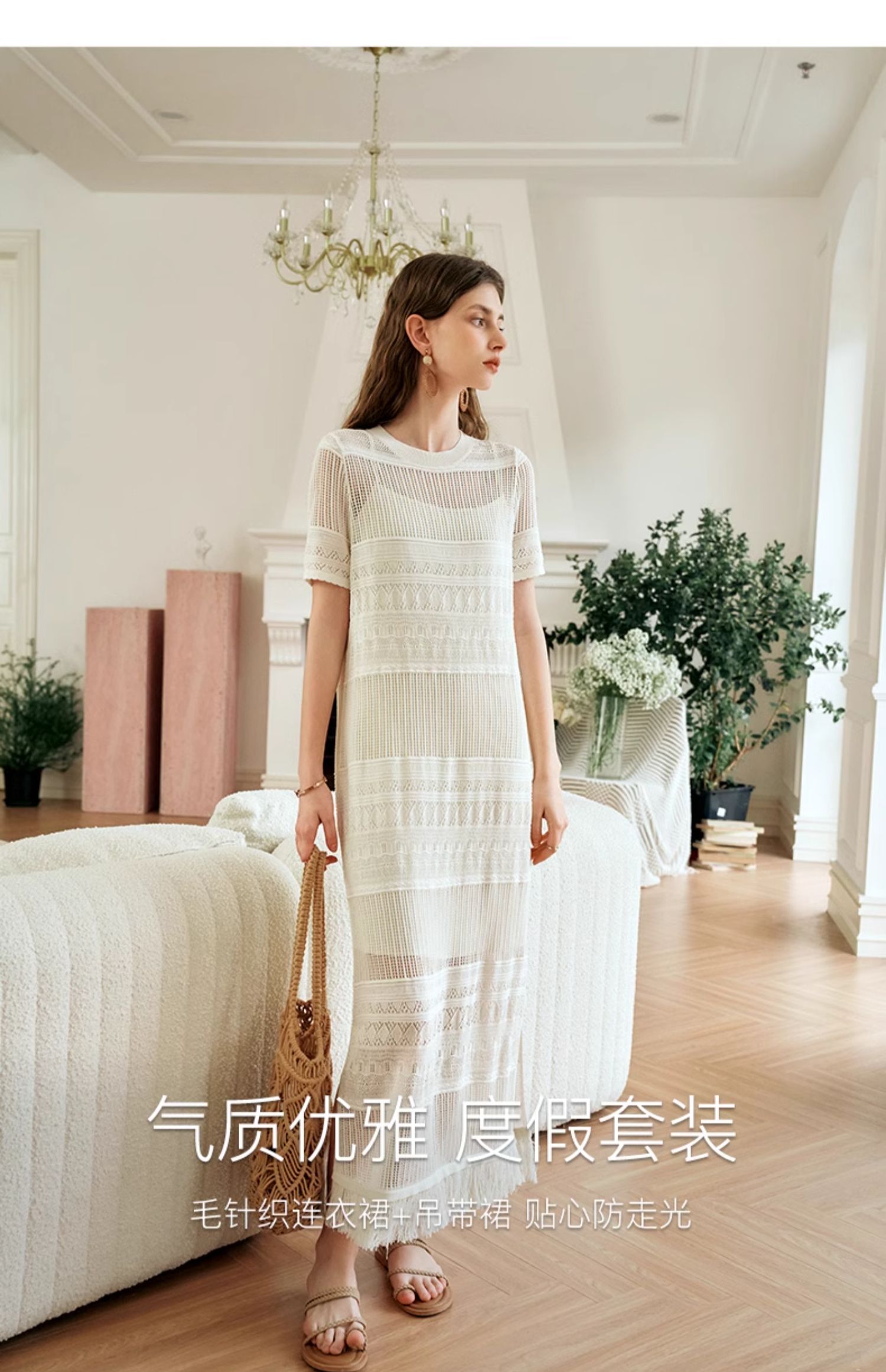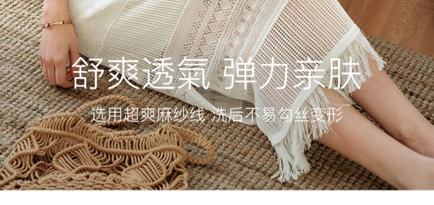 欧芮儿法式白色镂空针织连衣裙女夏2024新款度假风吊带两件套长裙