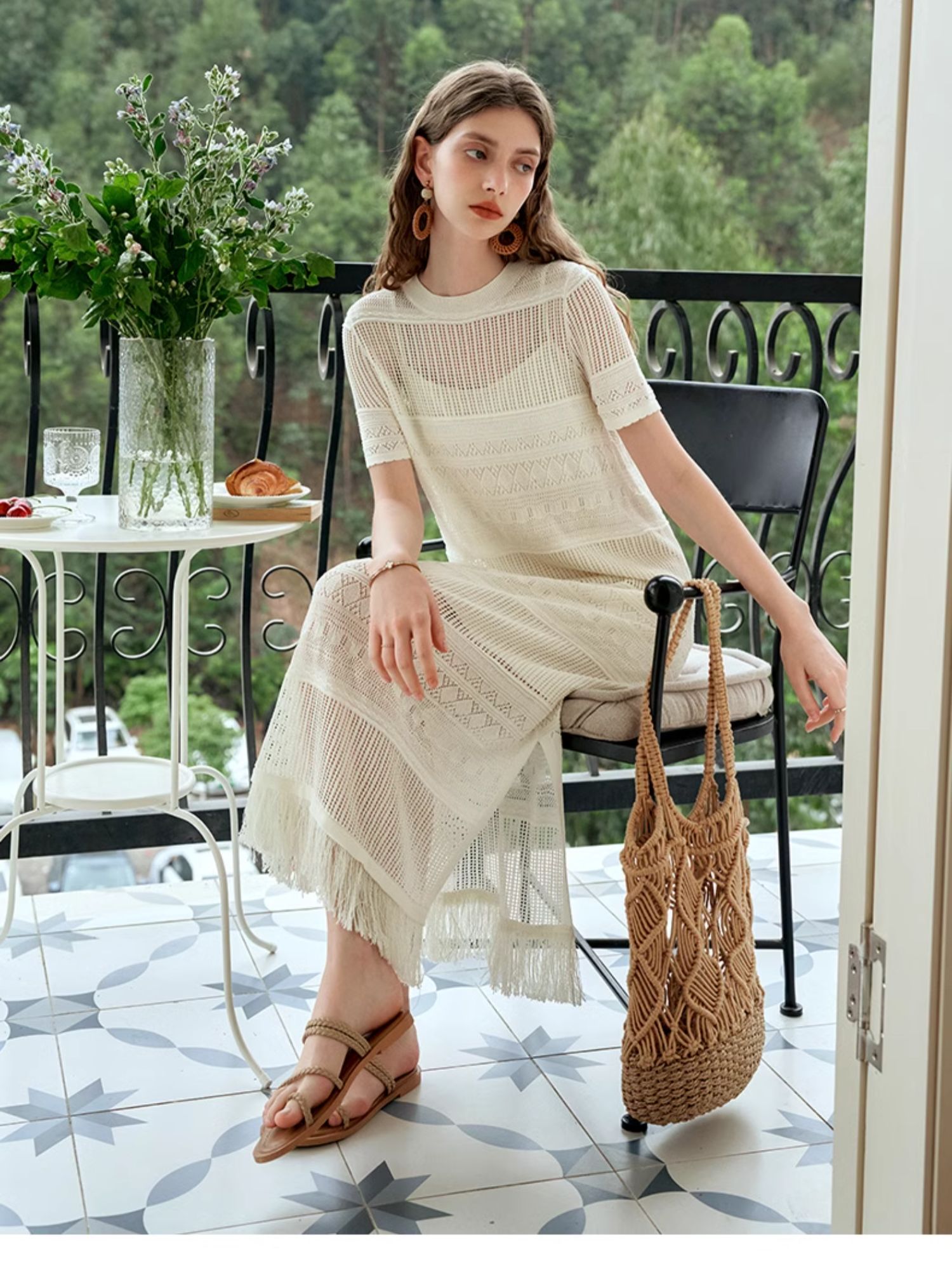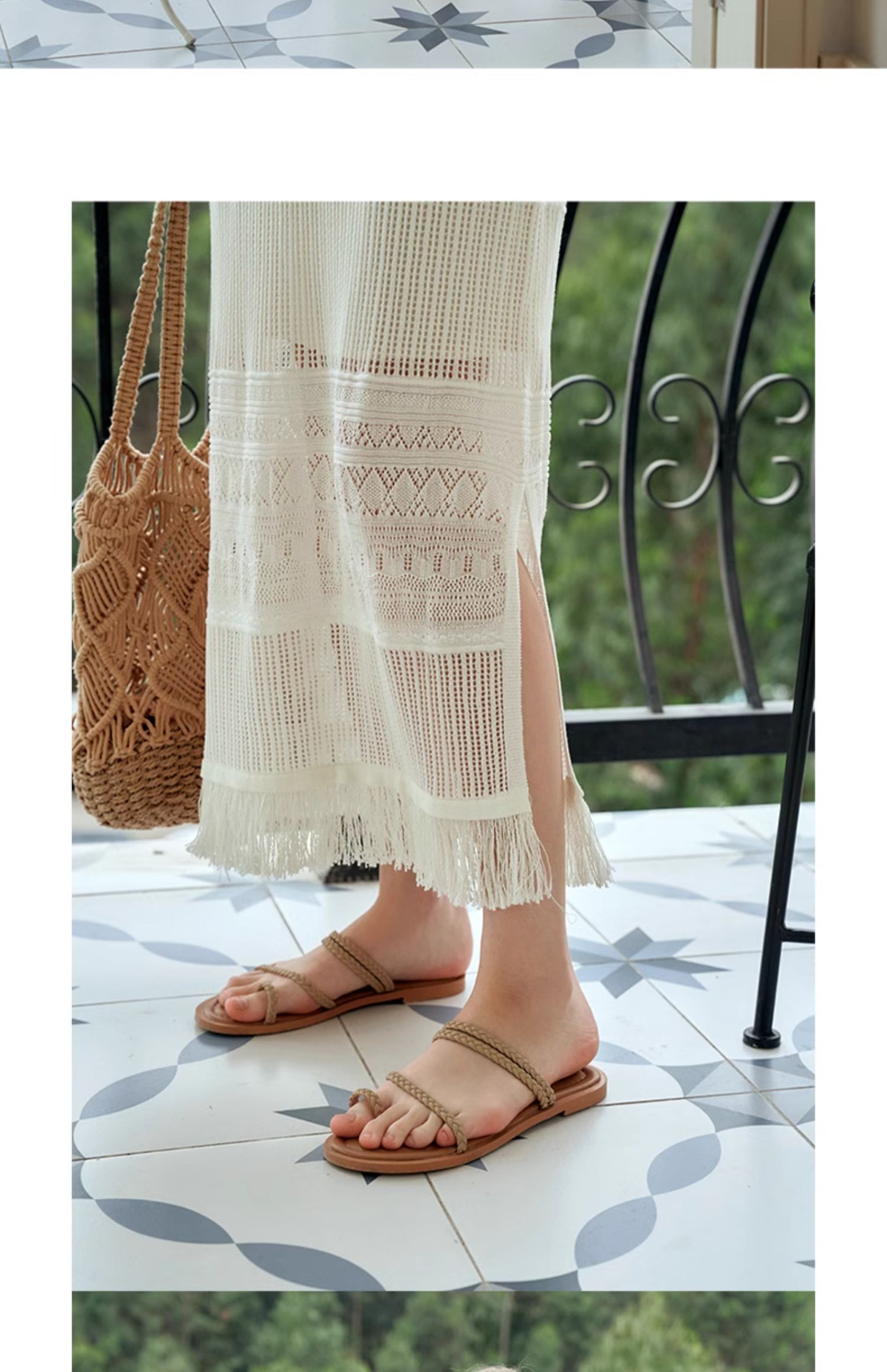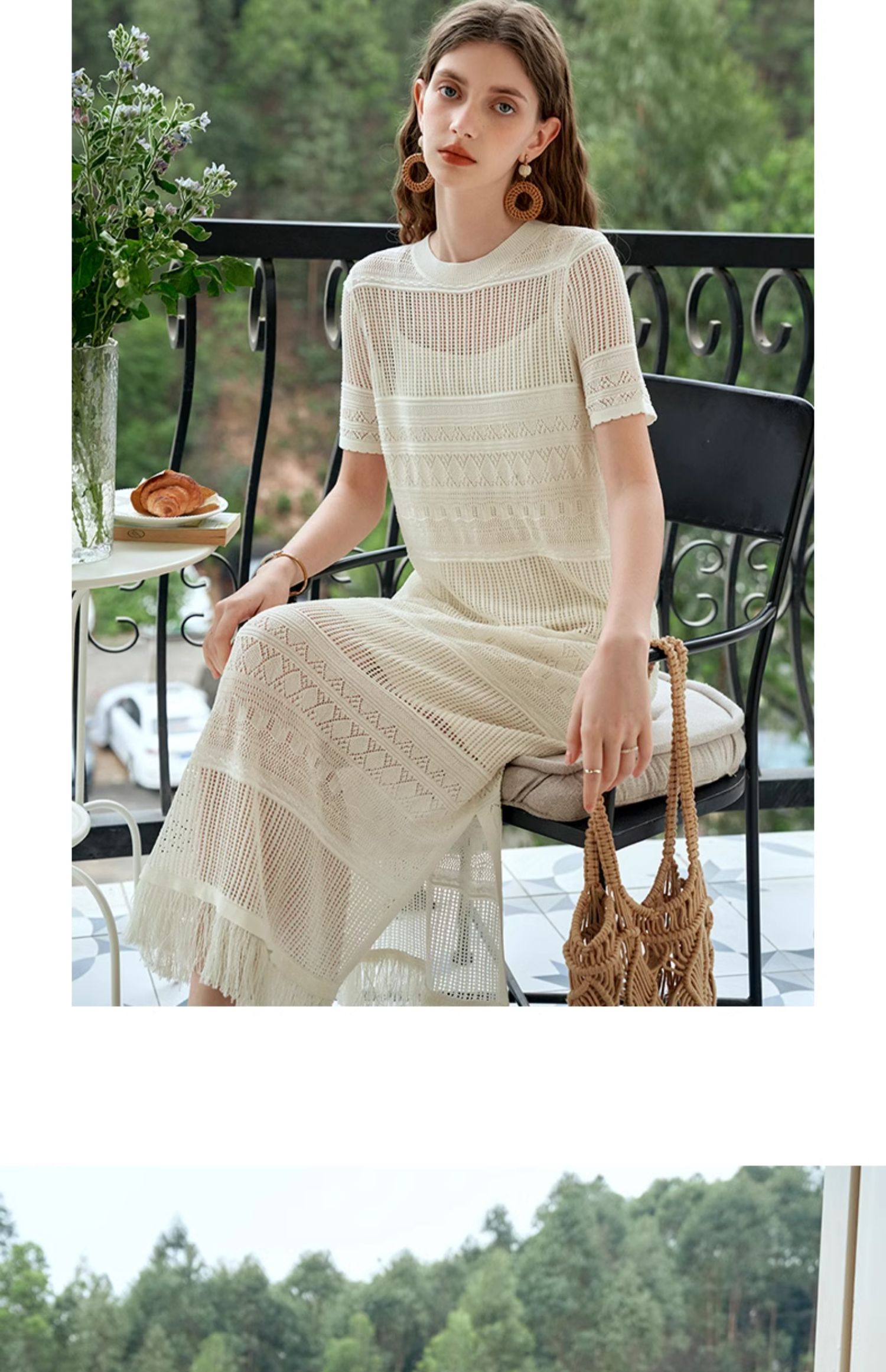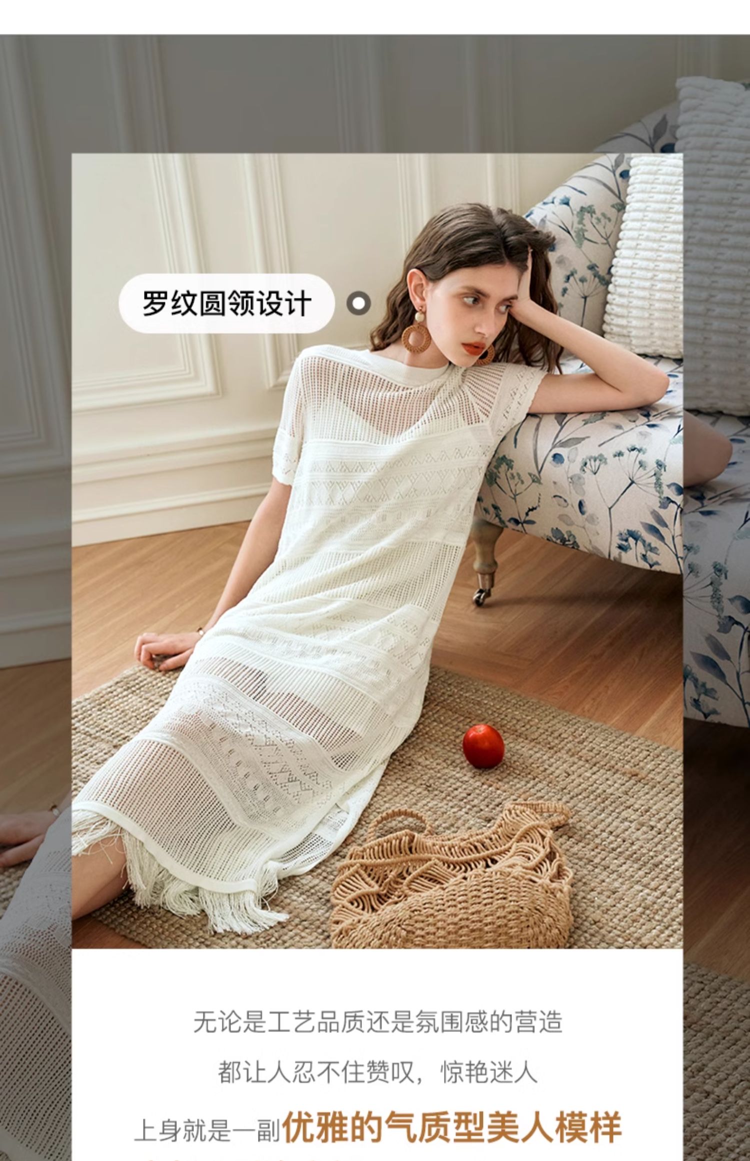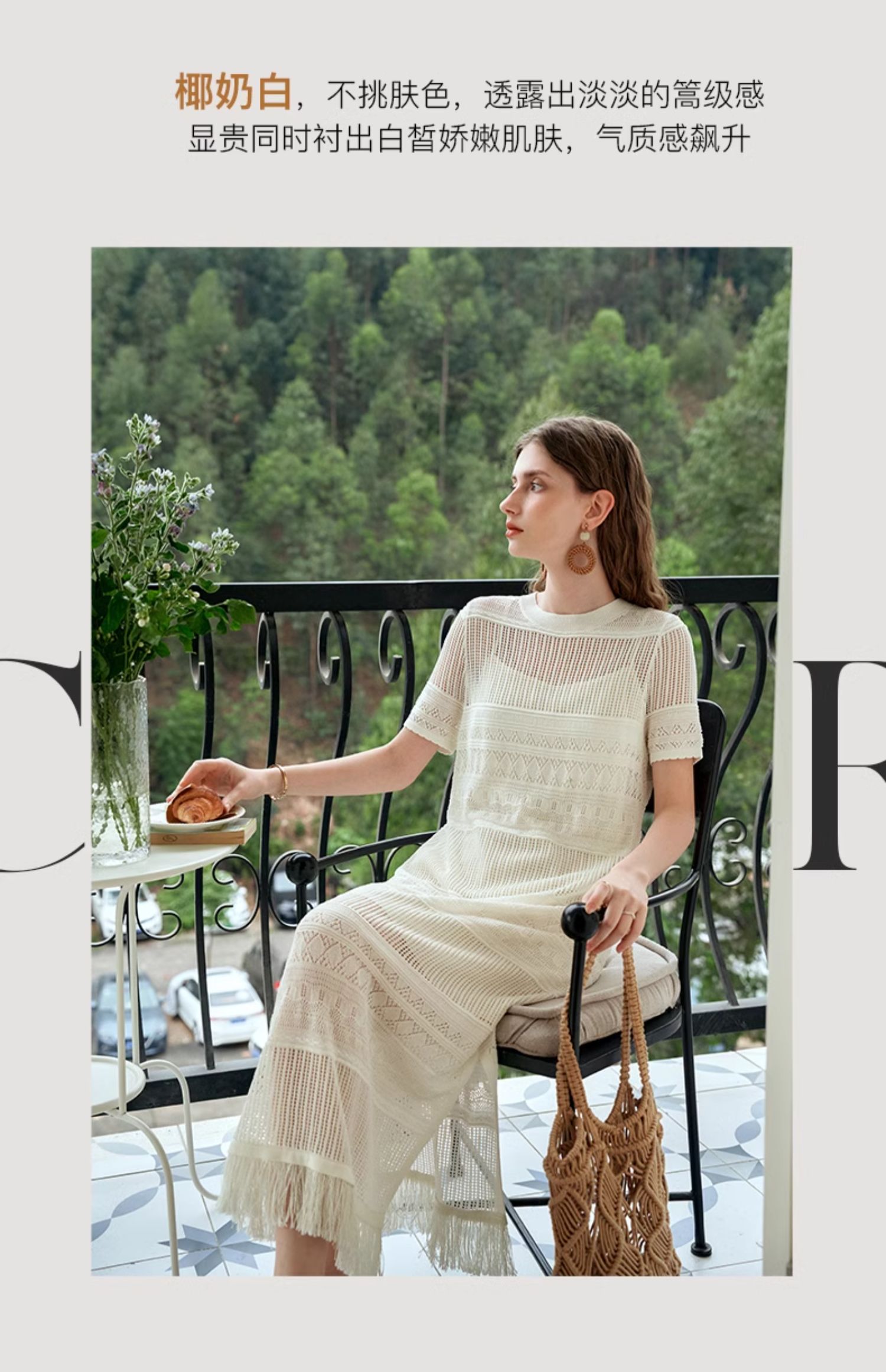欧芮儿法式白色镂空针织连衣裙女夏2024新款度假风吊带两件套长裙