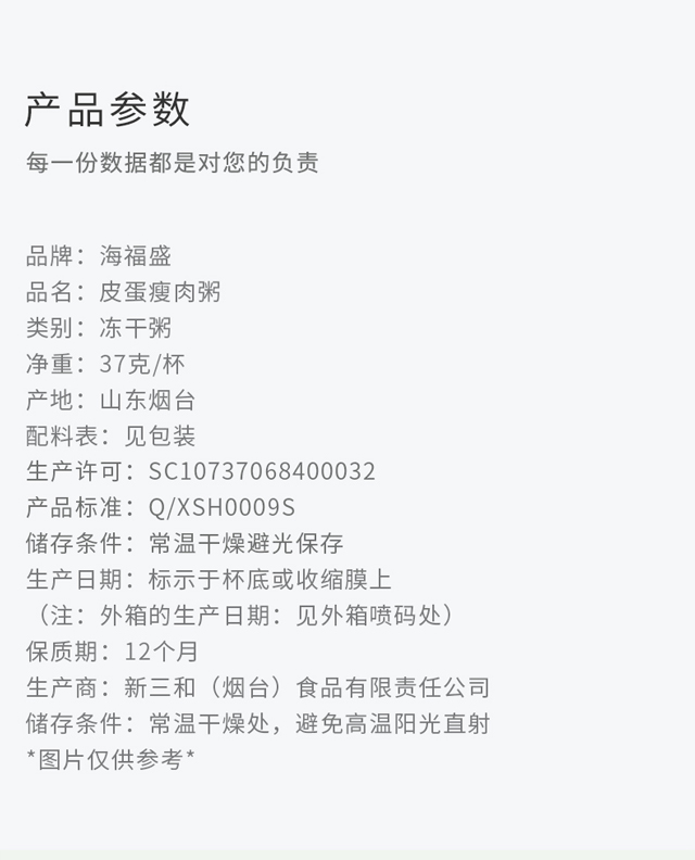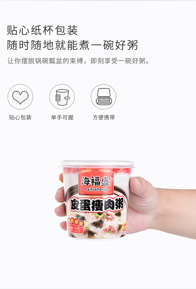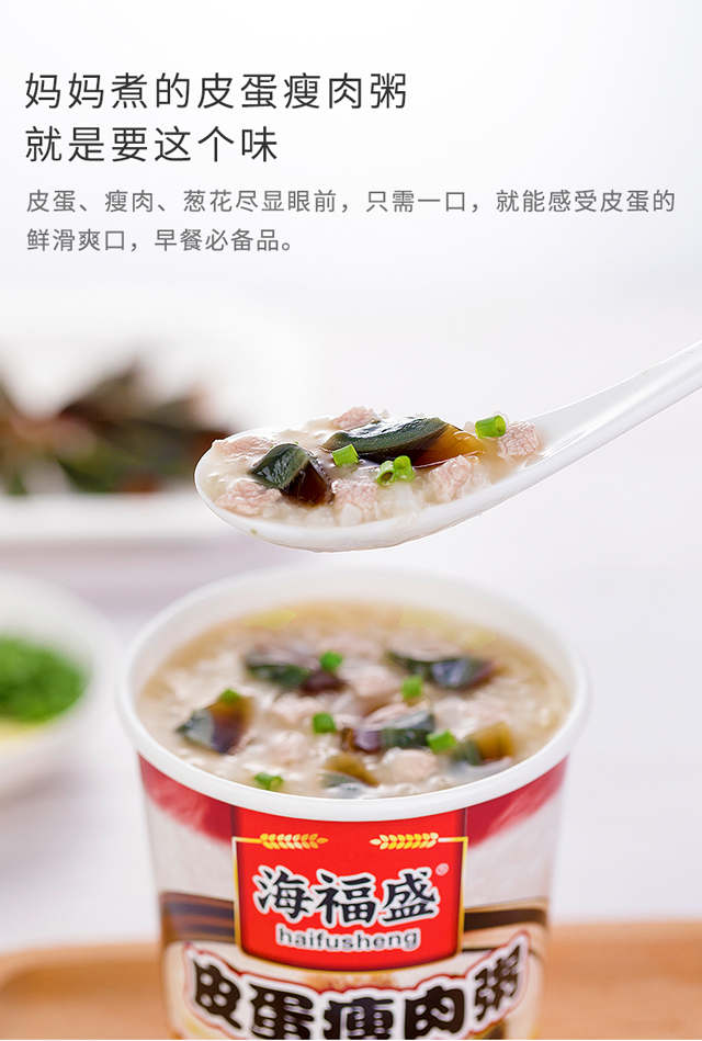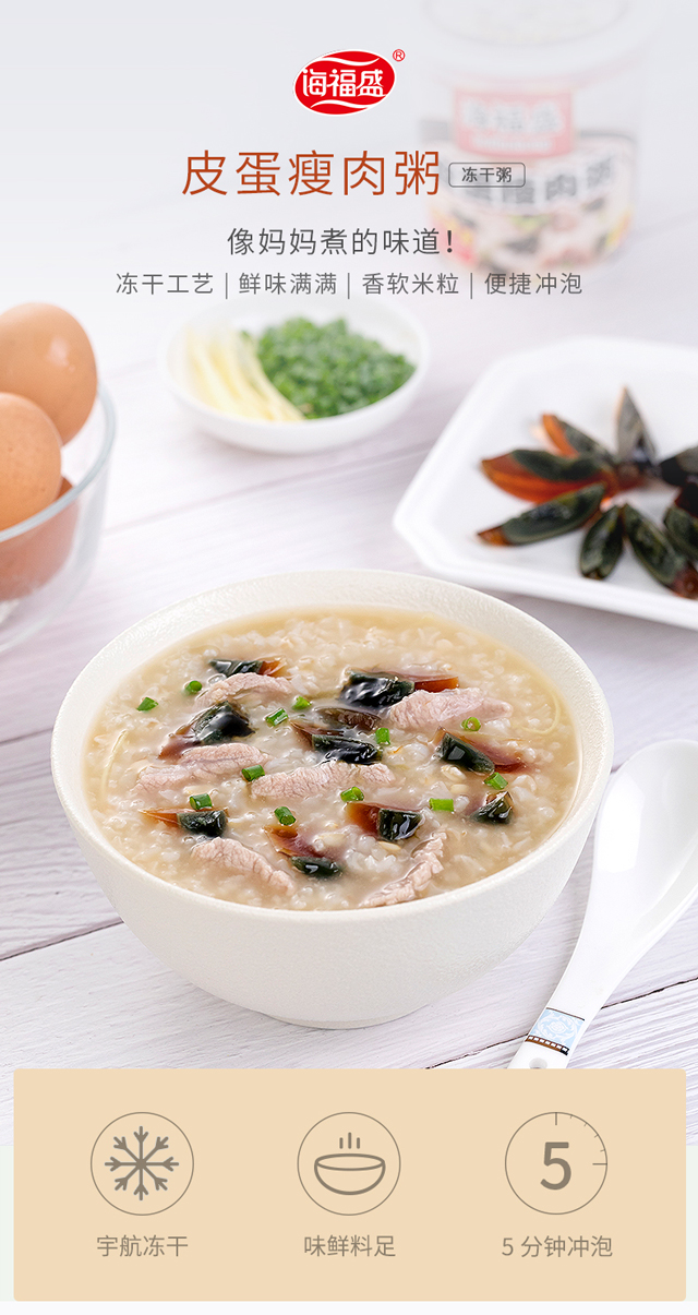 海福盛 营养早餐粥 皮蛋瘦肉粥 方便速食粥 FD冻干粥冲泡食品 37g*6杯 整箱装