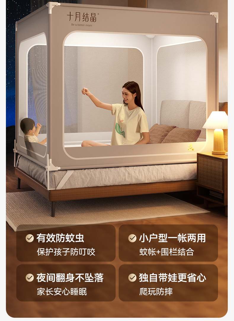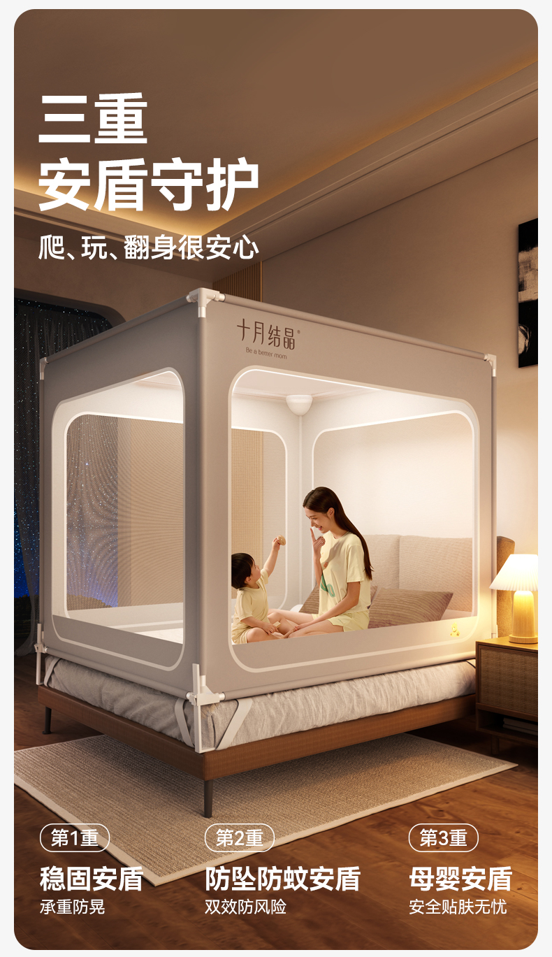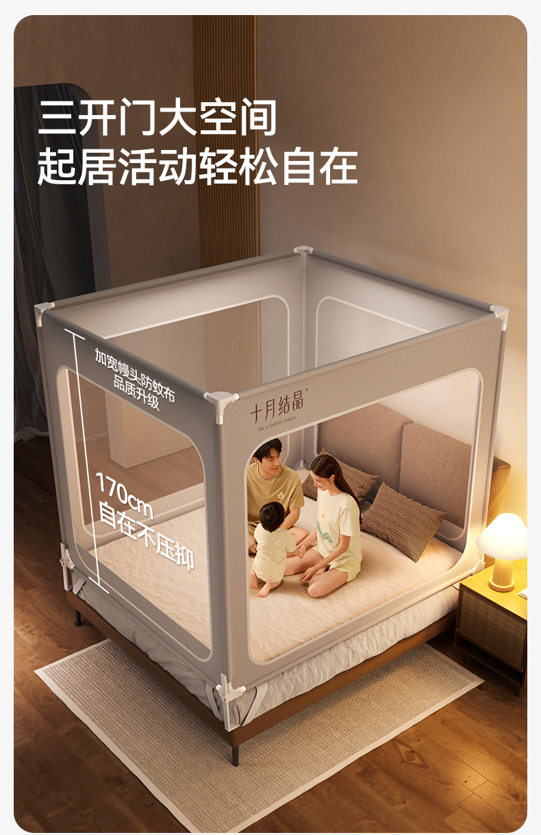 婴儿防摔蚊帐儿童防蚊虫纱网罩家用卧室宝宝成人床通用