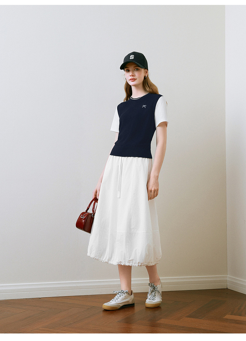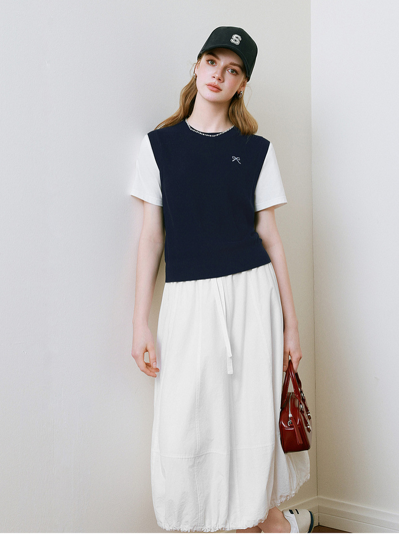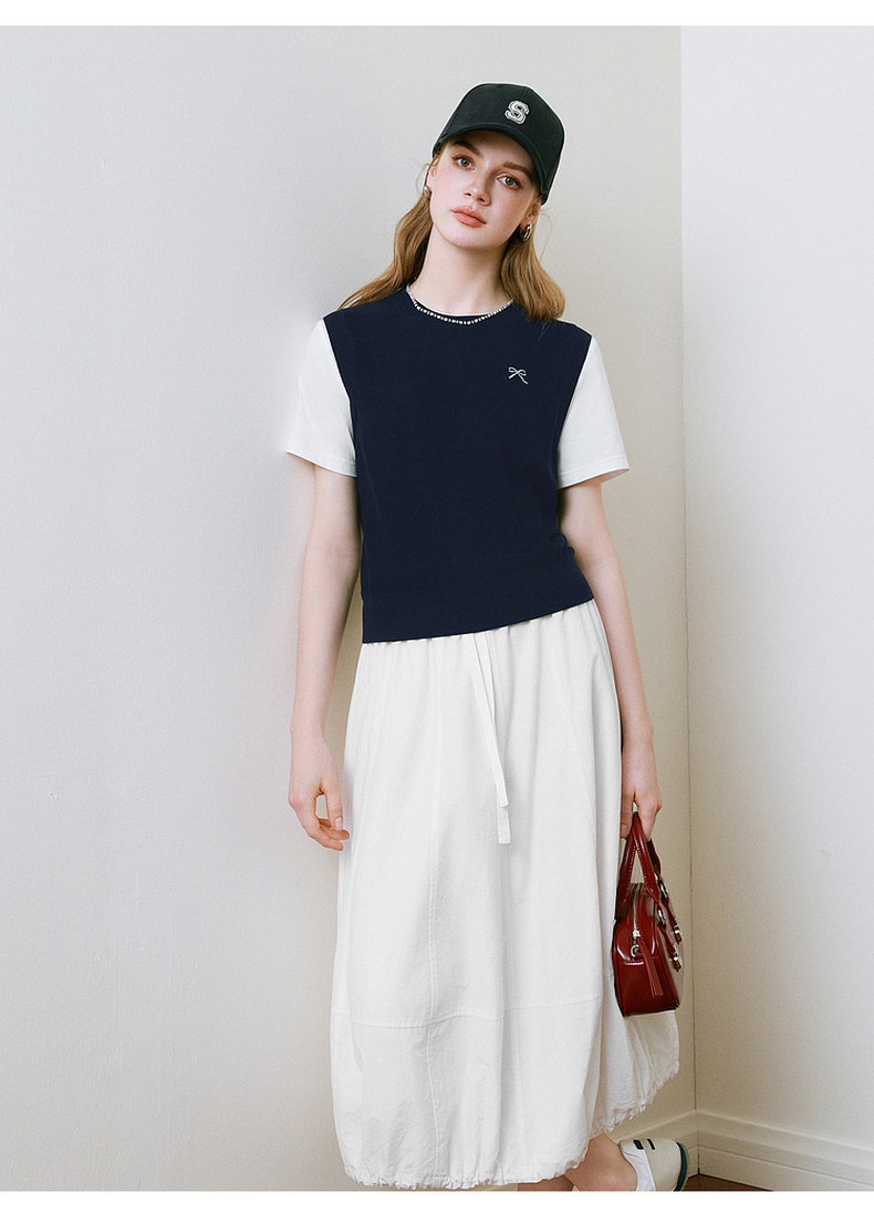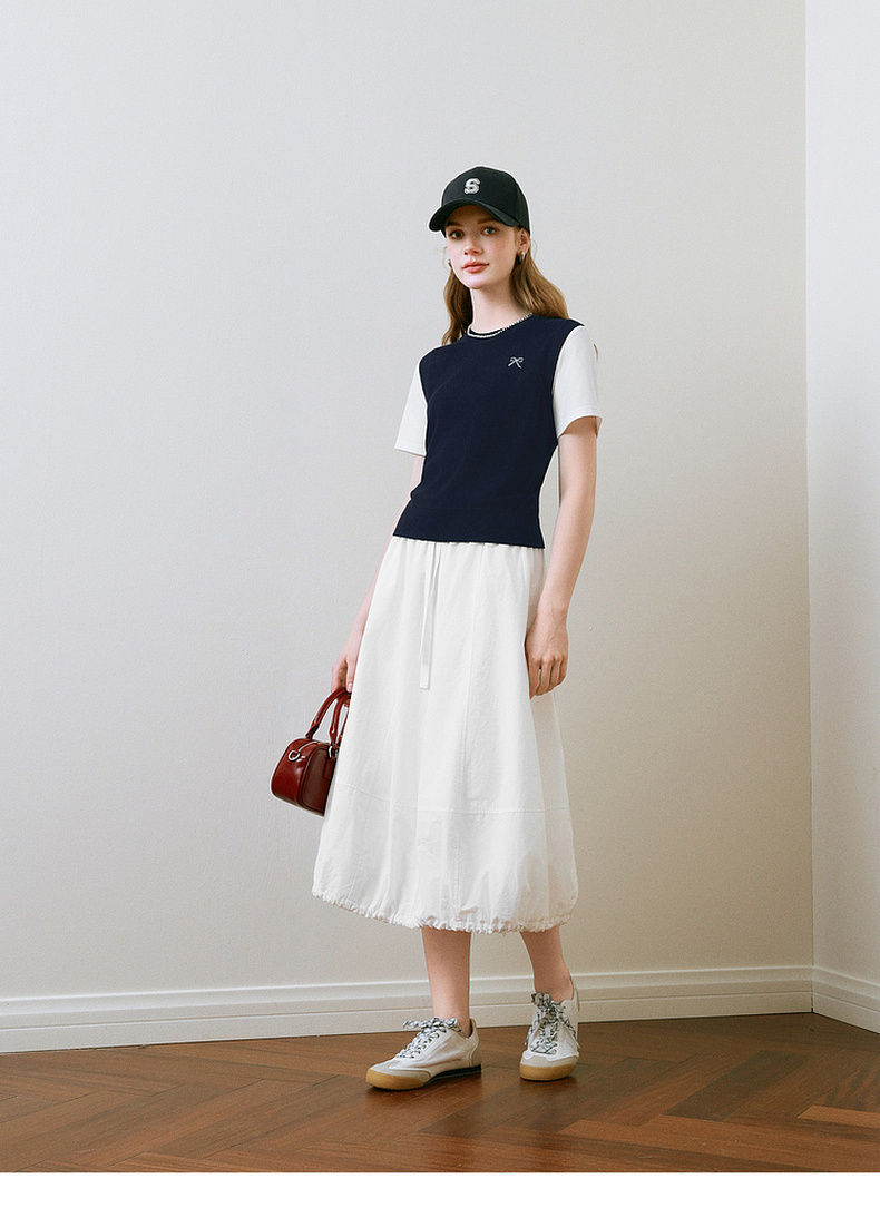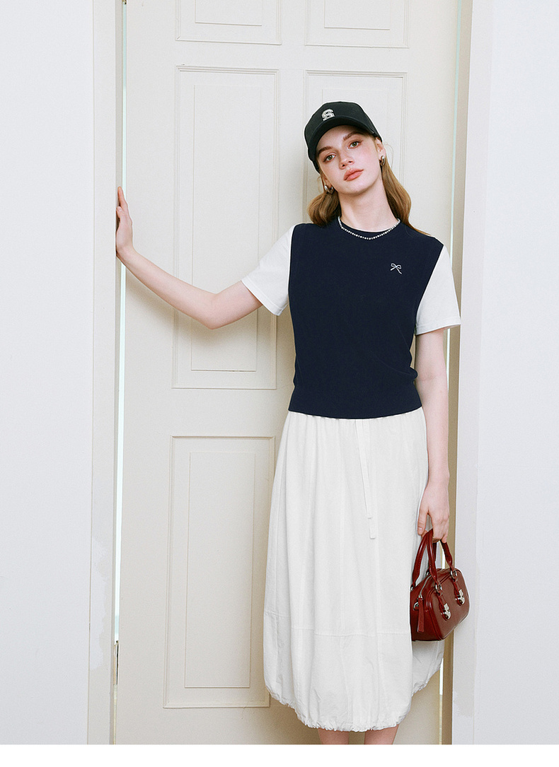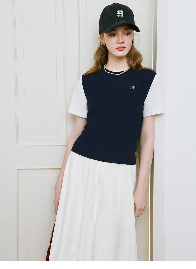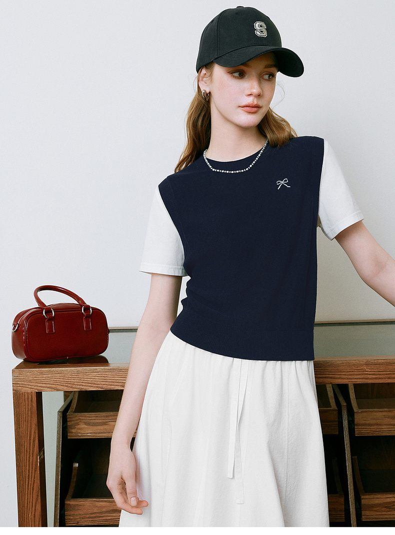 【商场同款】诗凡黎针织拼接短袖2025夏新款假两件上衣3G4230871