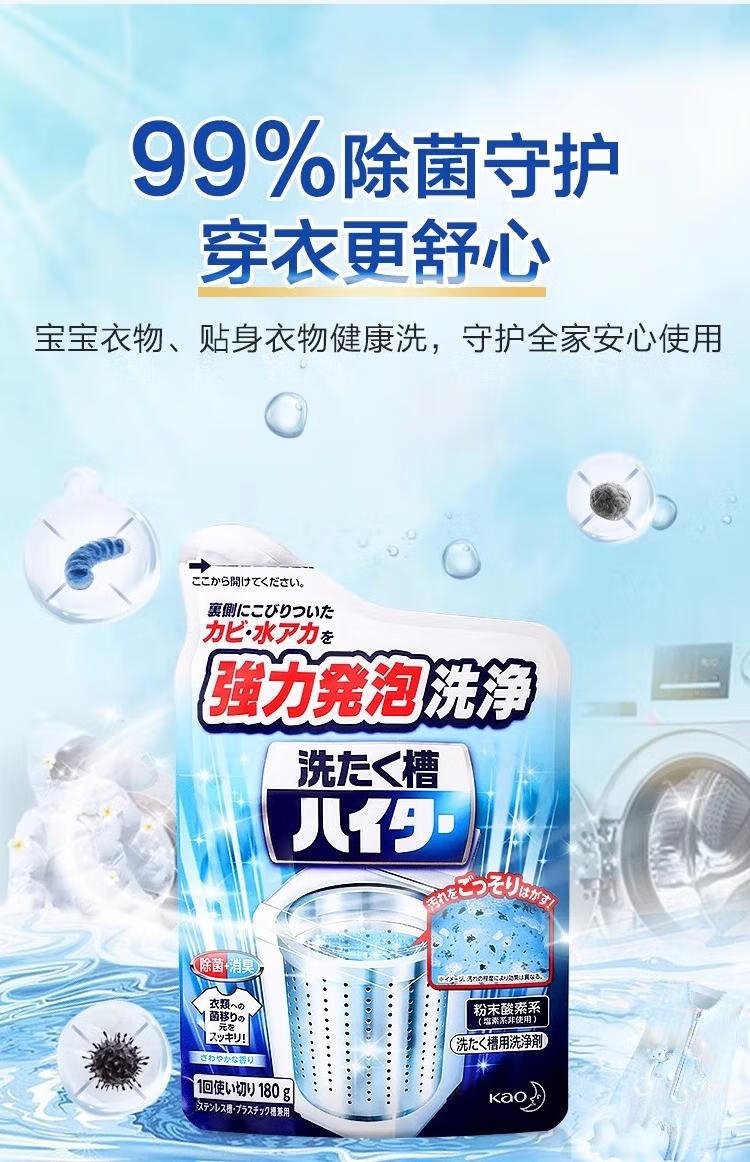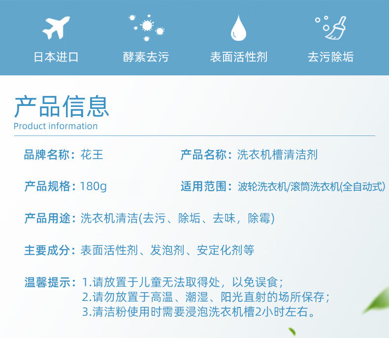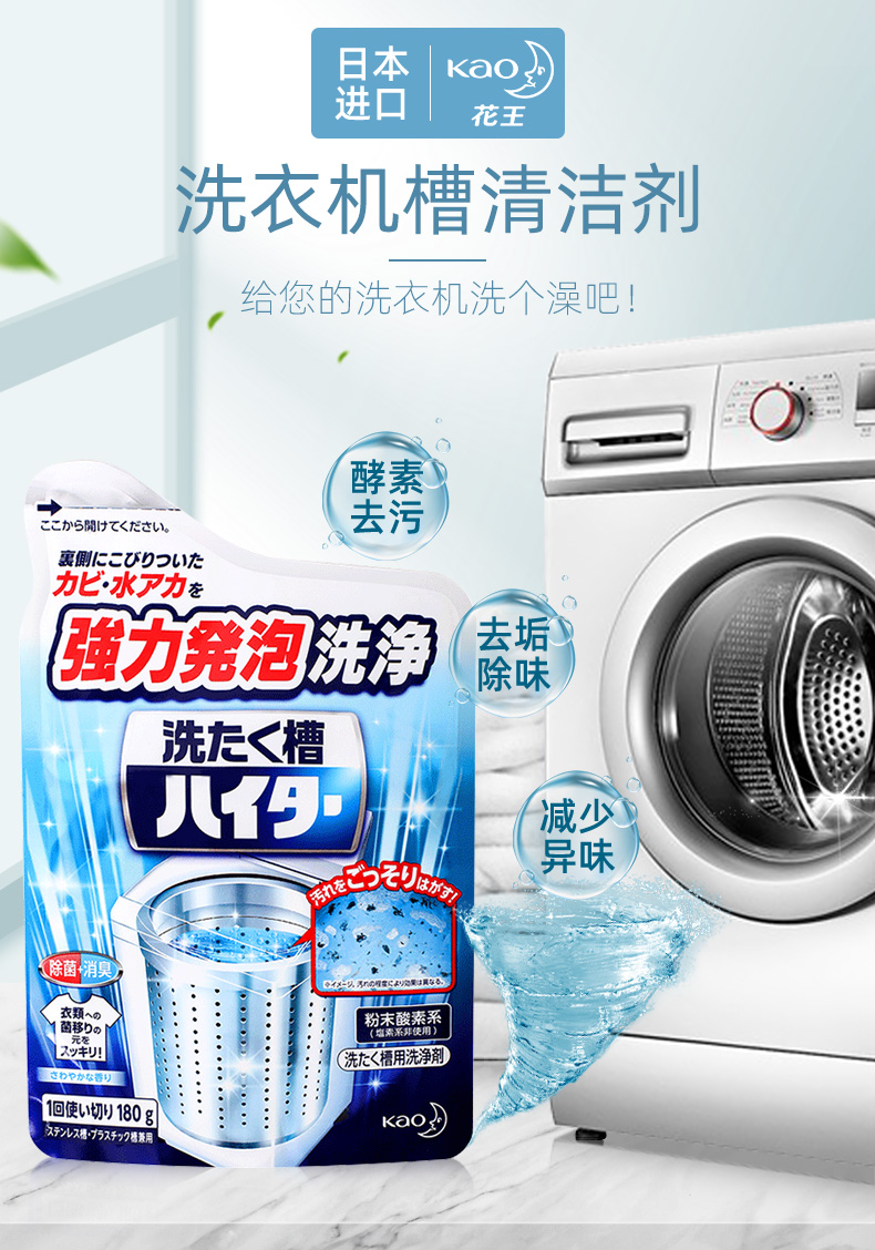花王洗衣机槽清洁粉 180g 滚筒波轮机槽清洁剂去污垢除味非泡腾片