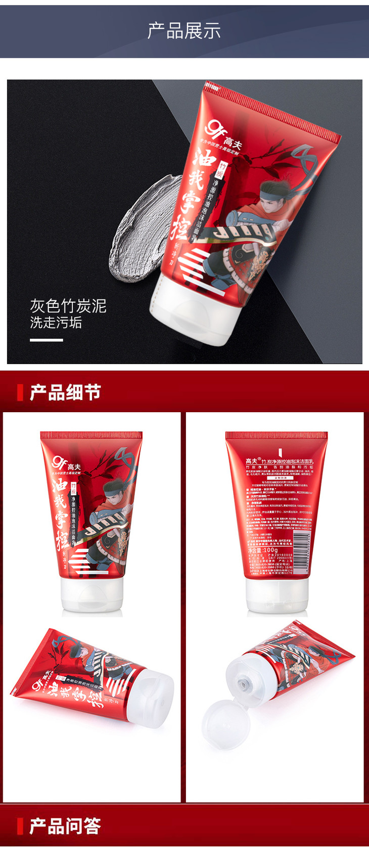高夫竹炭净源控油泡沫洁面乳