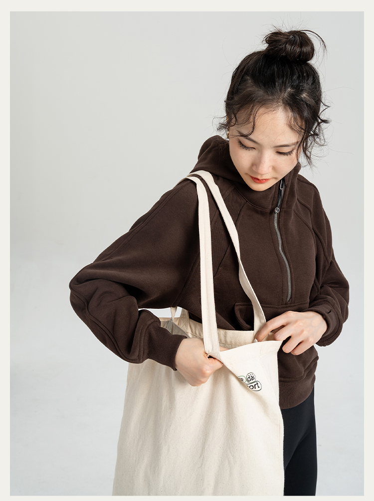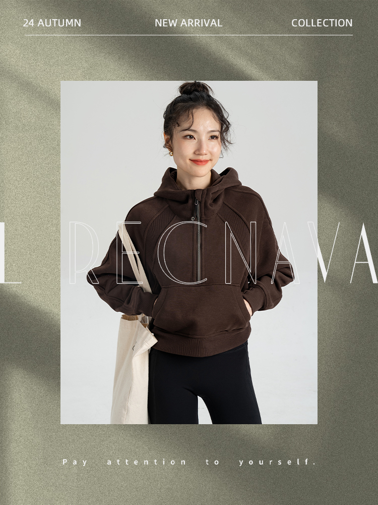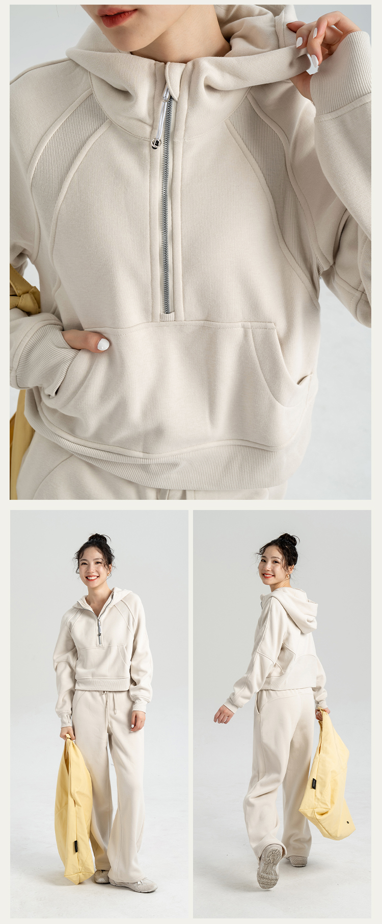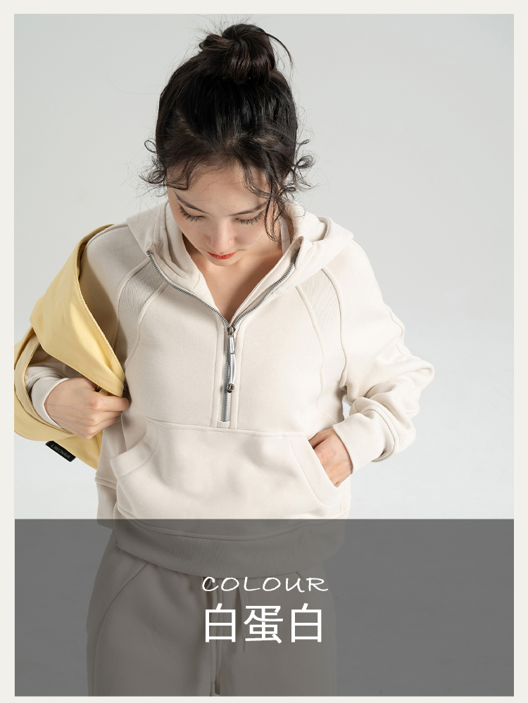 L RECNAVA [加绒卫衣] 半拉链短款卫衣 套头连帽长袖 显高显瘦 穿脱方便