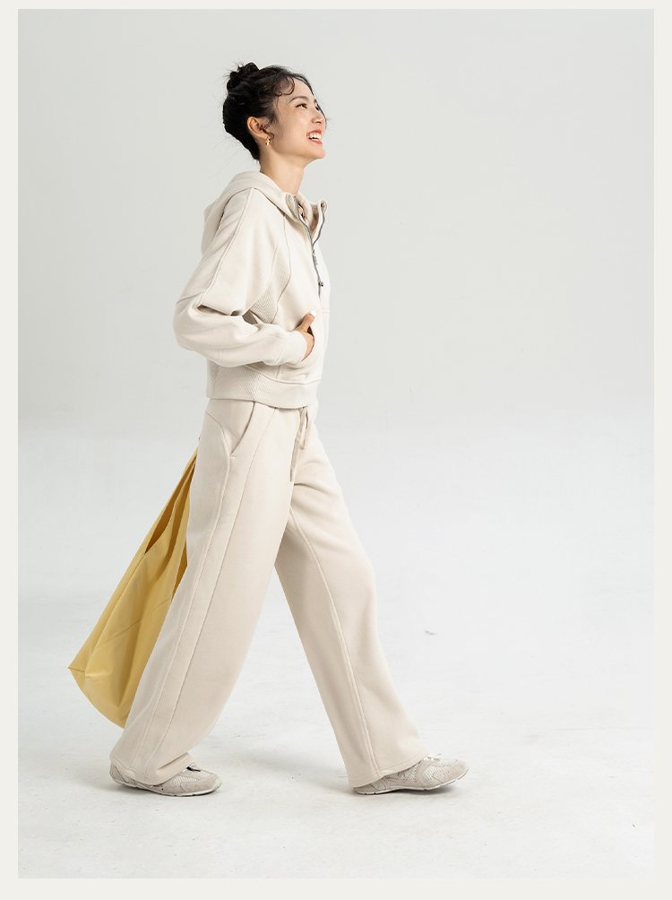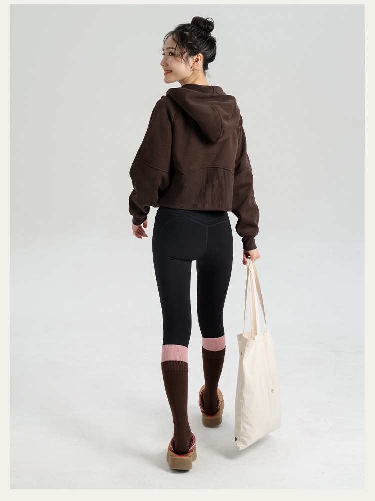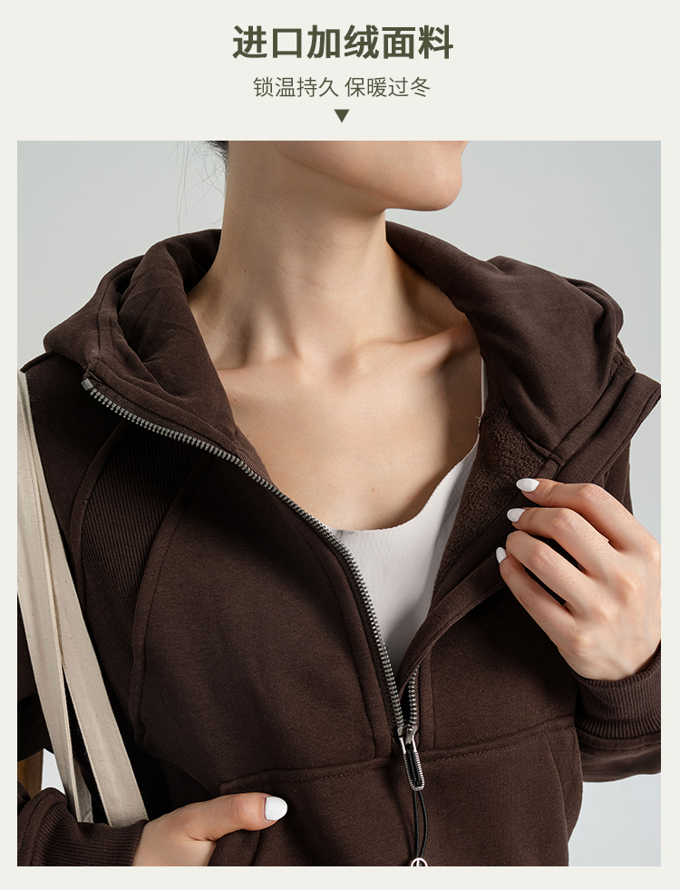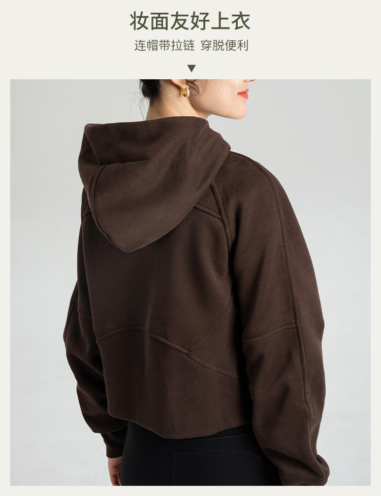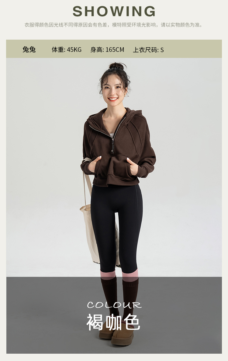 L RECNAVA [加绒卫衣] 半拉链短款卫衣 套头连帽长袖 显高显瘦 穿脱方便