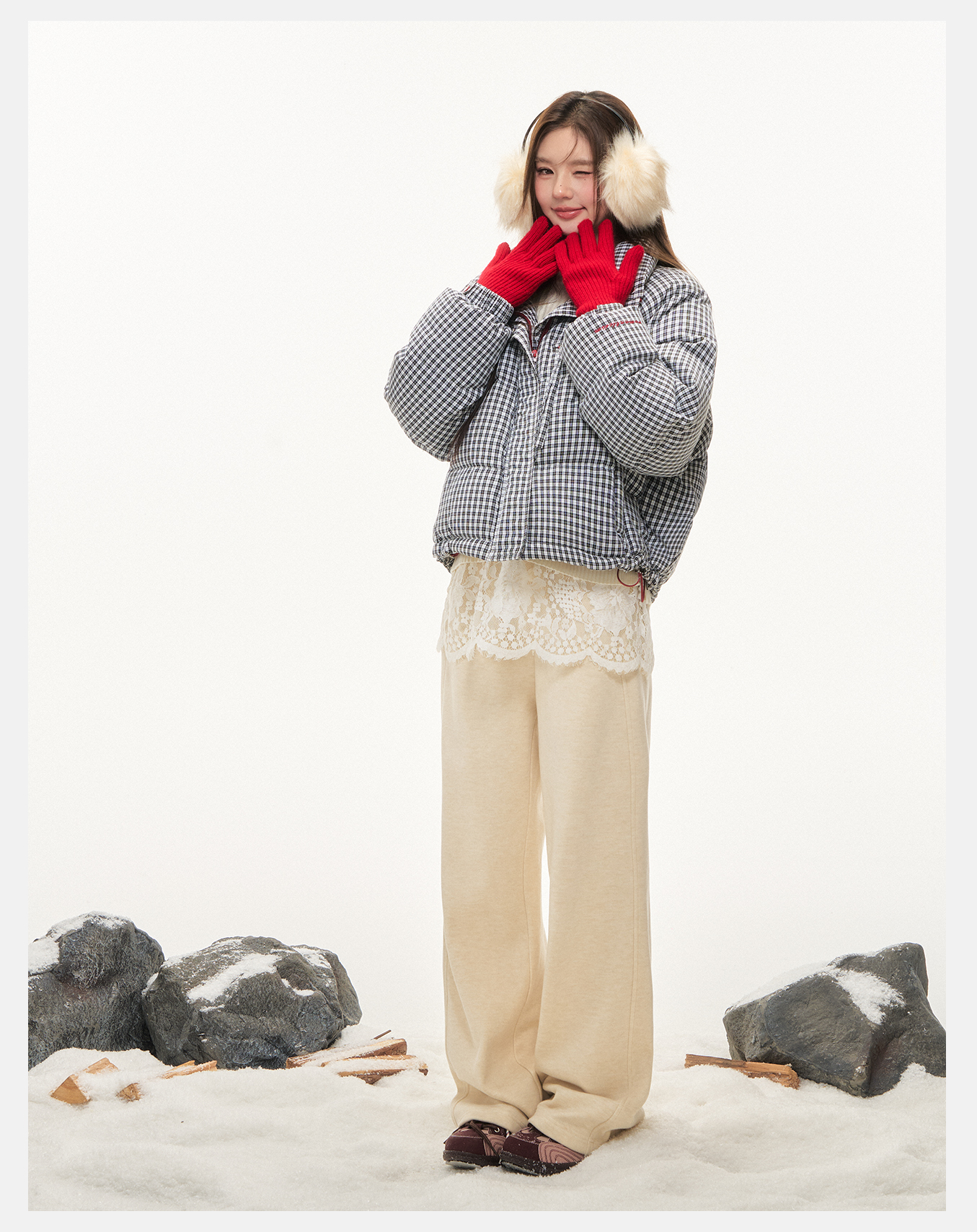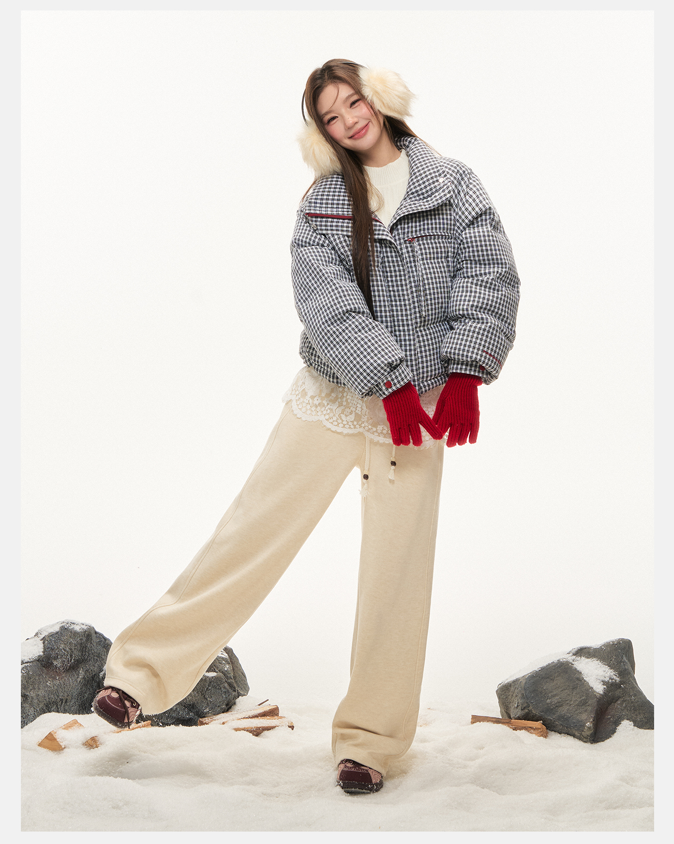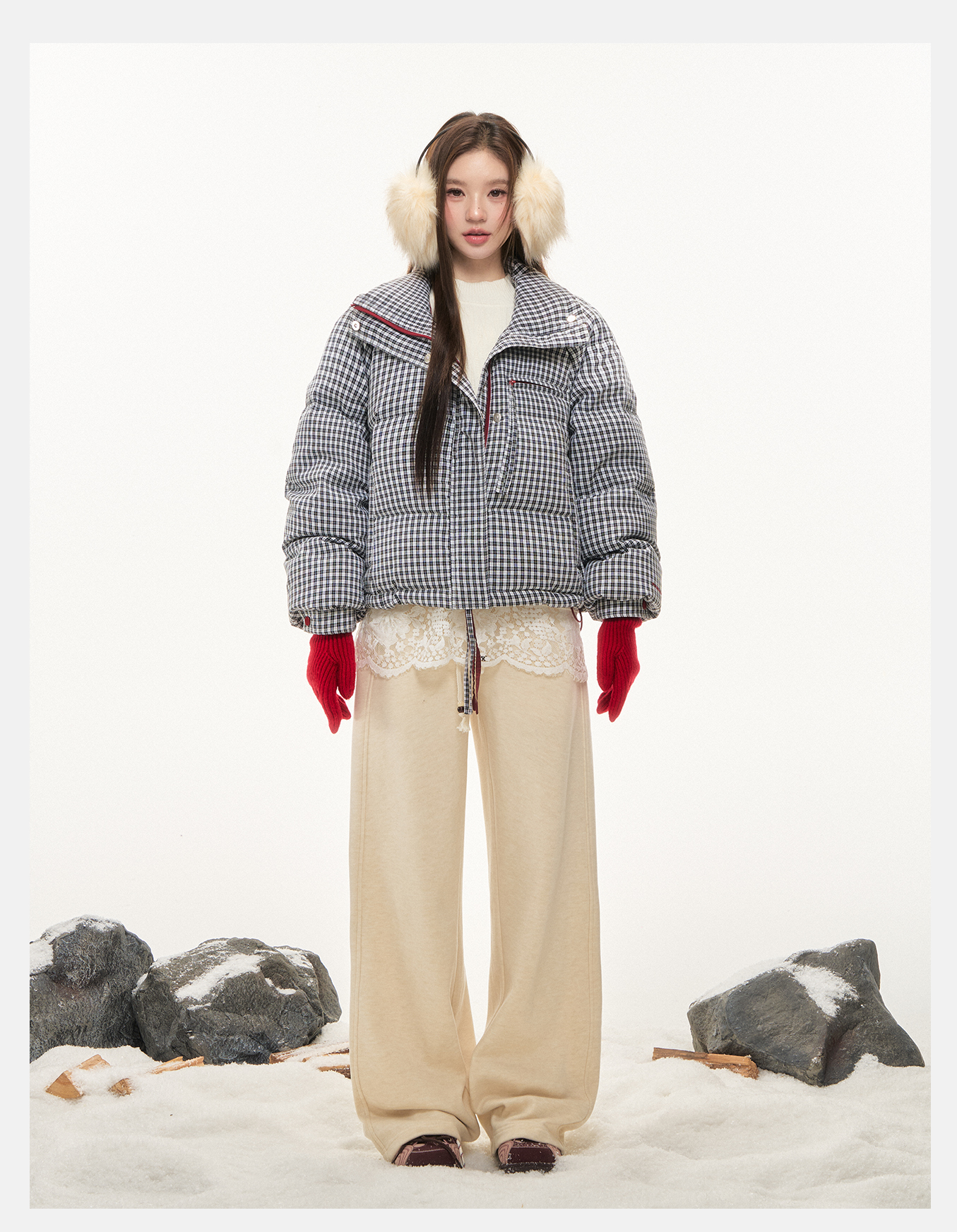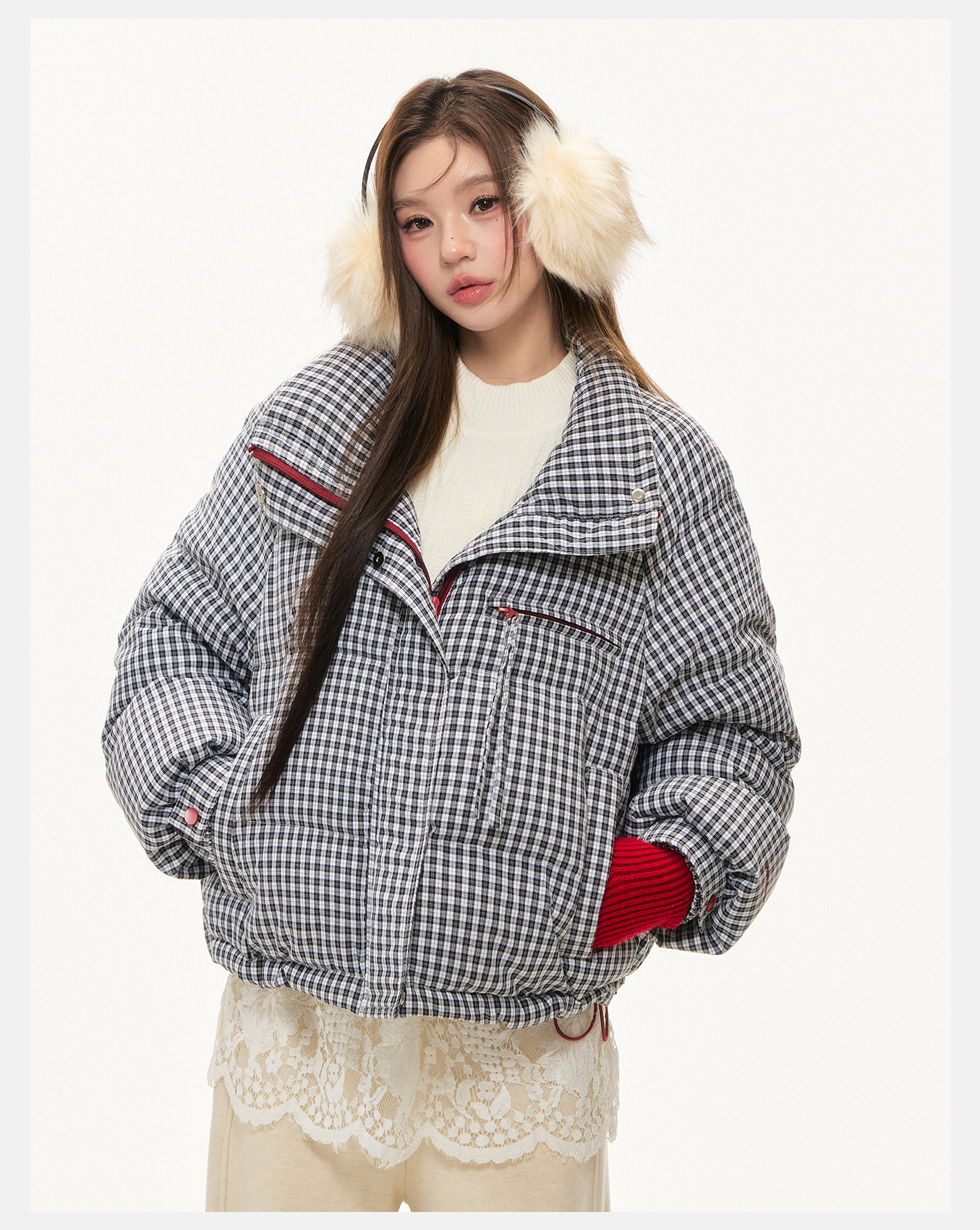 P&X设计师女装2025冬季立领保暖宽松短款羽绒服825424042 格子