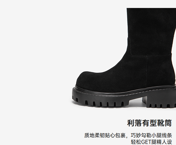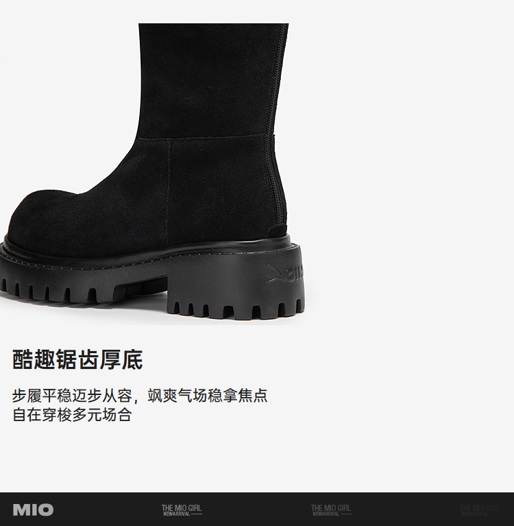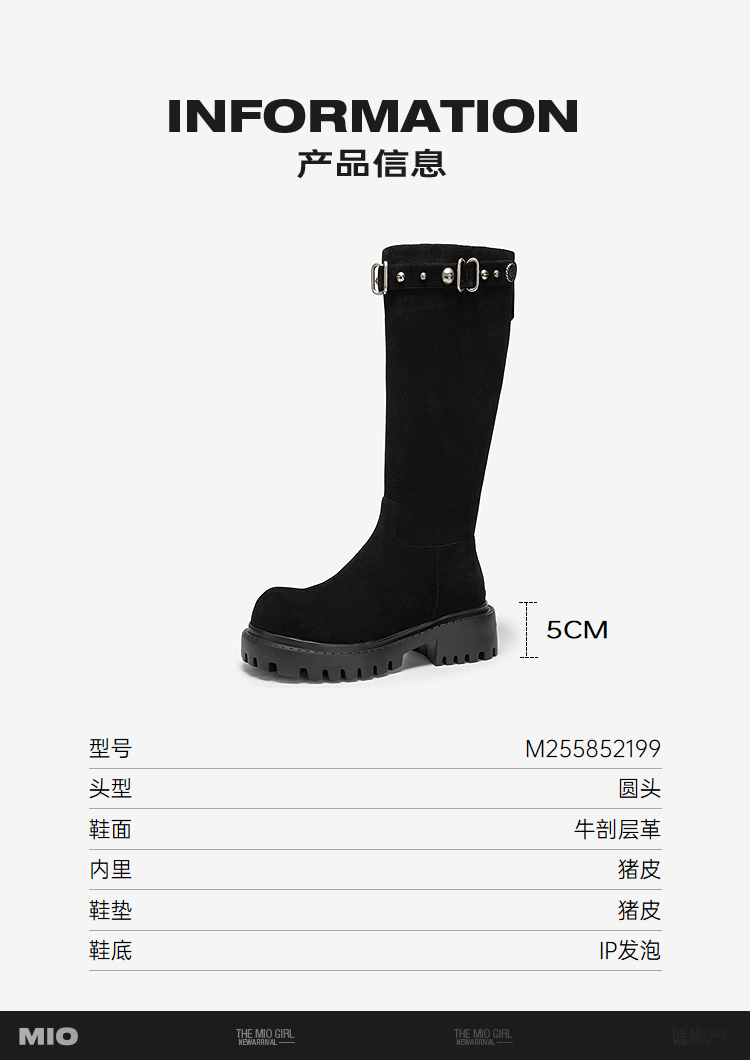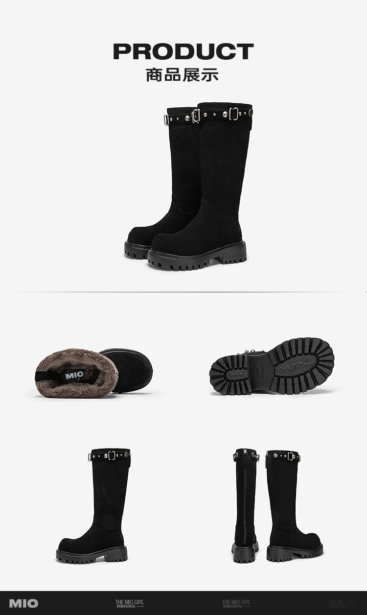 MIO米奥弹力靴圆头高跟扣带瘦瘦靴时装靴高筒女靴M255852199