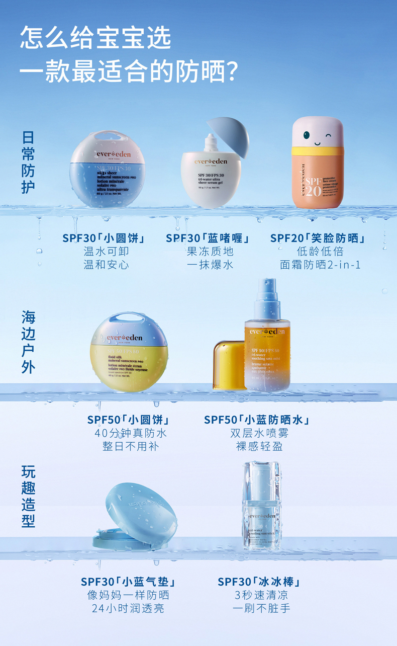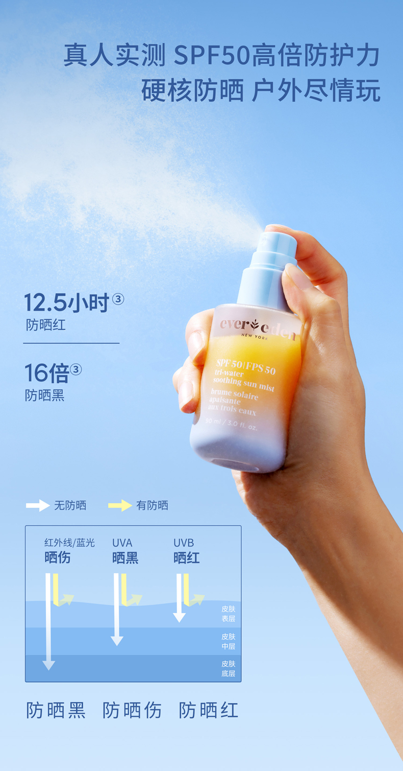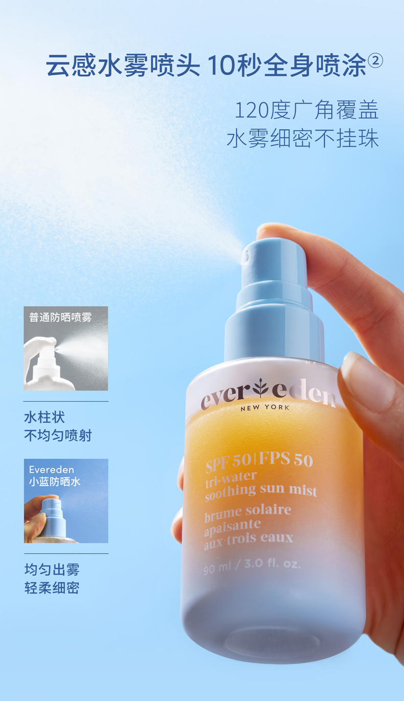 【云优选】Evereden/安唯伊春夏防晒专场 水感纯物理防晒pro 水凝沁感防晒喷雾 清透防晒啫喱 云朵洁面乳(跨境商品报关后不支持退换货,介意慎拍)
