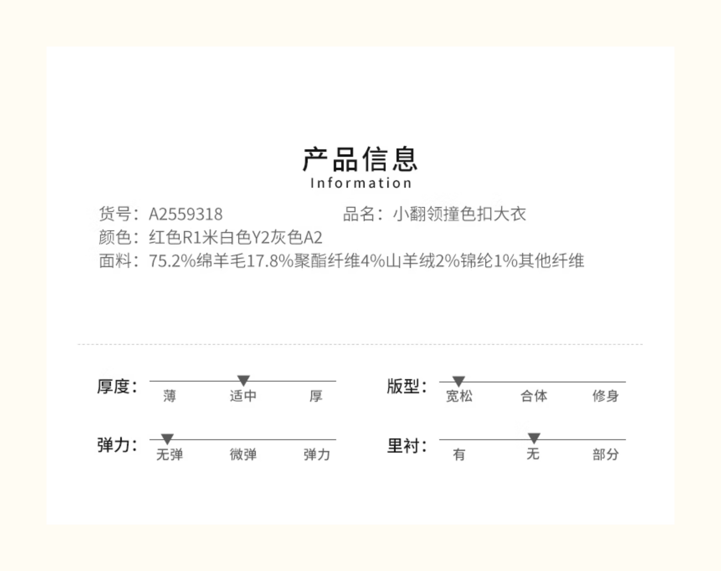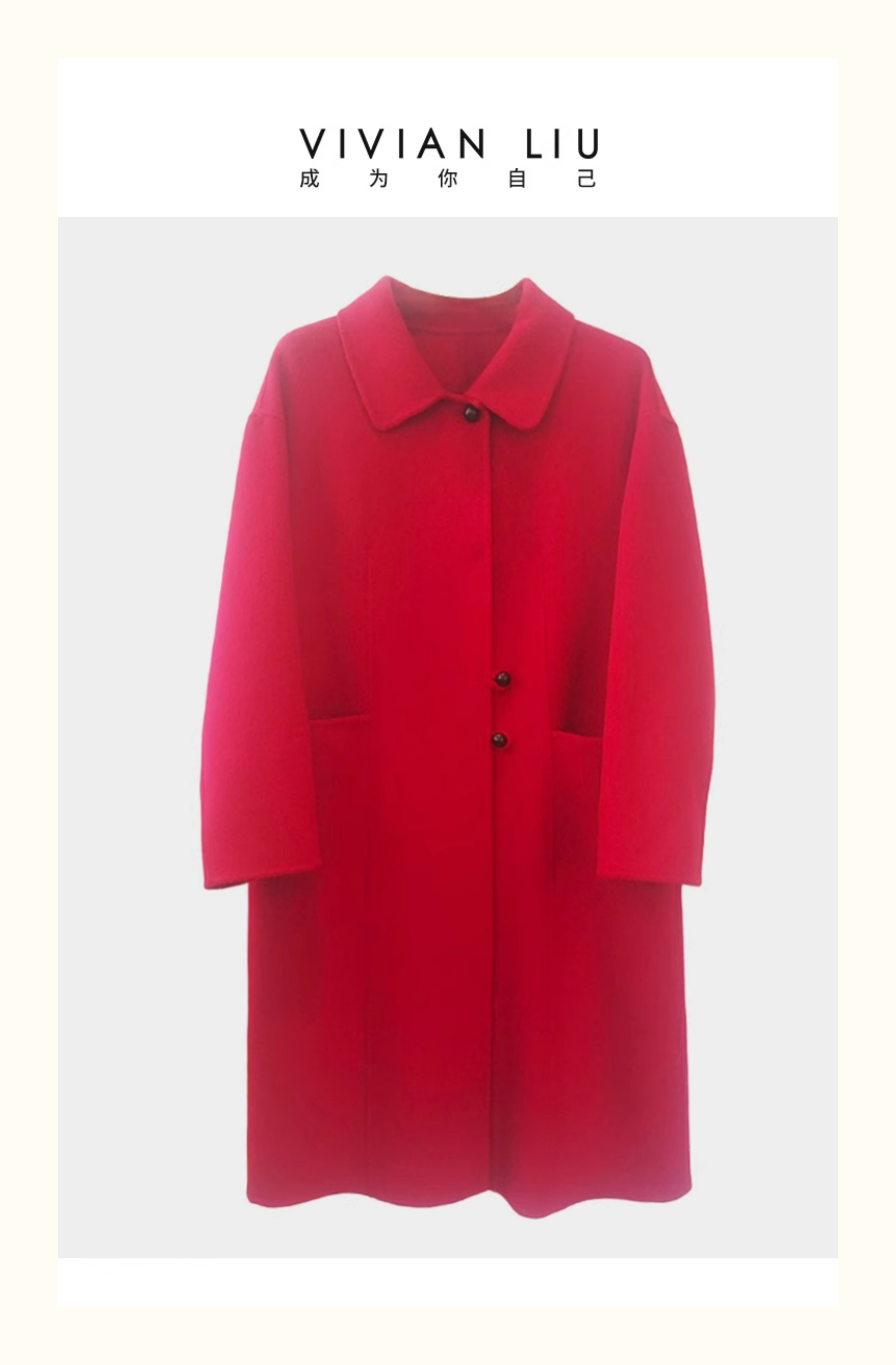 VIVIAN LIU薇薇安刘A2559318秋女装新款小翻领撞色扣大衣