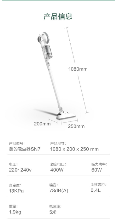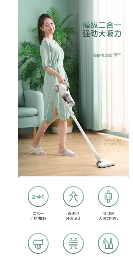 美的(Midea)吸尘器手持吸尘器立式手持推杆二合一家用强劲手持多用吸尘器SN7