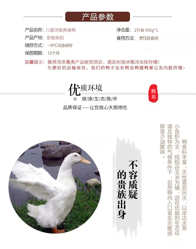 皖北 八里河散养嫩鸭 2只装 900g×2