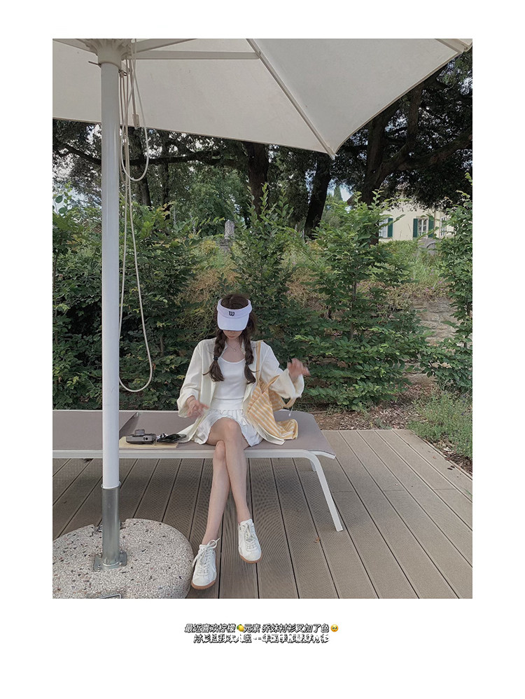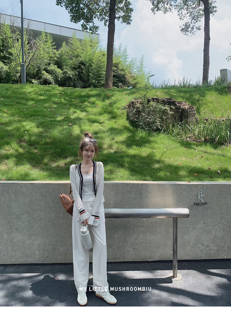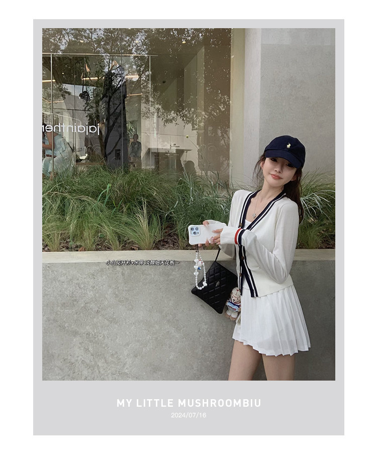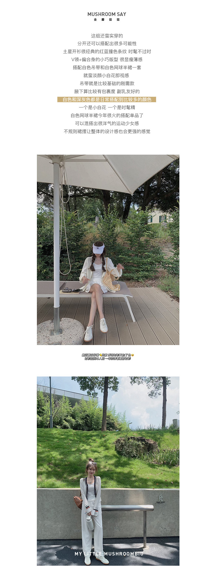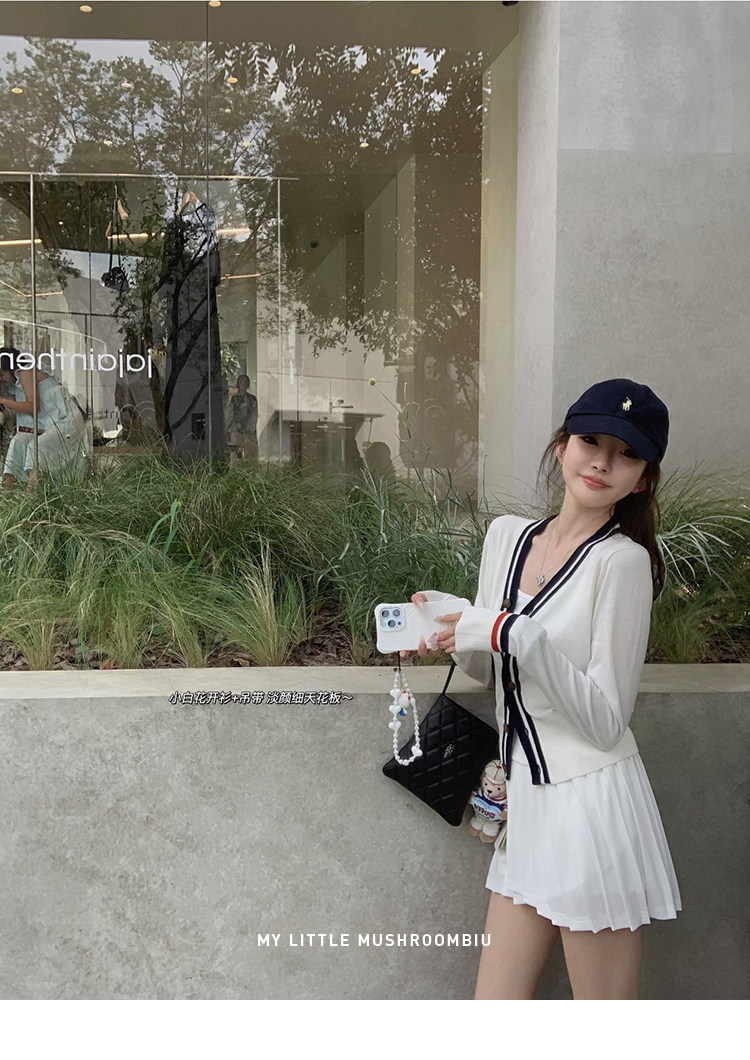 金蘑菇菇 oni松弛的一天 /经典撞色条纹淡颜小白花系开衫+吊带