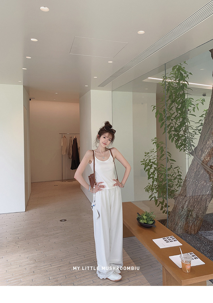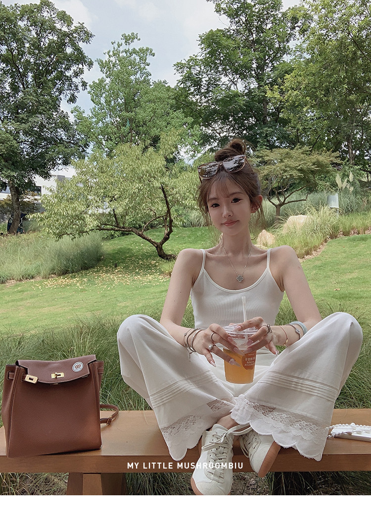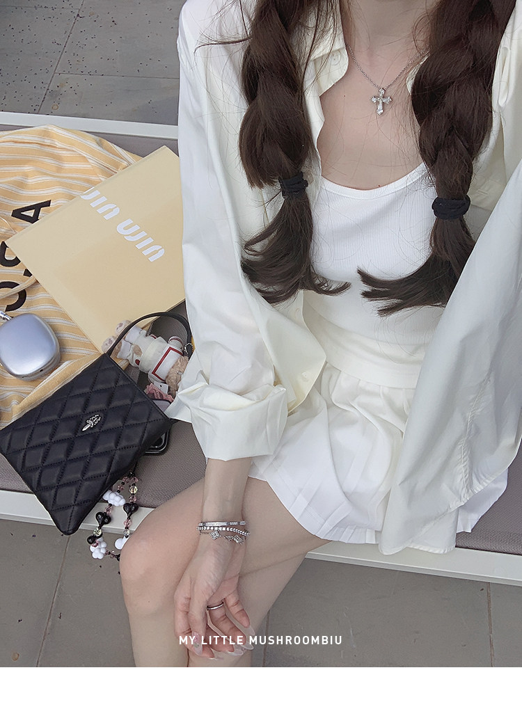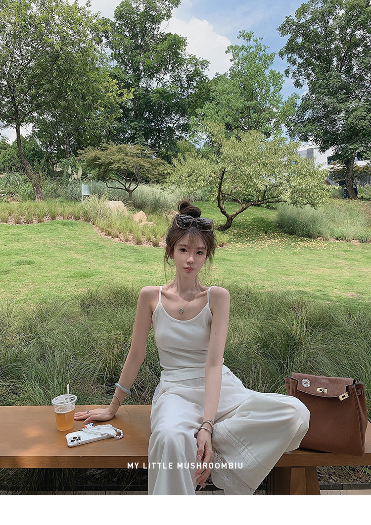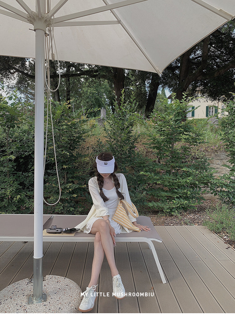 金蘑菇菇 oni松弛的一天 /经典撞色条纹淡颜小白花系开衫+吊带