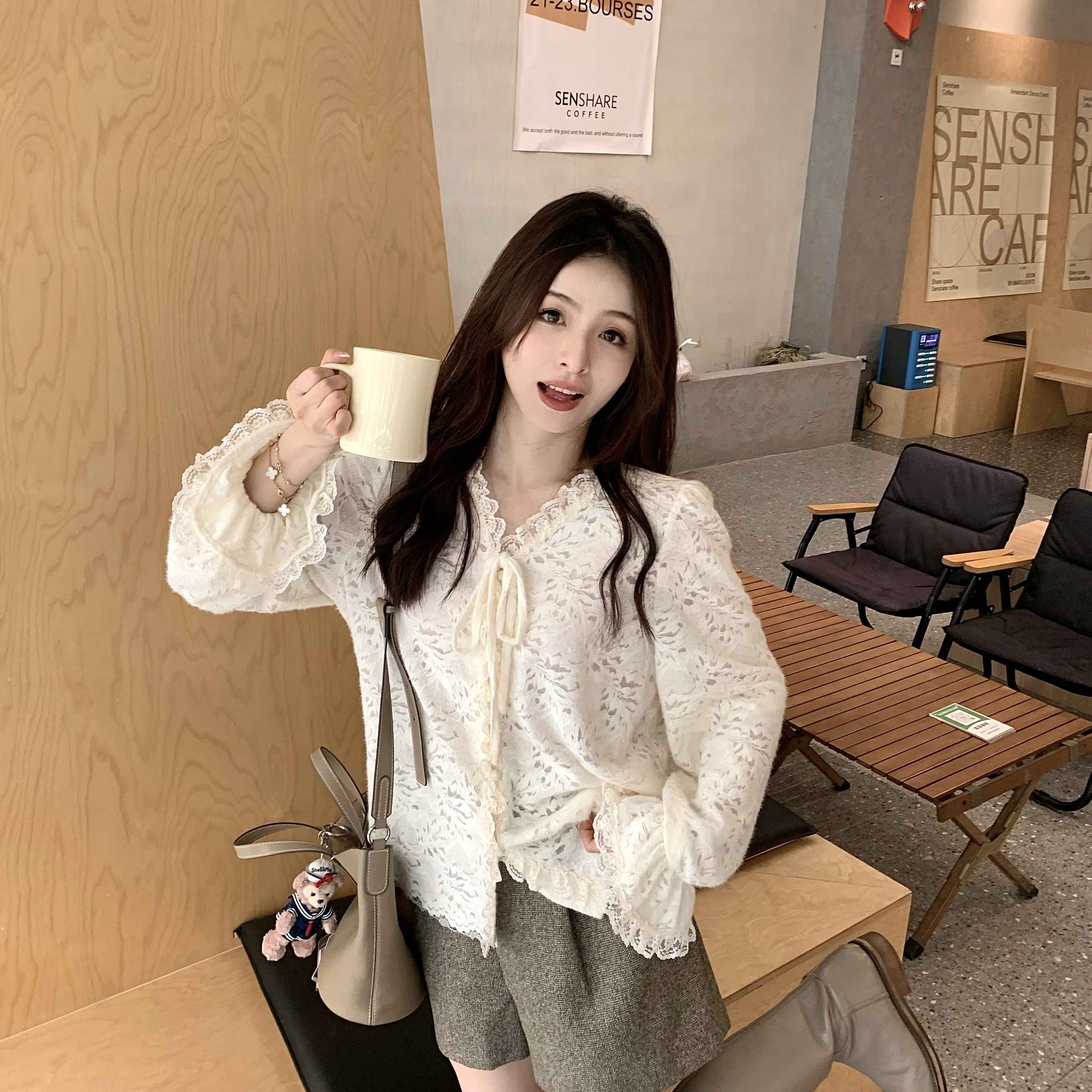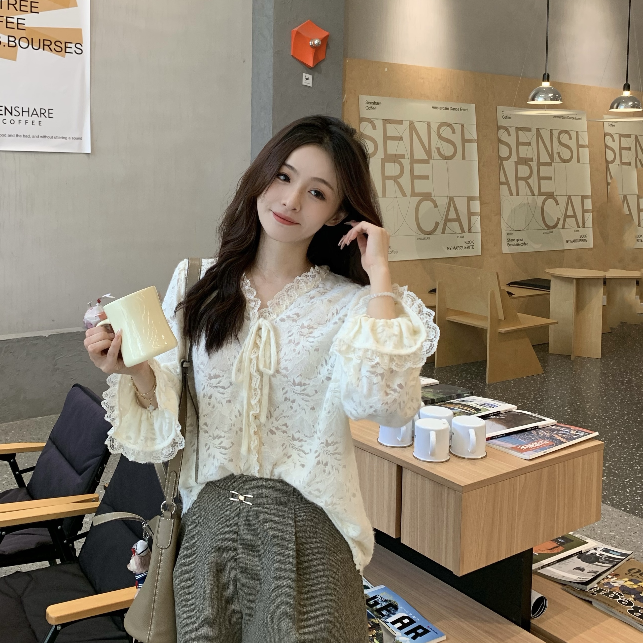 现货 茶歇小姐 矜贵千金感 蕾丝刺绣法式衬衫